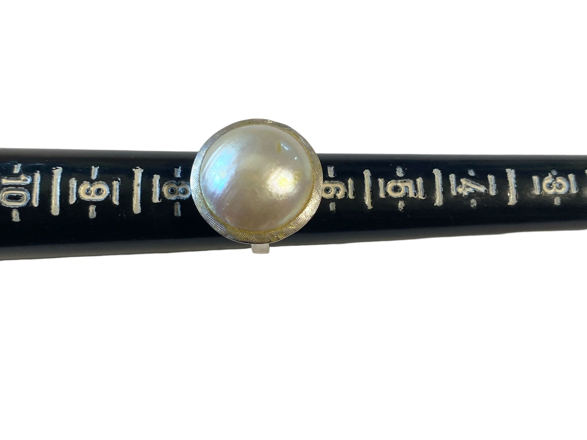 #6255 Vintage 18k White Gold Mabe Pearl Ring Sz 7