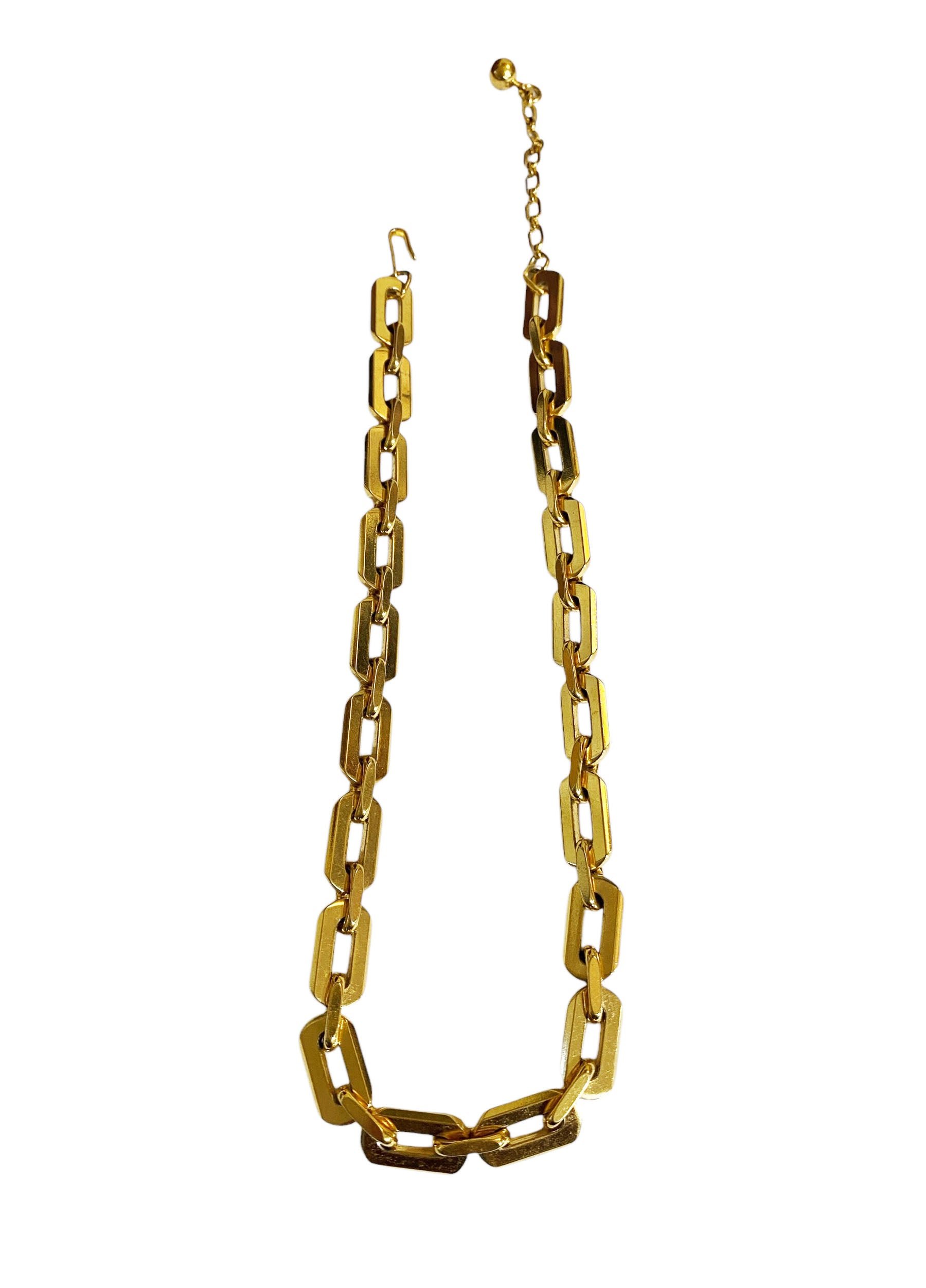 This elegant Vintage Signed TRIFARI Gold Tone Necklace features a rectangular link chain design and includes extension to perfect fit . The necklace measures 8.5" h by 0.25 inches in width, and 0.25 inches d.