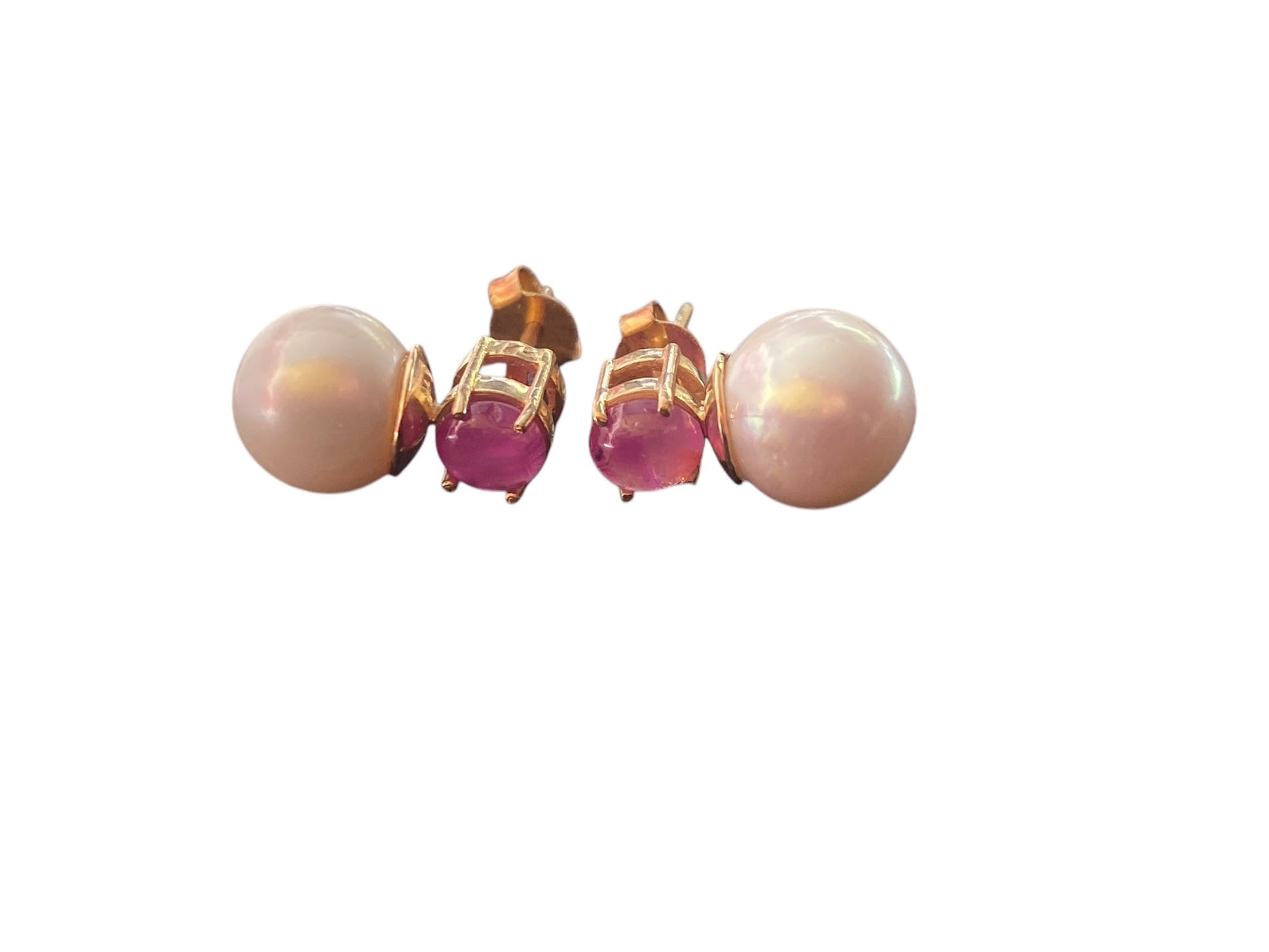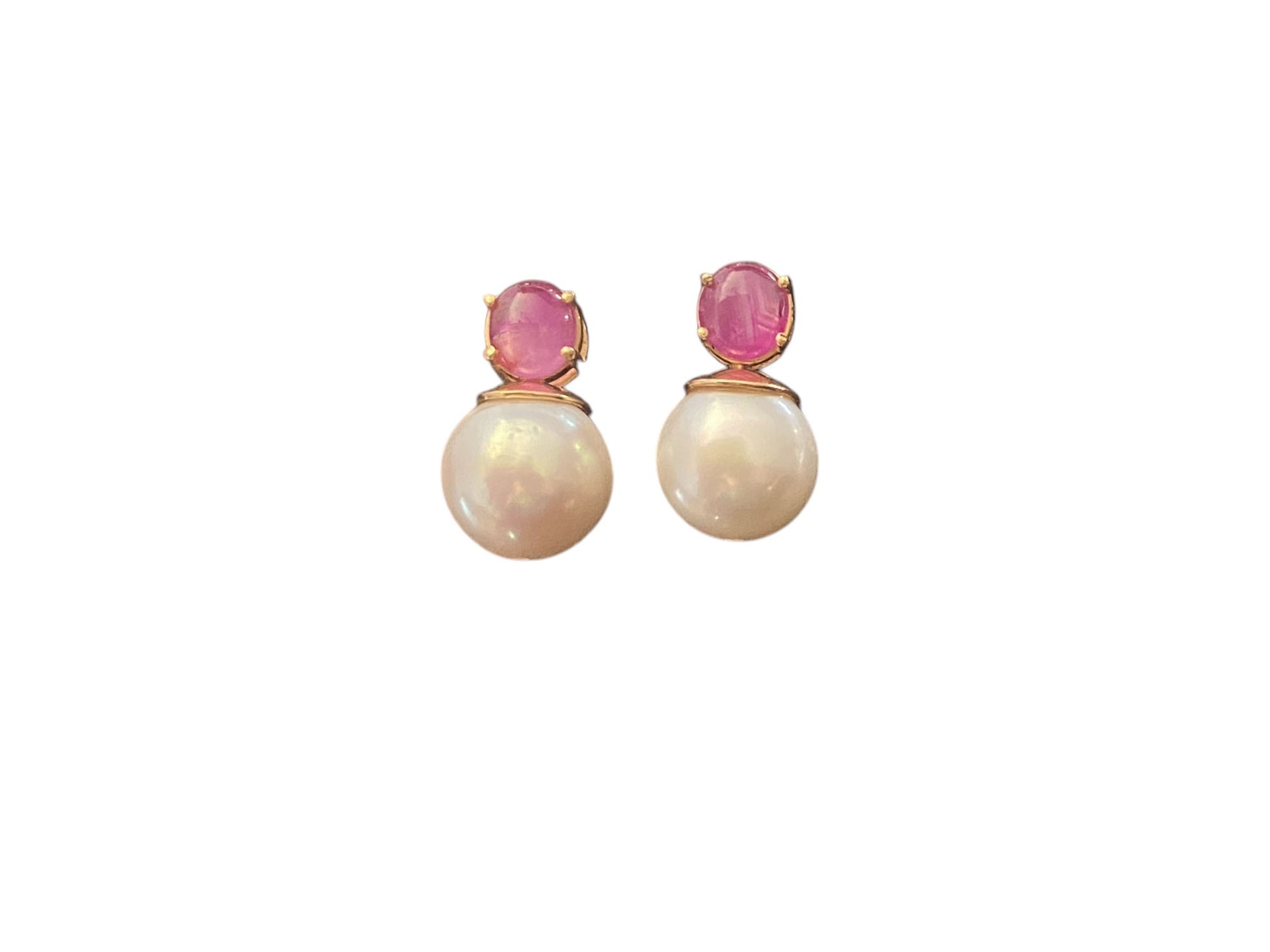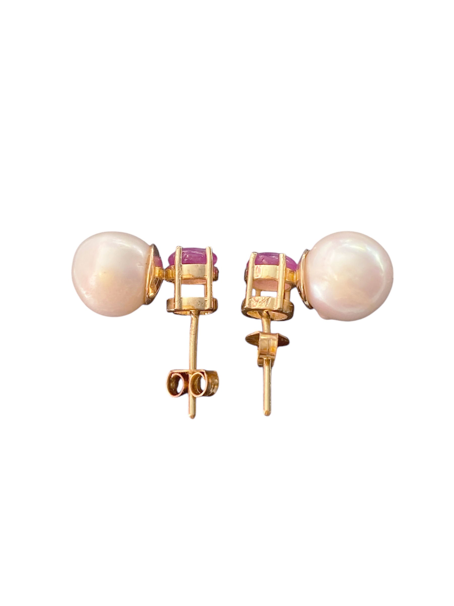 #6322 Elegant Earrings 18k gold with pearls, rubies