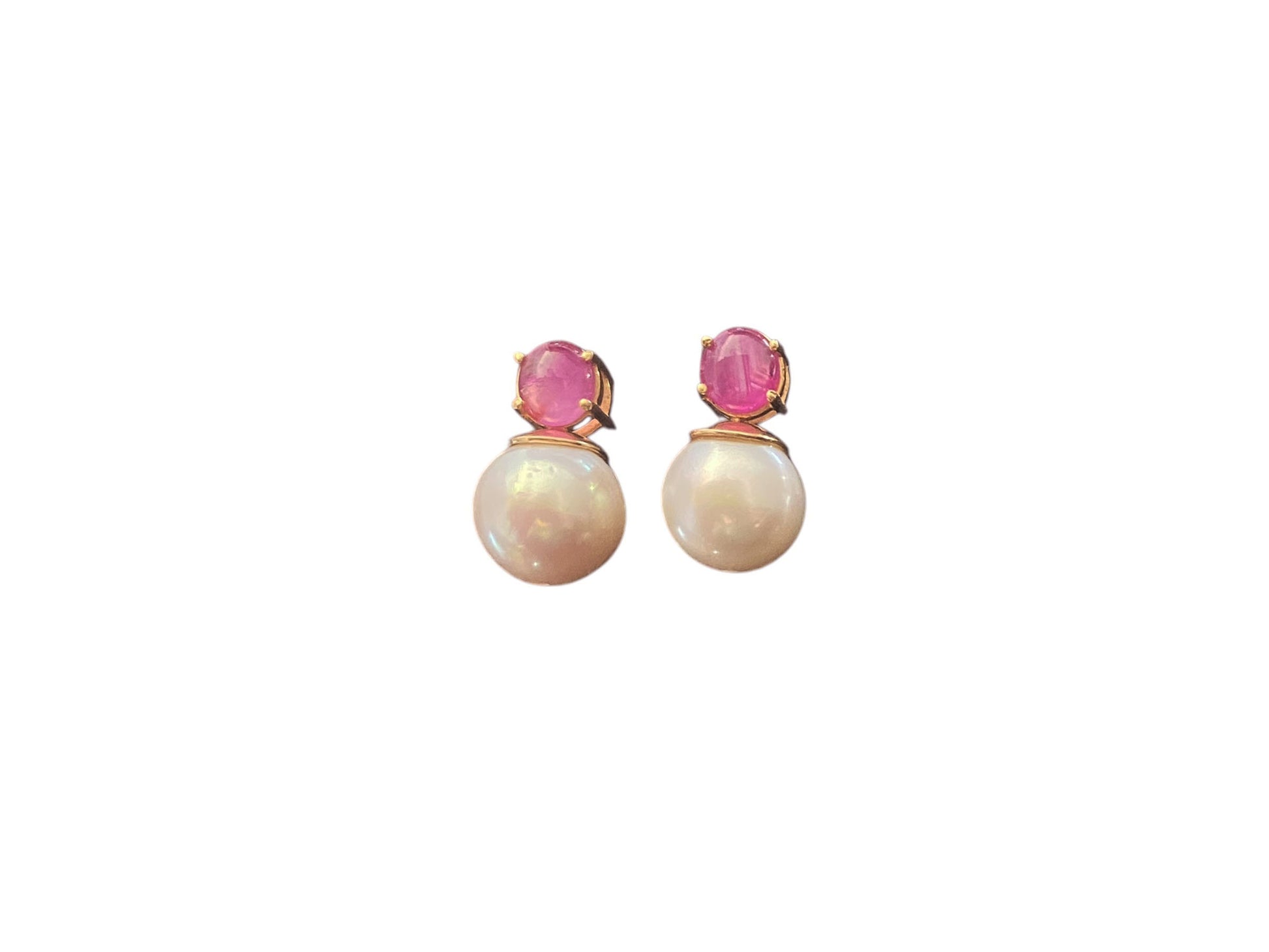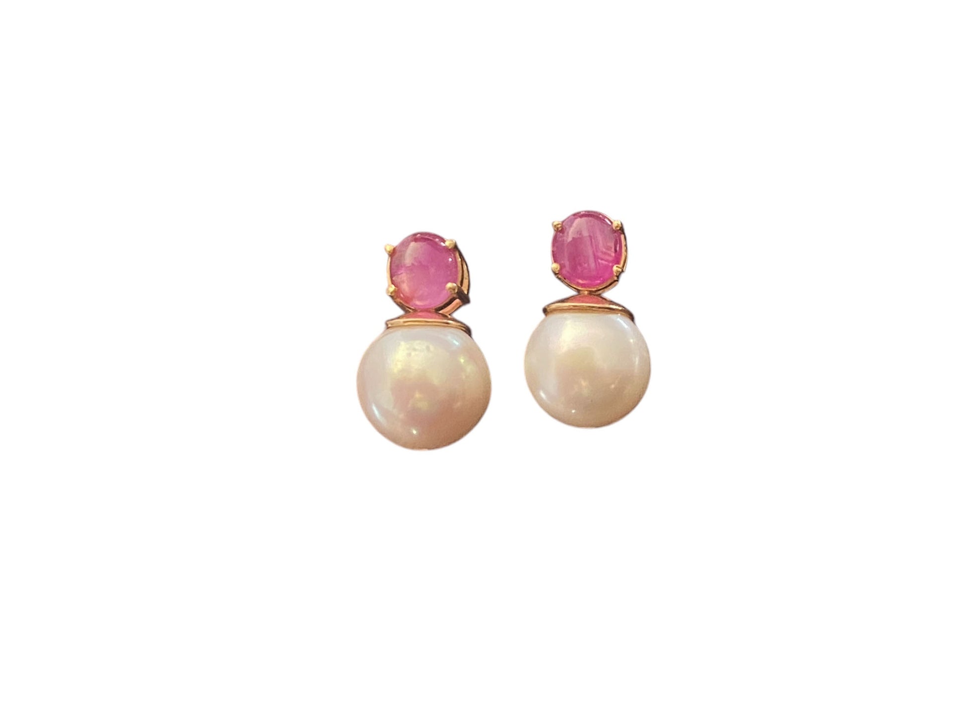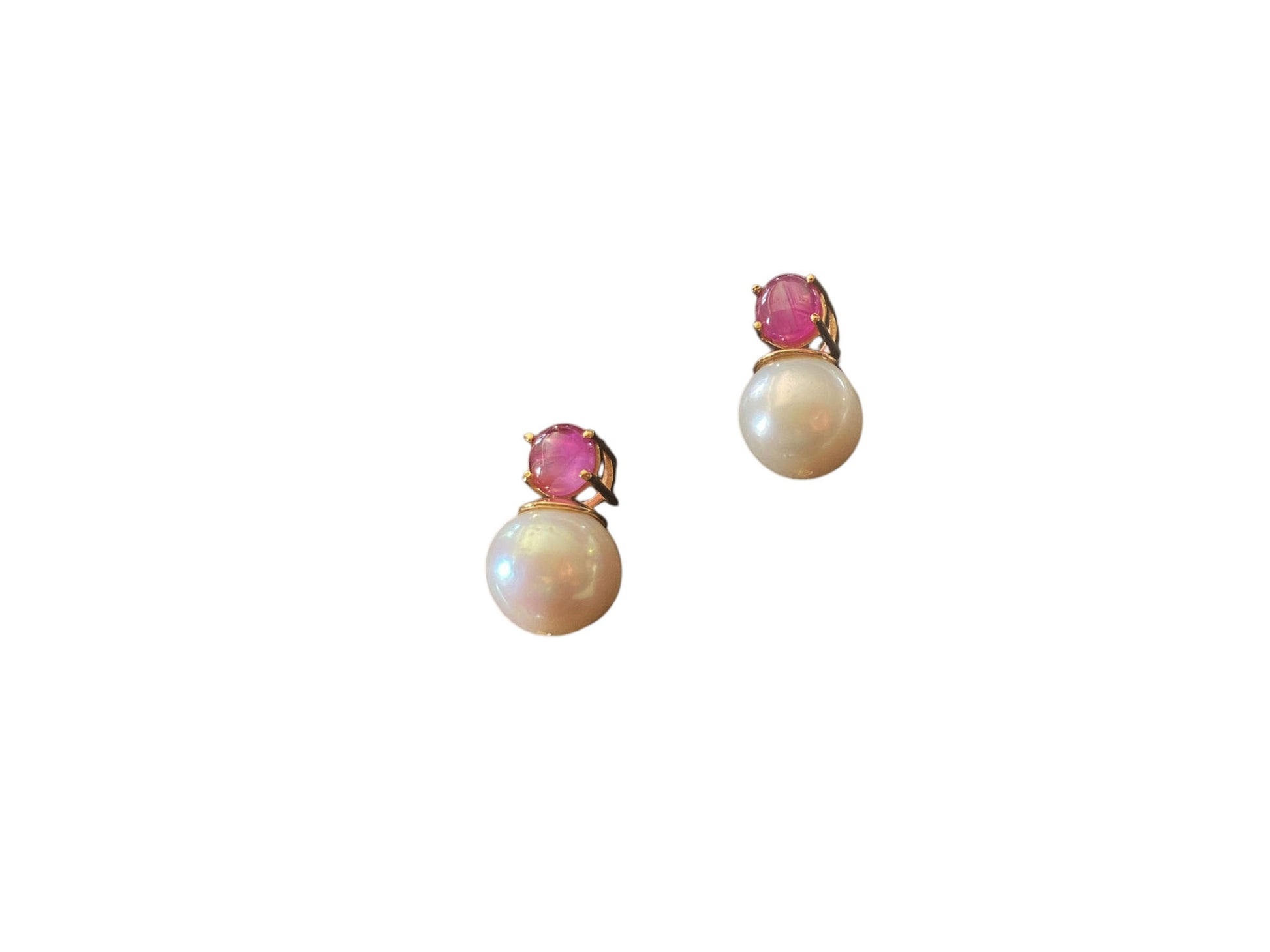 #6322 Elegant Earrings 18k gold with pearls, rubies