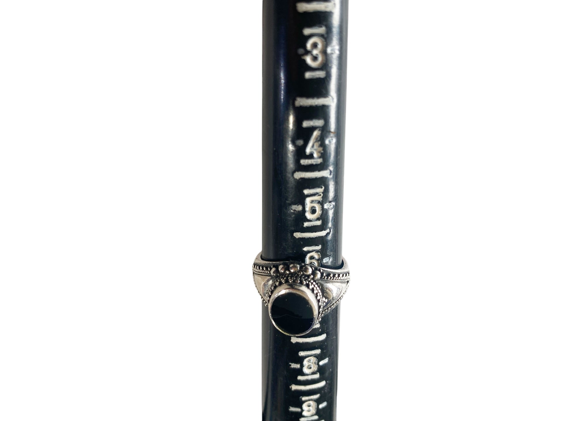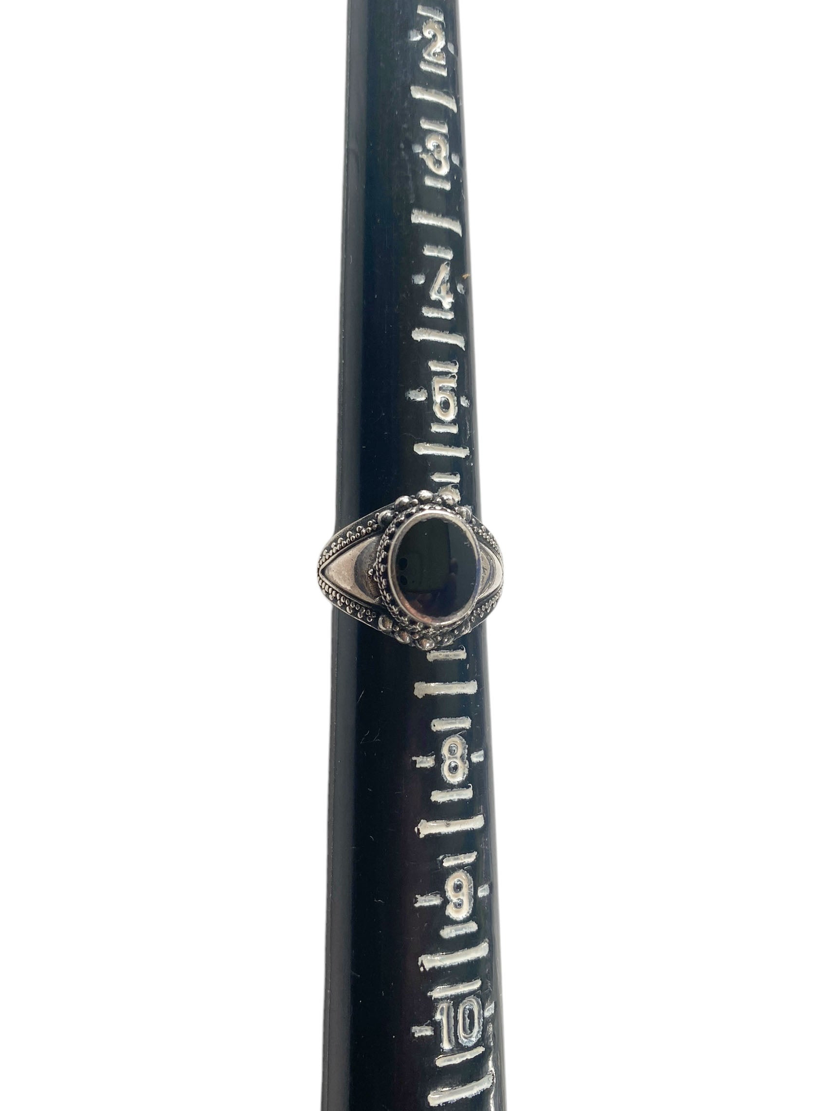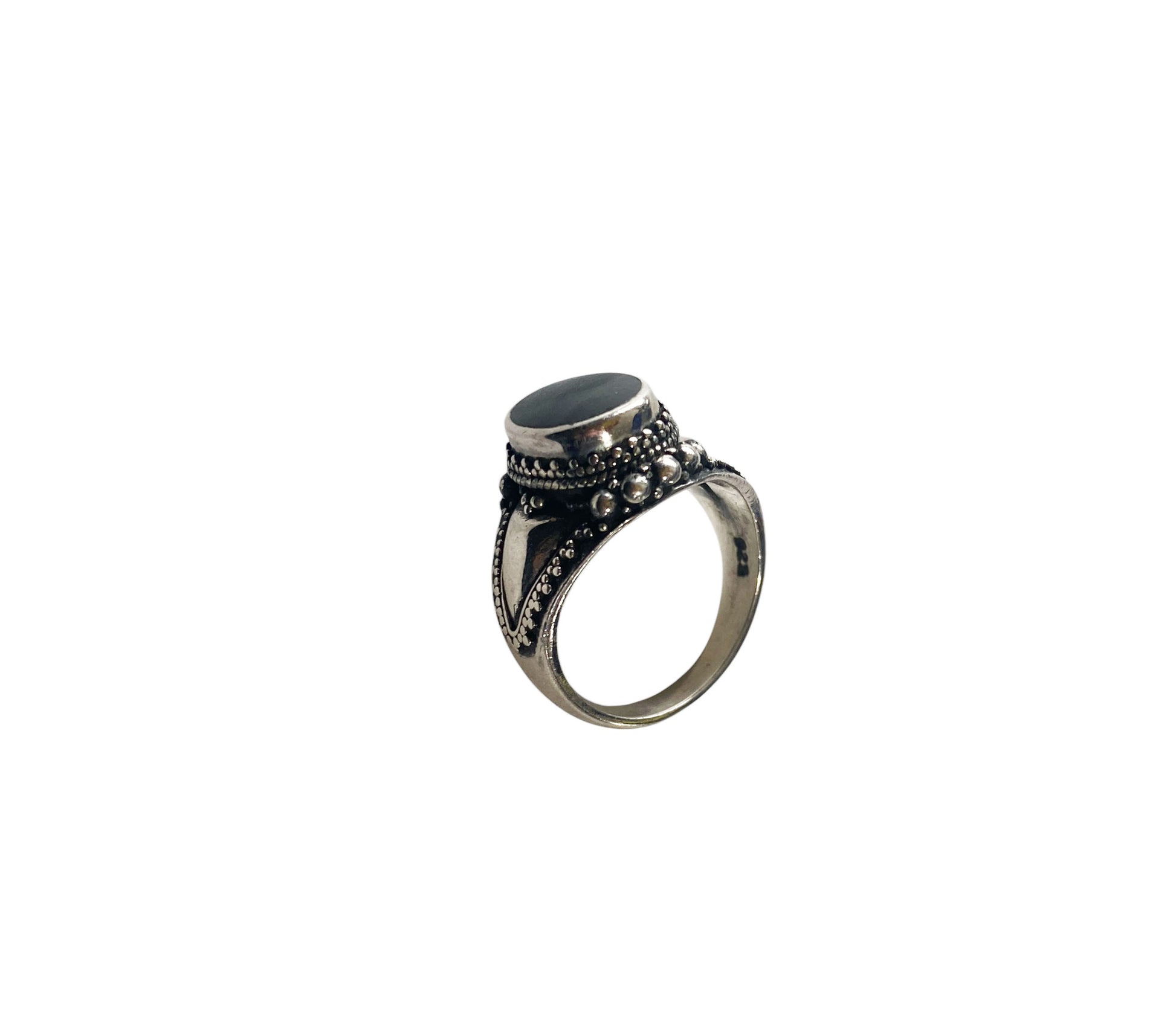 #6332 Vintage Beautiful 925 Silver Ring With Large Oval Black Stone Size 6.5