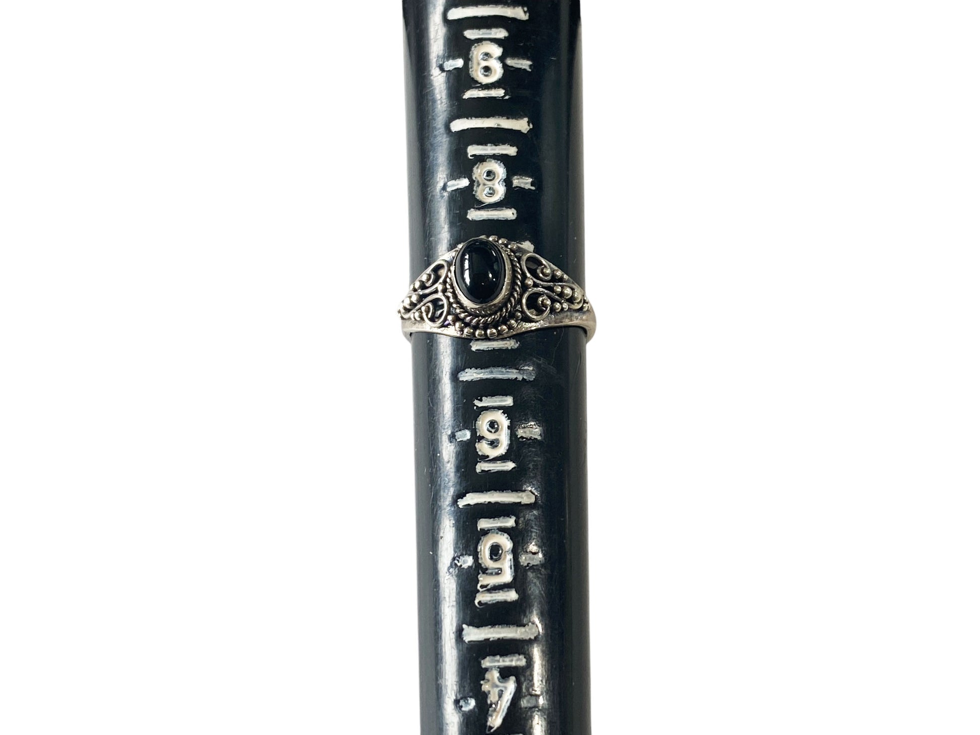 #6333 Vintage Beautiful 925 Silver Ring With Large Oval Black Stone Size 7