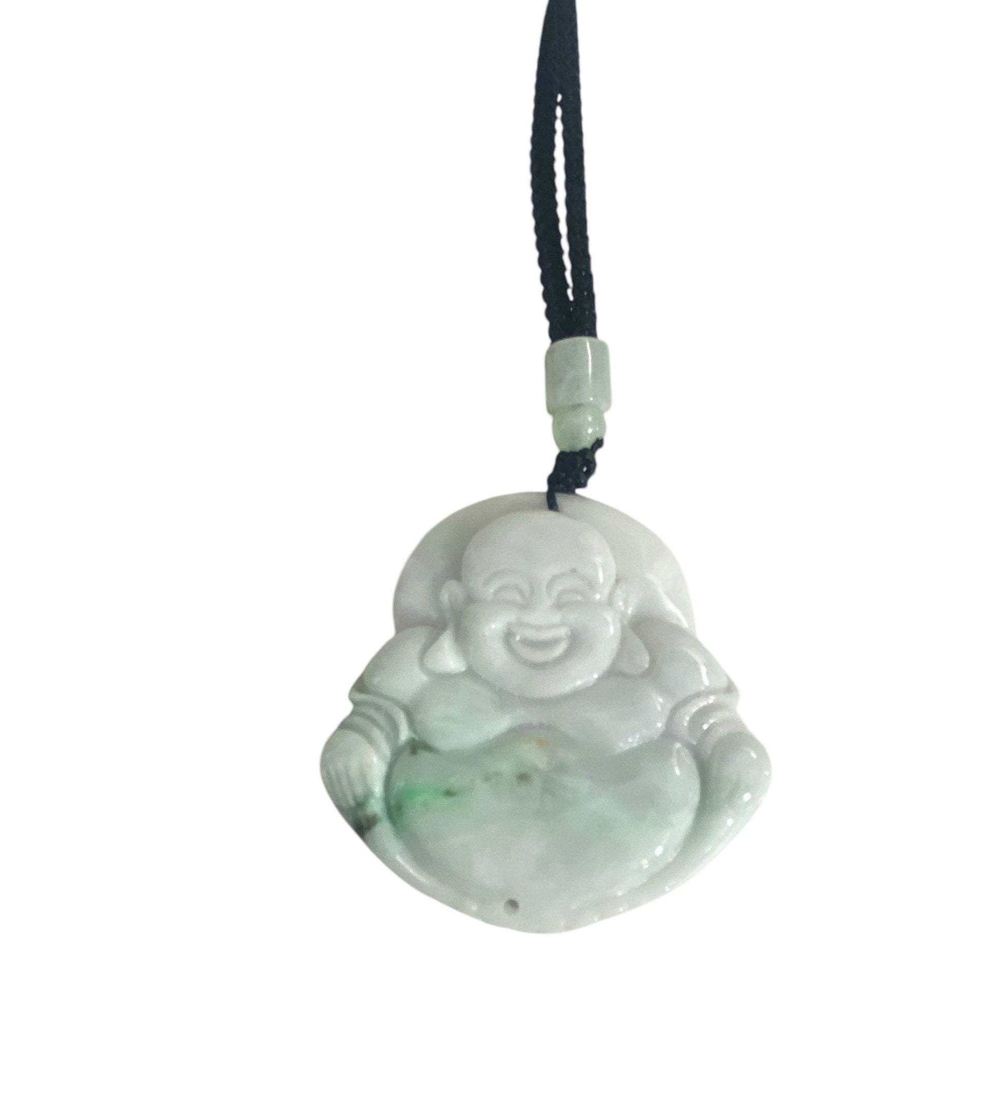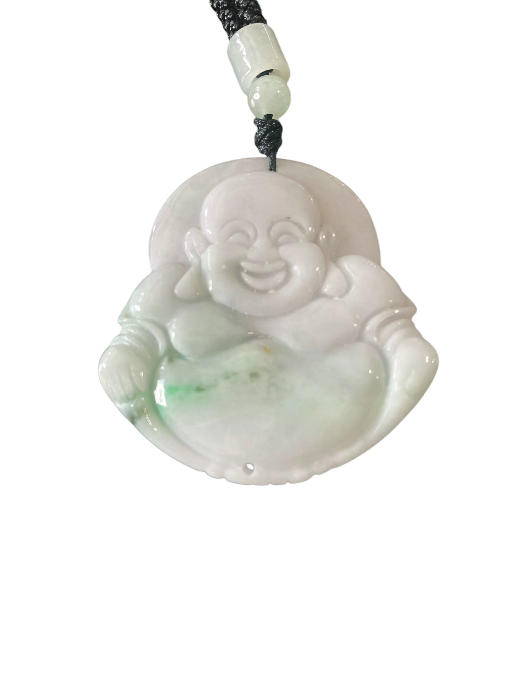 Handcrafted from jadeite jade, this intricately designed pendant showcases the legendary Happy Buddha in exquisite detail. Measuring 15 " in height and 1.75" h by 1.75" w by 0.25" d, it serves as a powerful symbol of good fortune, protection, and prosperity.