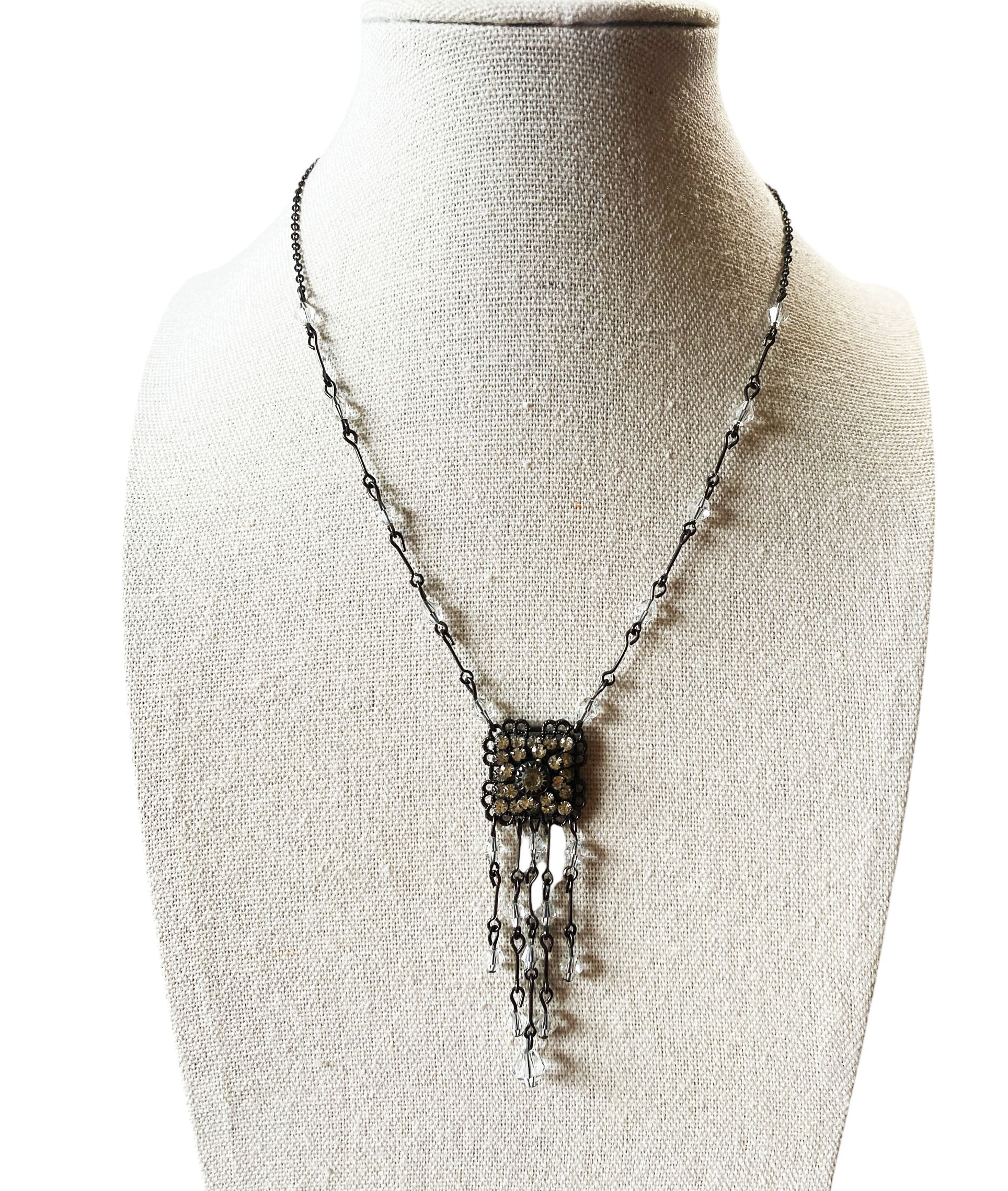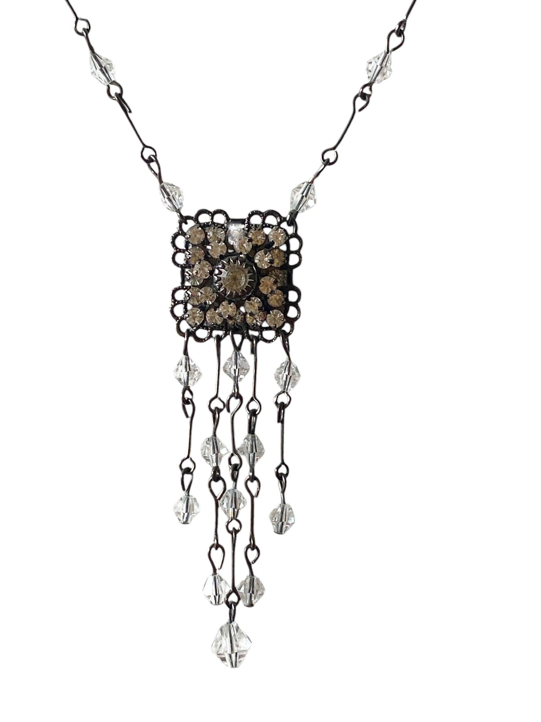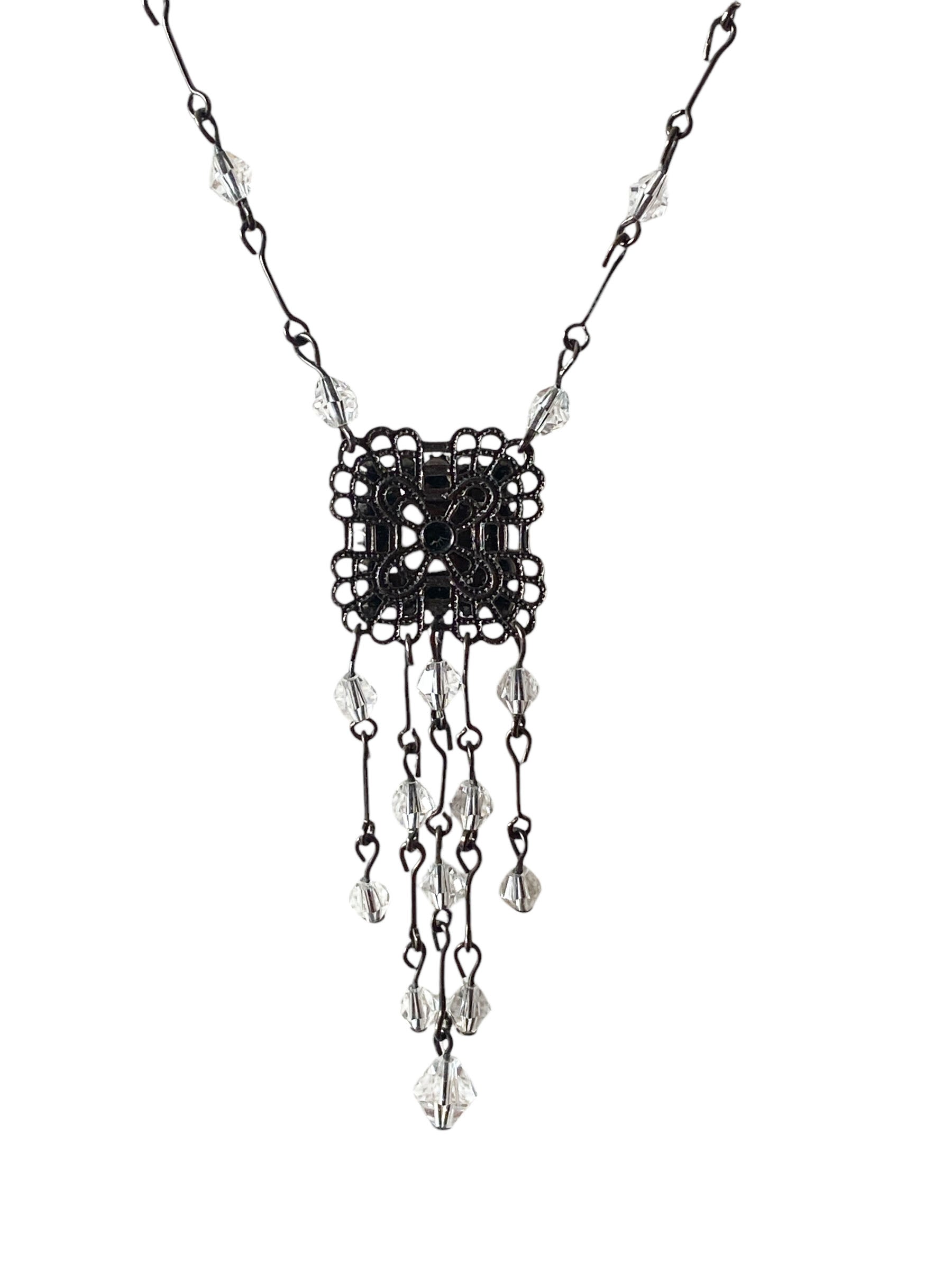 #6392 Vintage Czech Cristal Choker Necklace Gun Metal