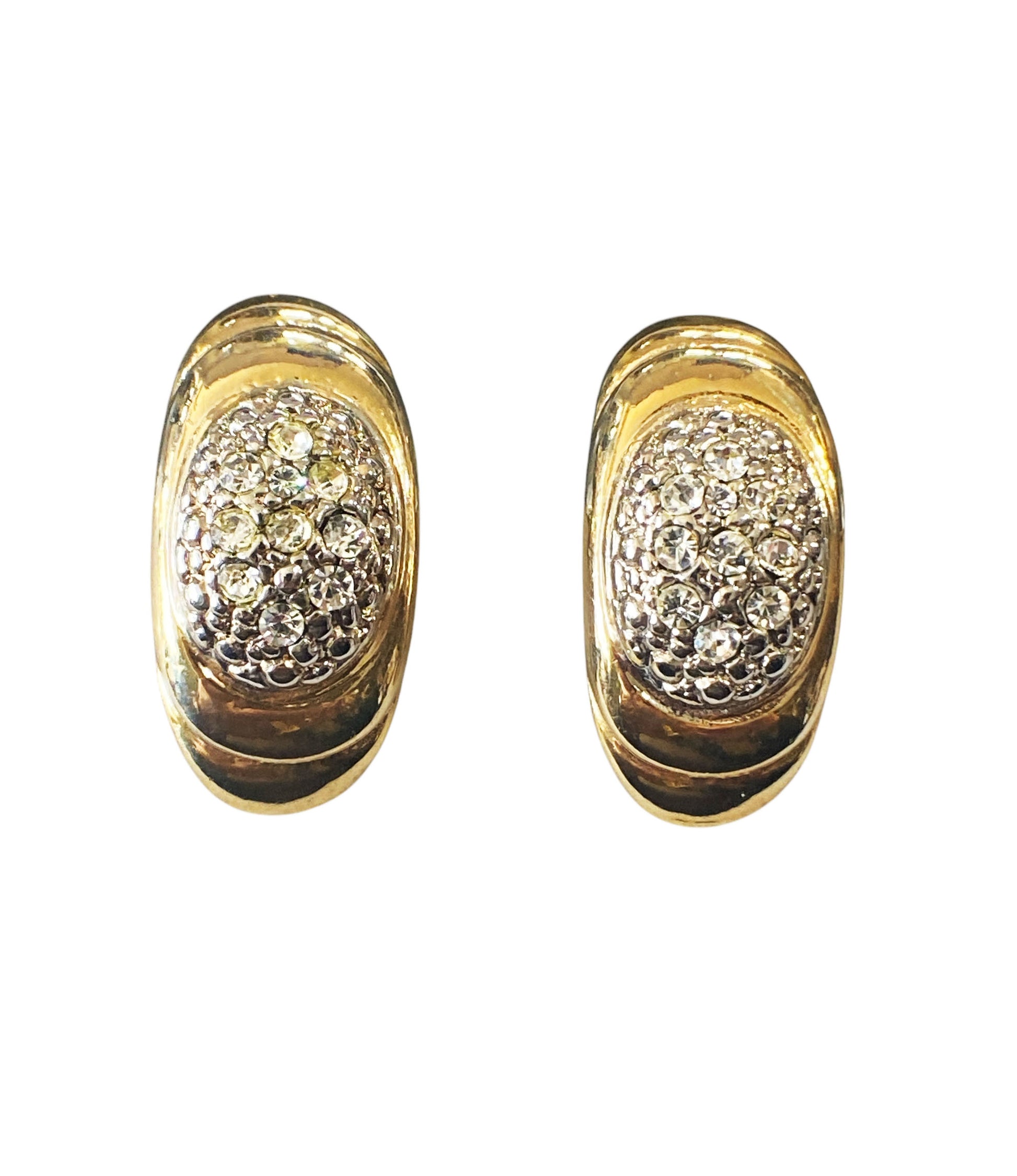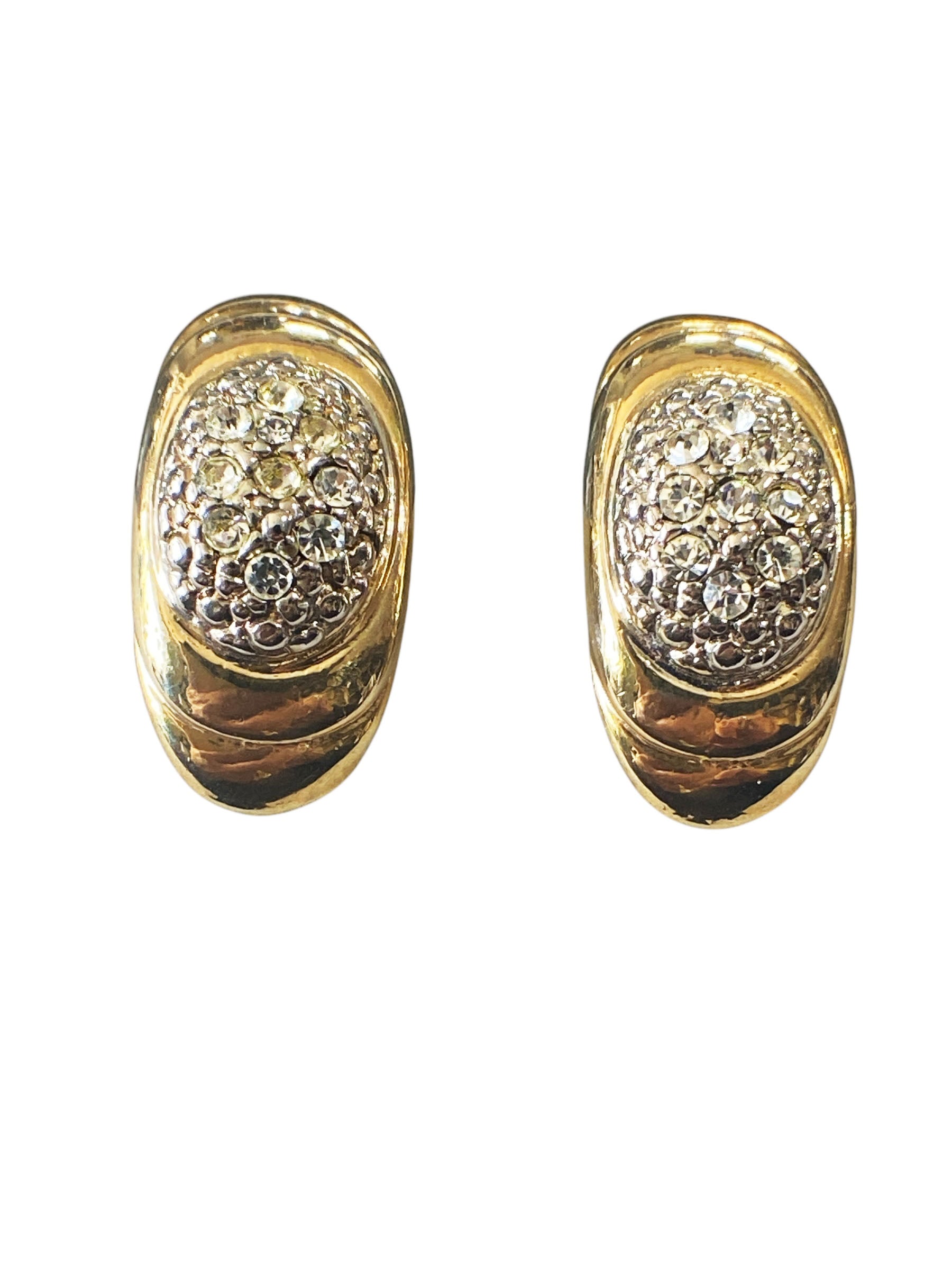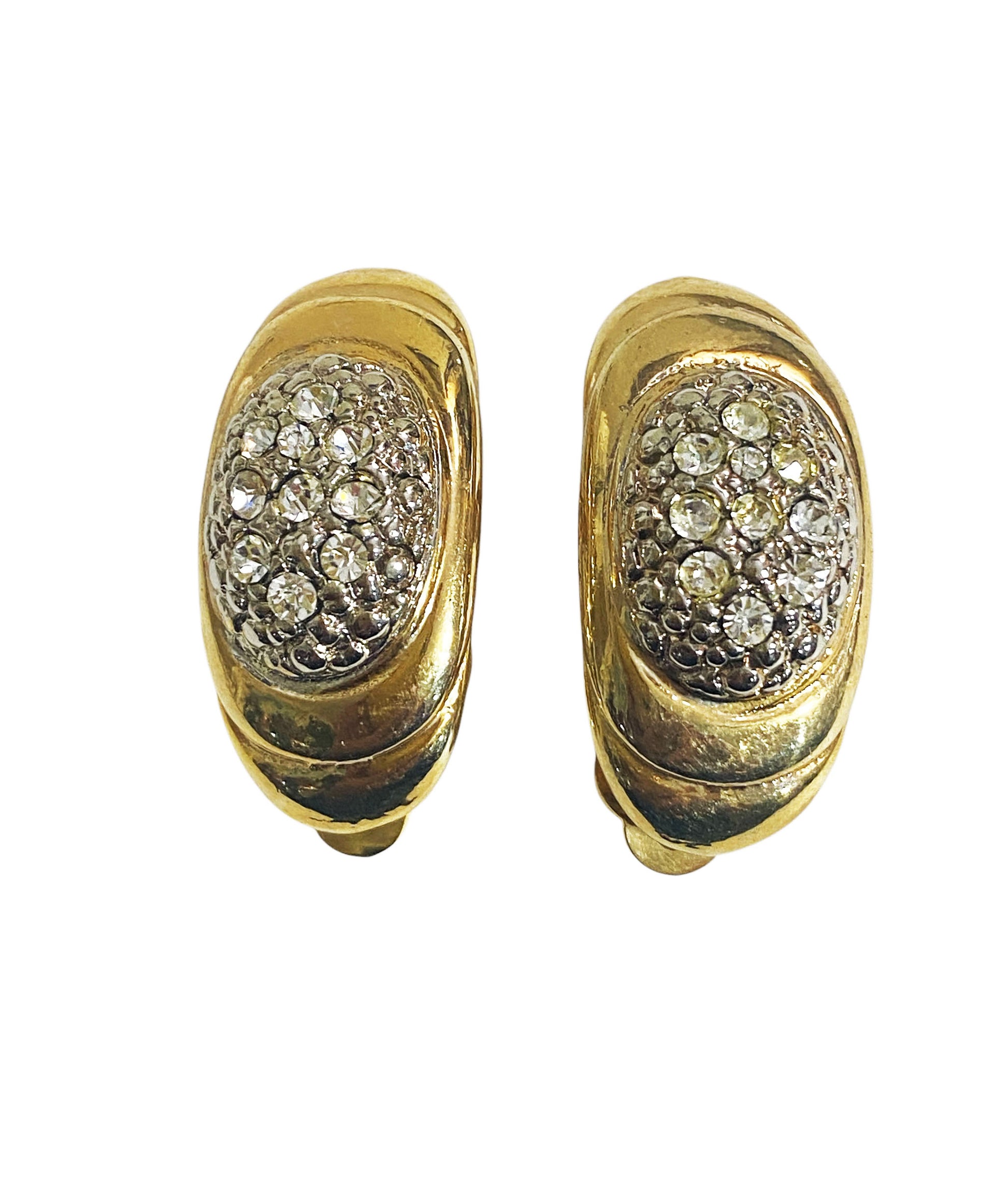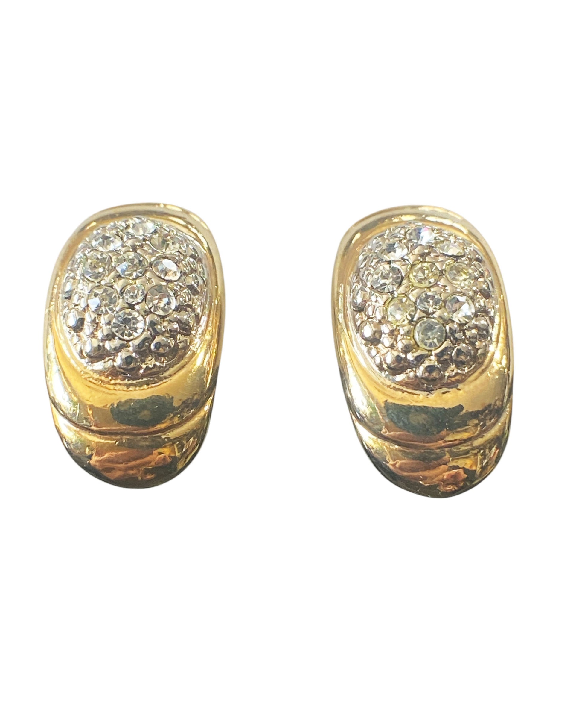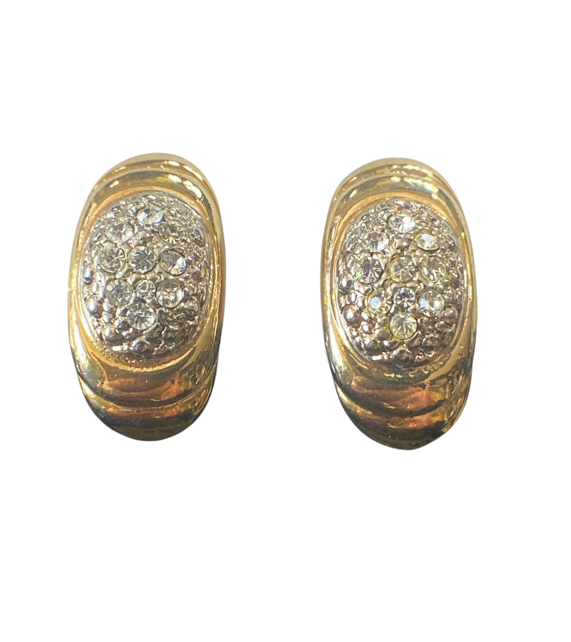 #6396 Vintage Gold Tone W/Shimmering Glass Diamonds Clips Earrings