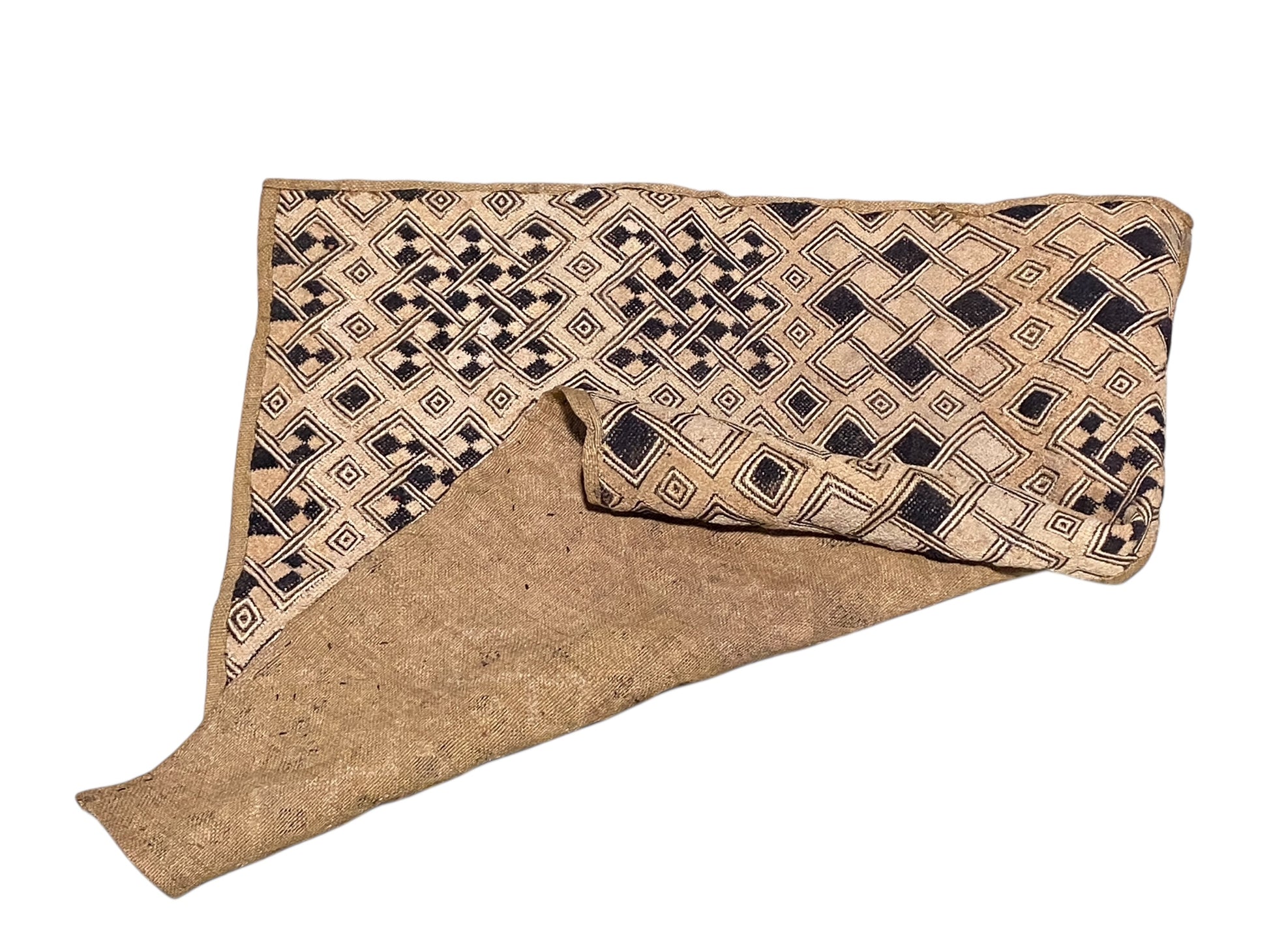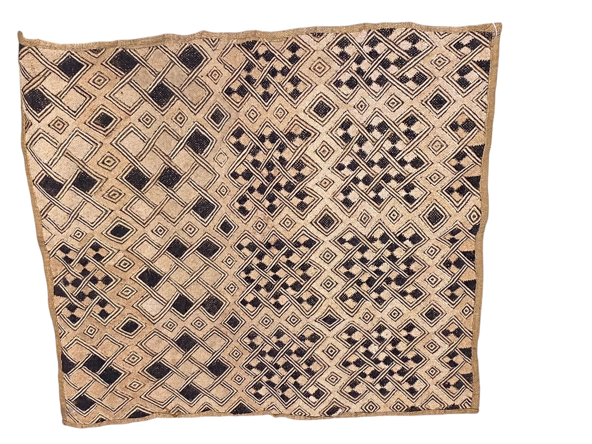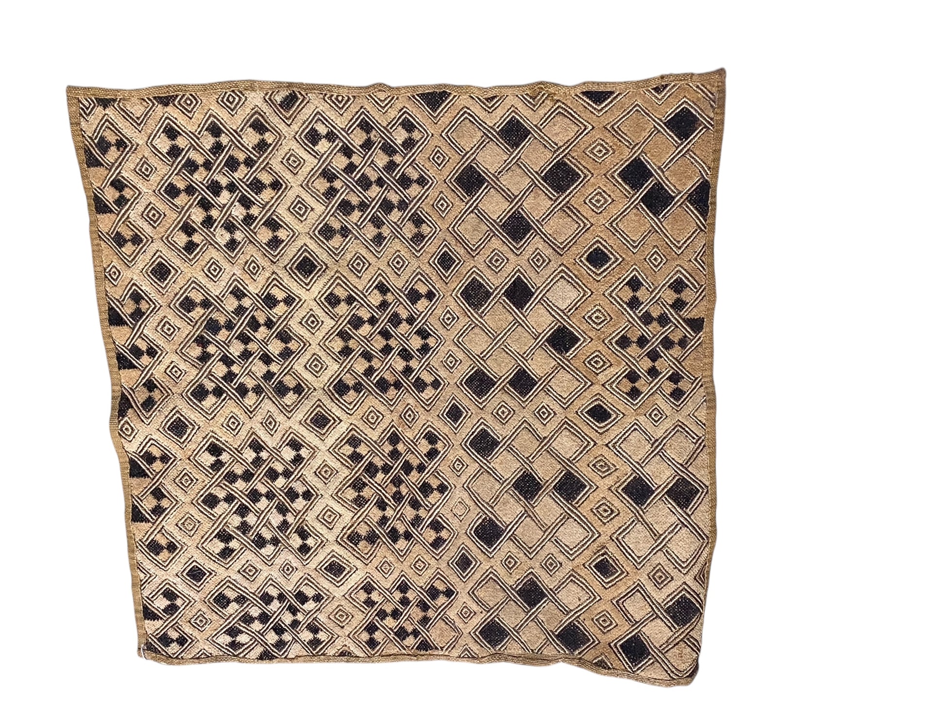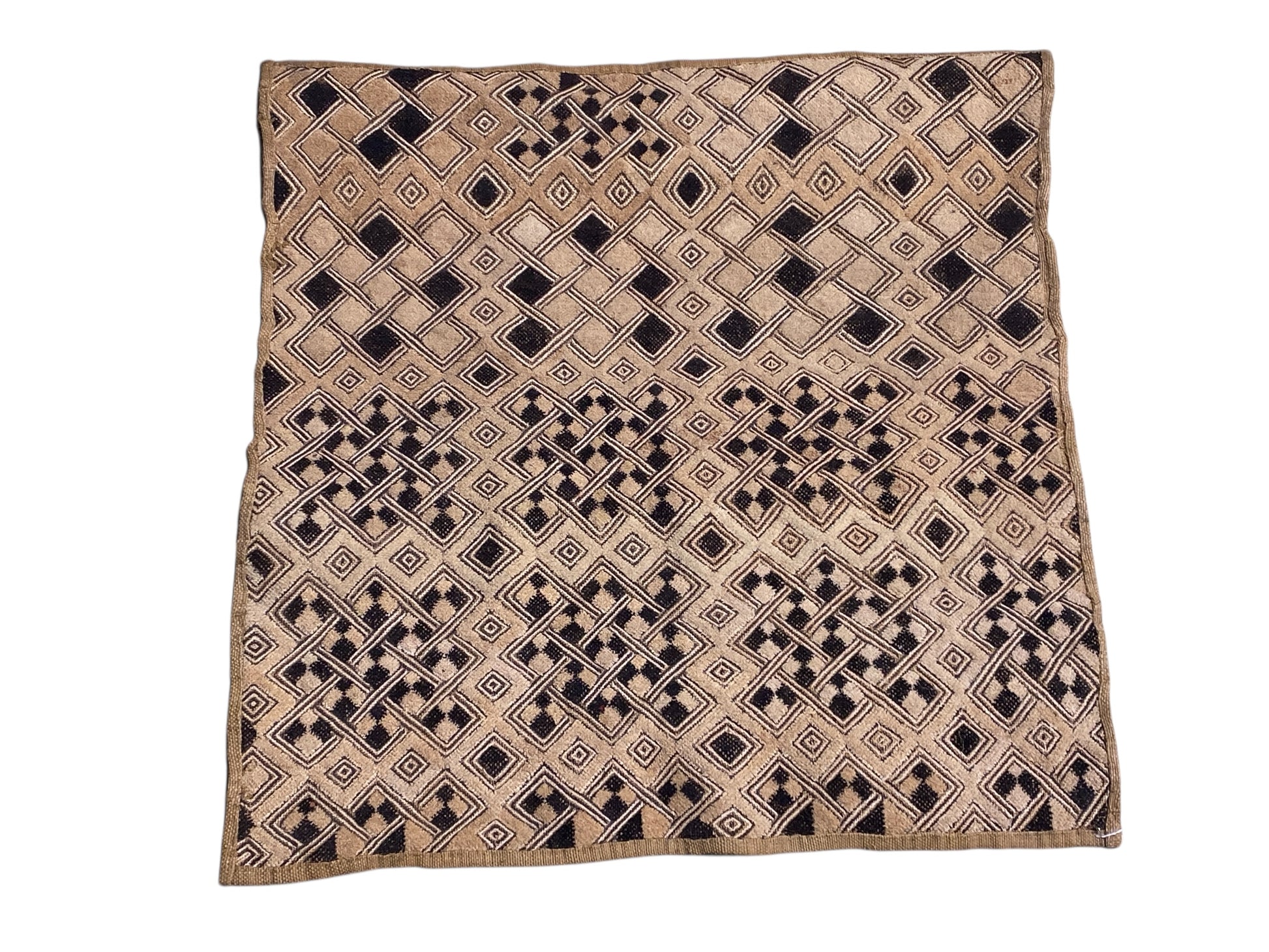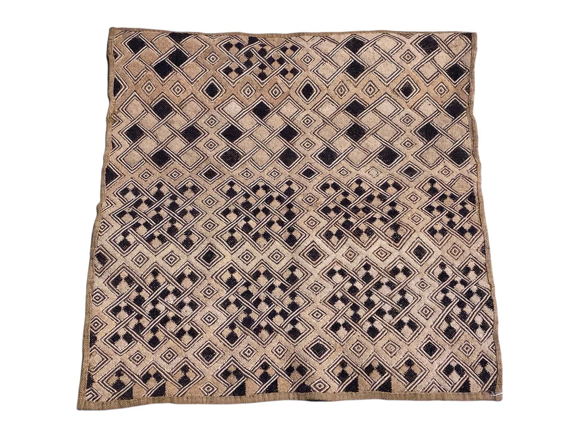 #6701 Vintage LG African Tribal Kuba Kasai Velvet Raffia Textile 27" by 26.5"