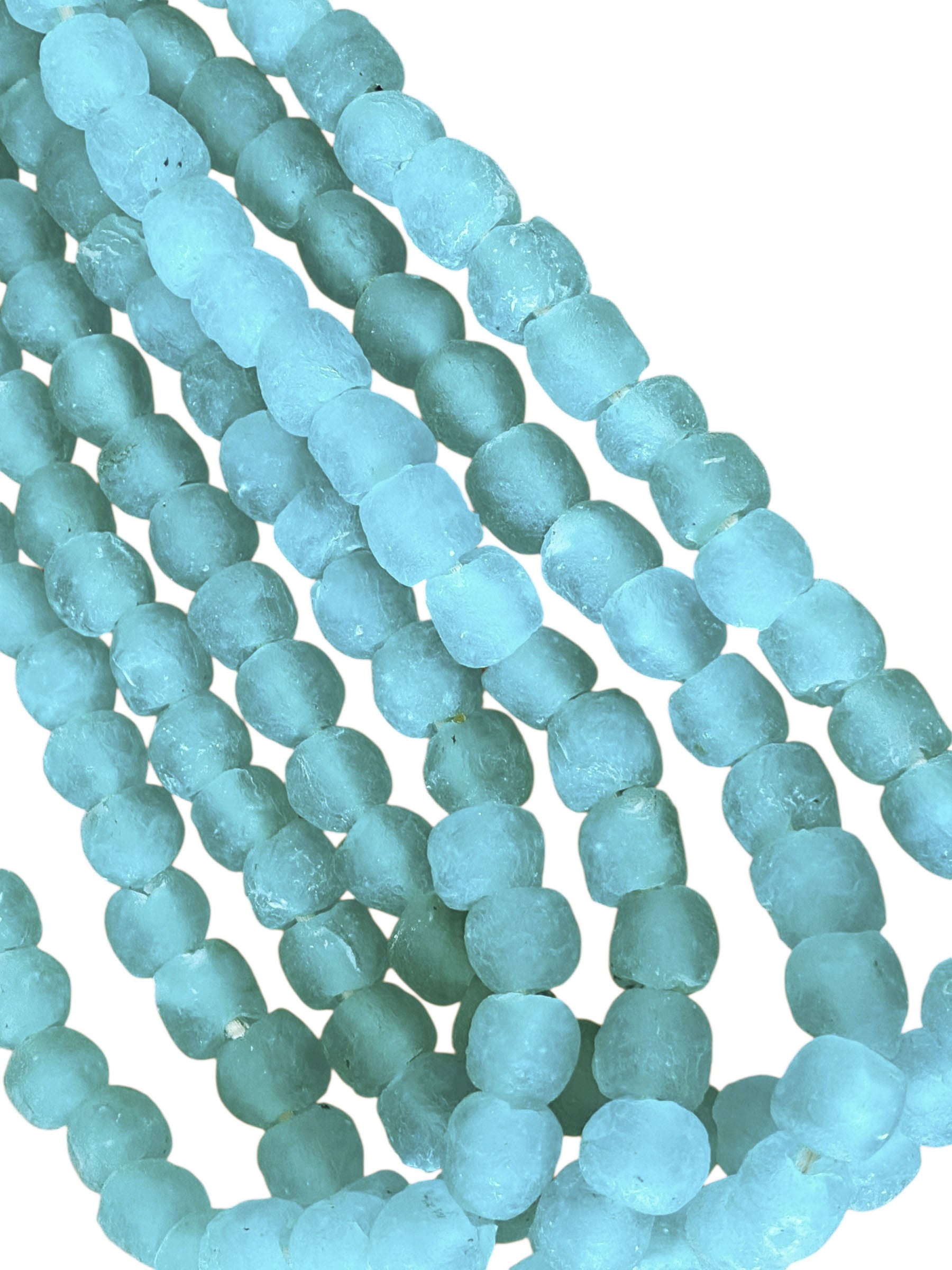 #6815 Vintage African Aqua Glass Trade Beads Strand 13" H Set of 4