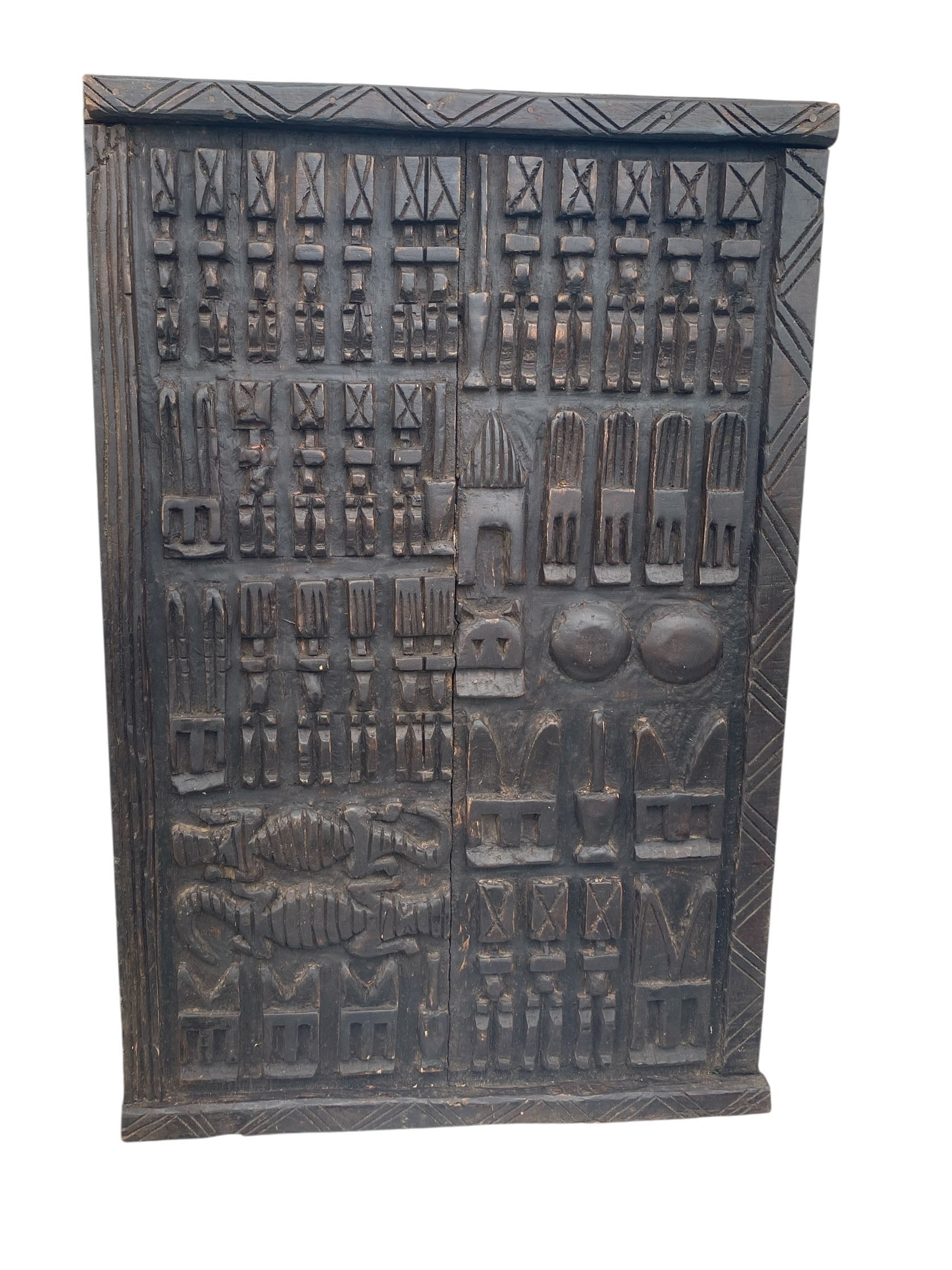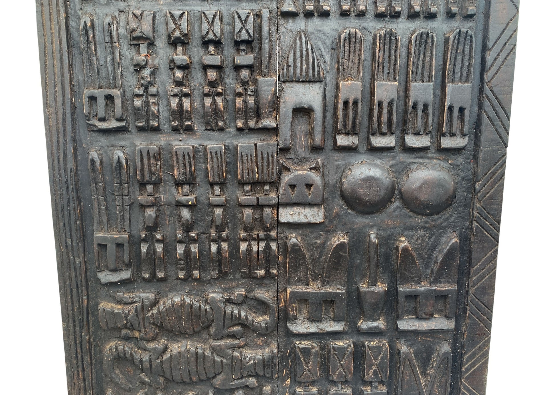 # 6830 Vintage Dogon Granary Door With Nommo Ancestors Figures Mali African 36" H