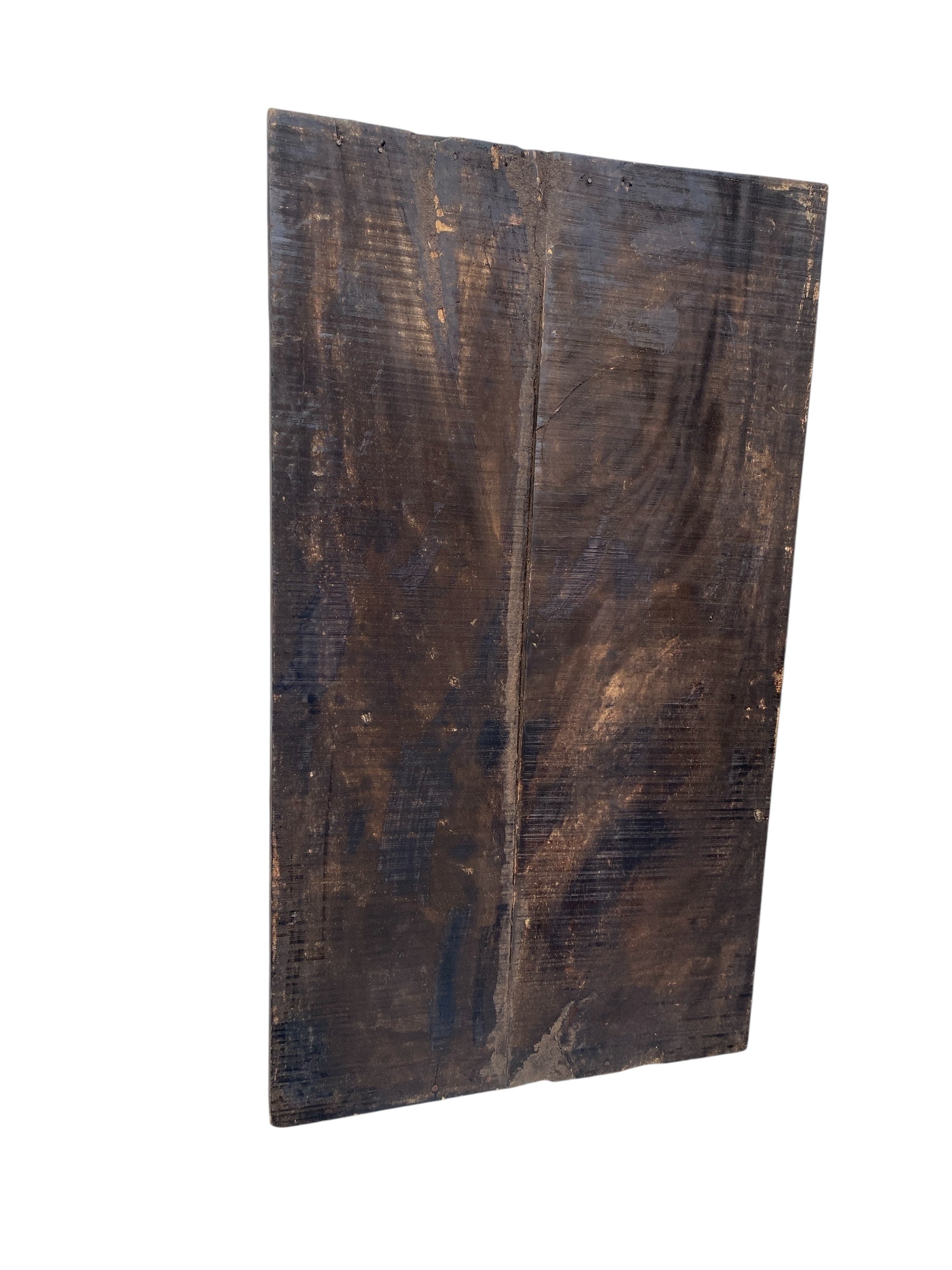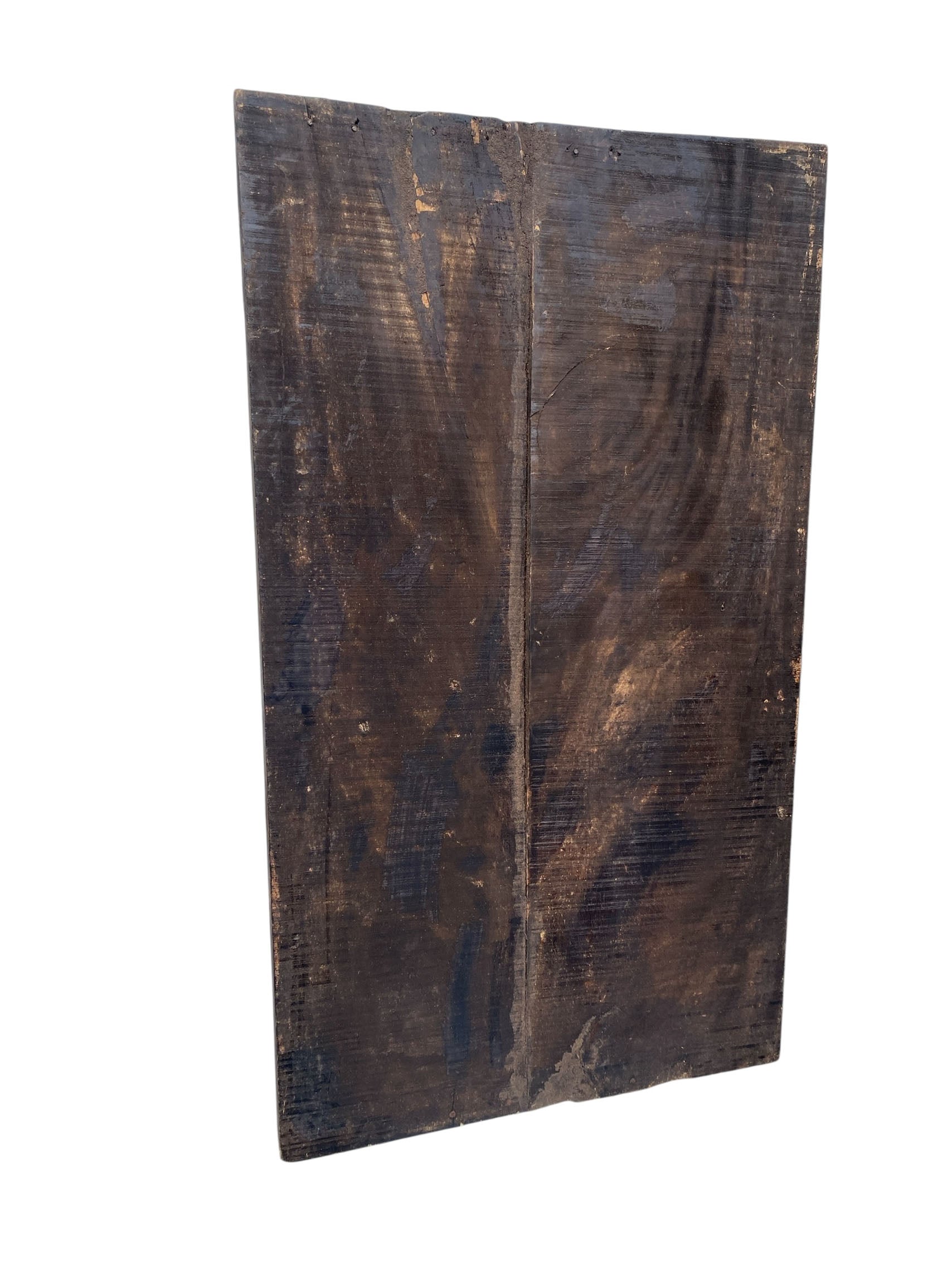 This remarkable vintage Mali African door showcases standing figures of Dogon tribe ancestors, measuring 36" H by 24" W and 1.5" D. The detailed relief carvings include human forms, crocodiles, and breasts, artfully arranged along the borders. The Dogon revere the Nommo, their primordial ancestors credited with founding agriculture and blacksmithing. The door’s vibrant figures embody a tribute to life and the deep respect for ancestral heritage.