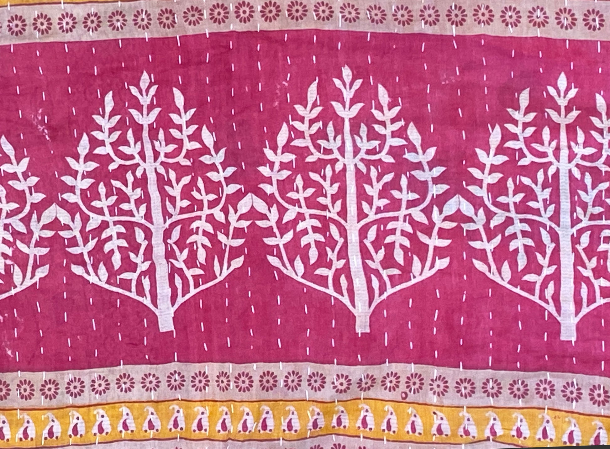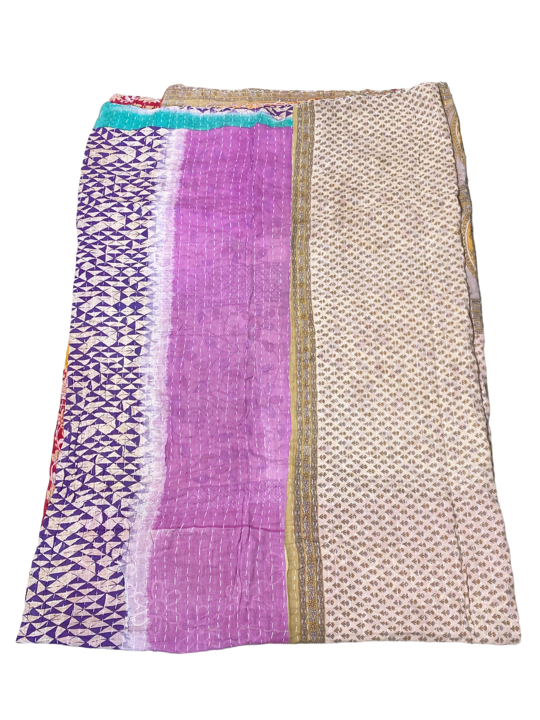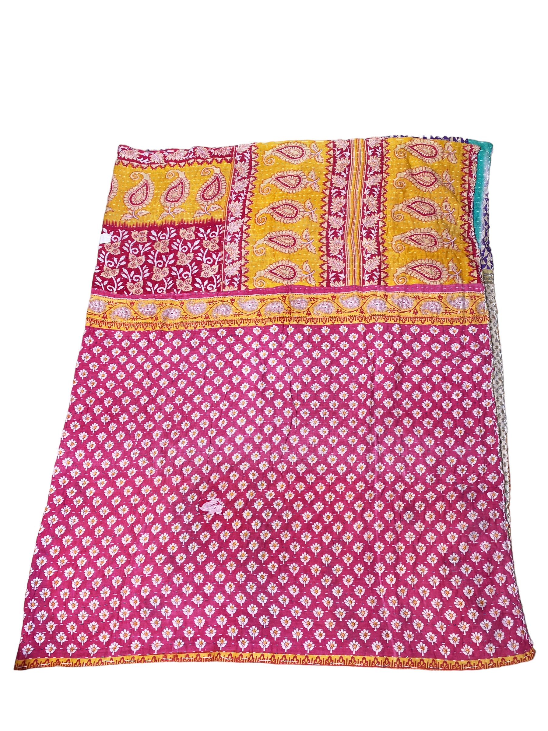 #7032 Vintage Indian CottonThrow Kantha Quilt 83" by 52" w
