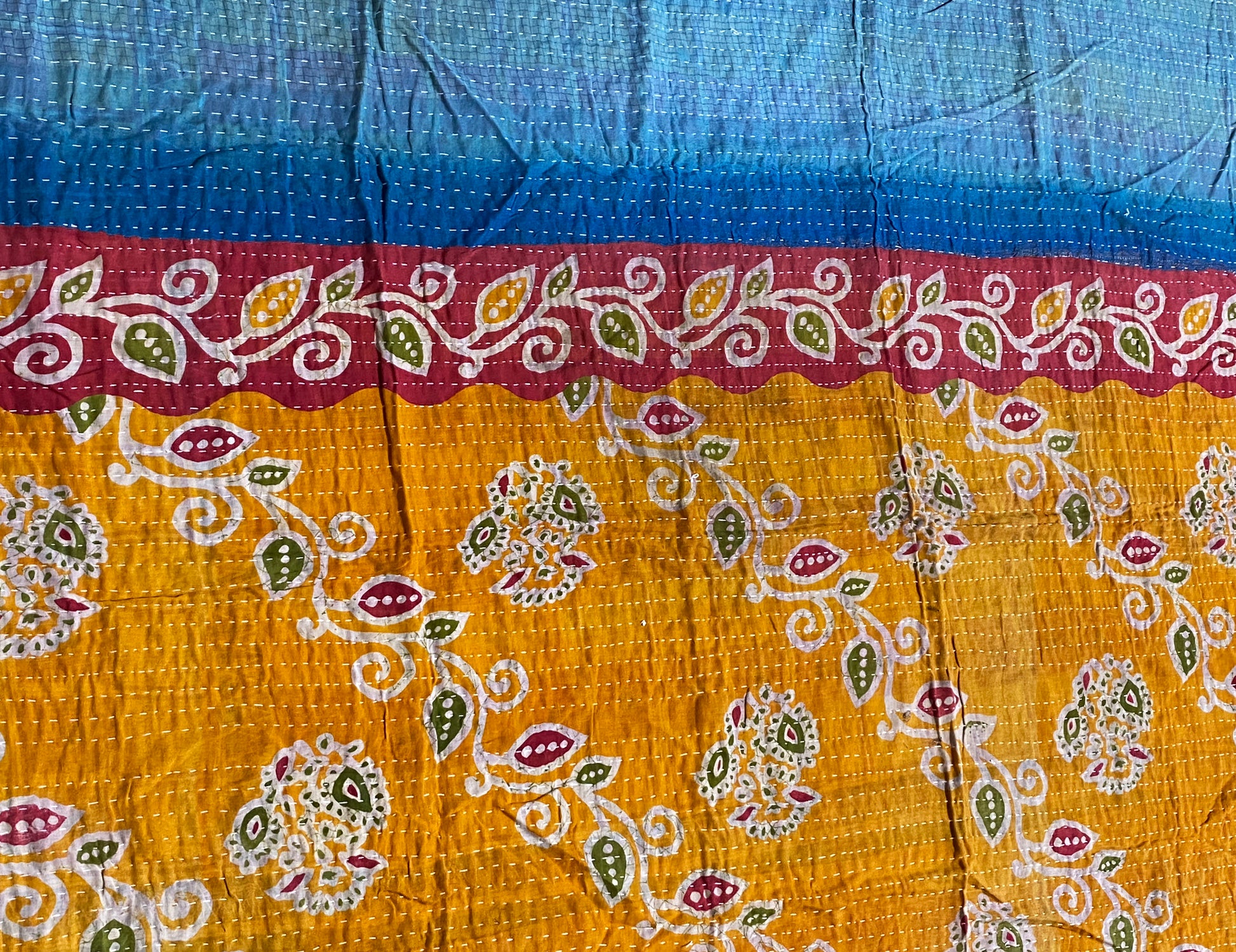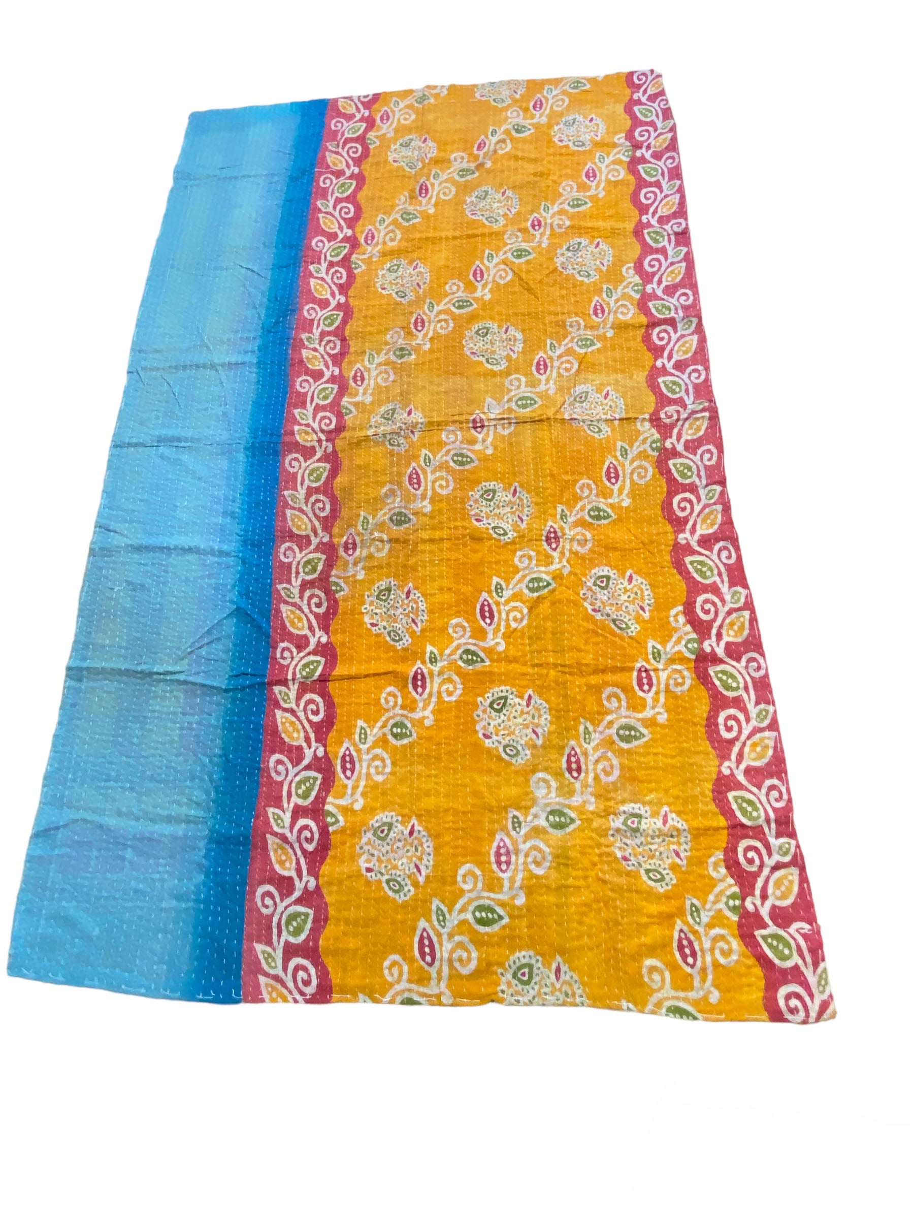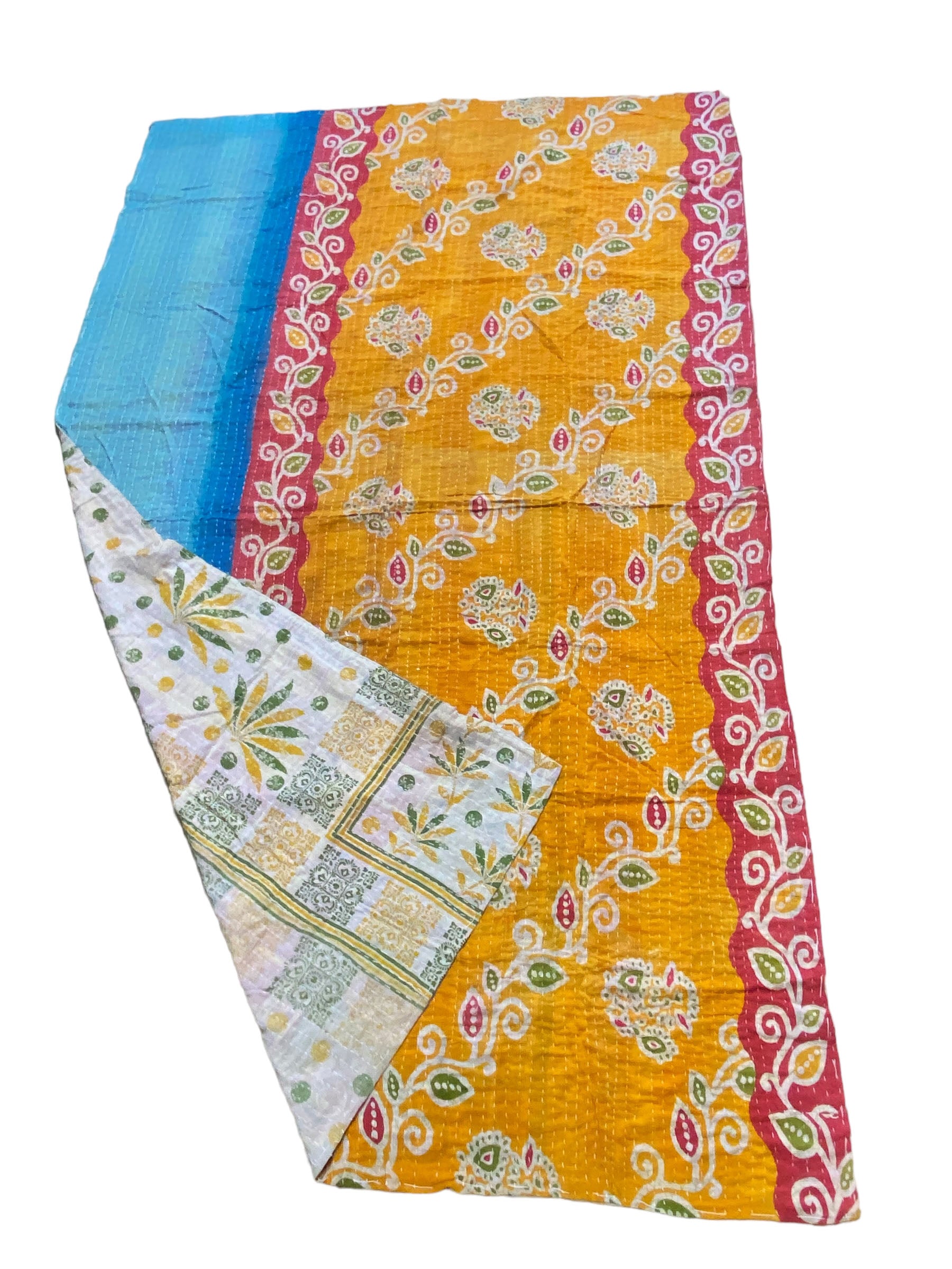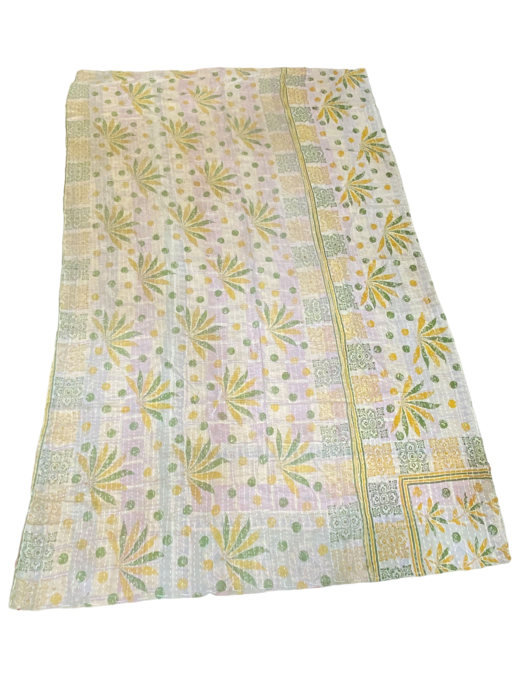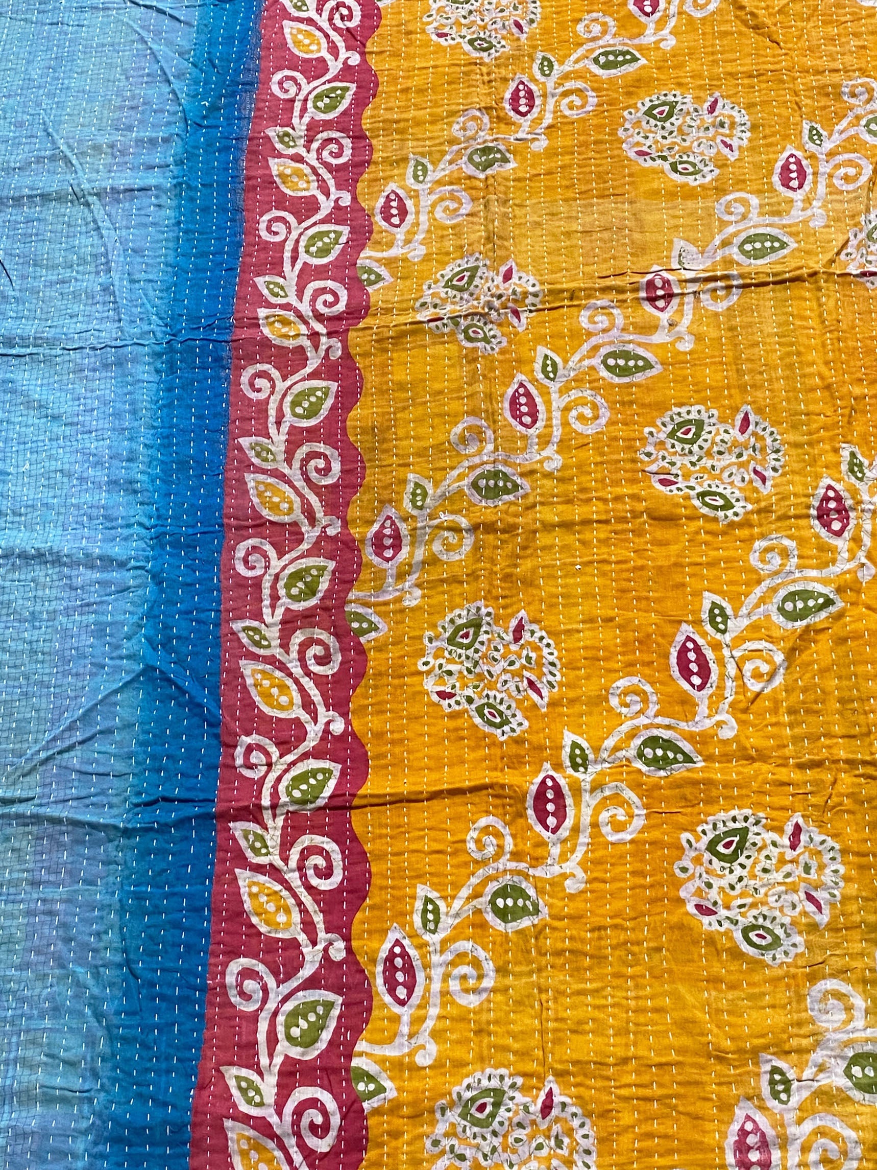 #7068 Vintage Indian CottonThrow Kantha Quilt 83" by 53" w