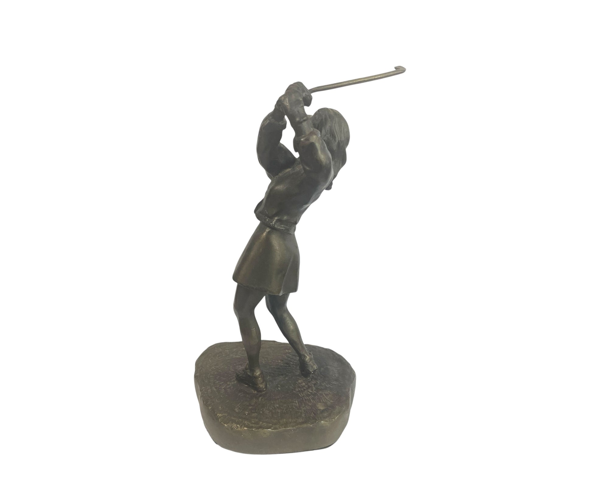 #90 Vtg Bronze Sculpture 9" Female Golfer on Base