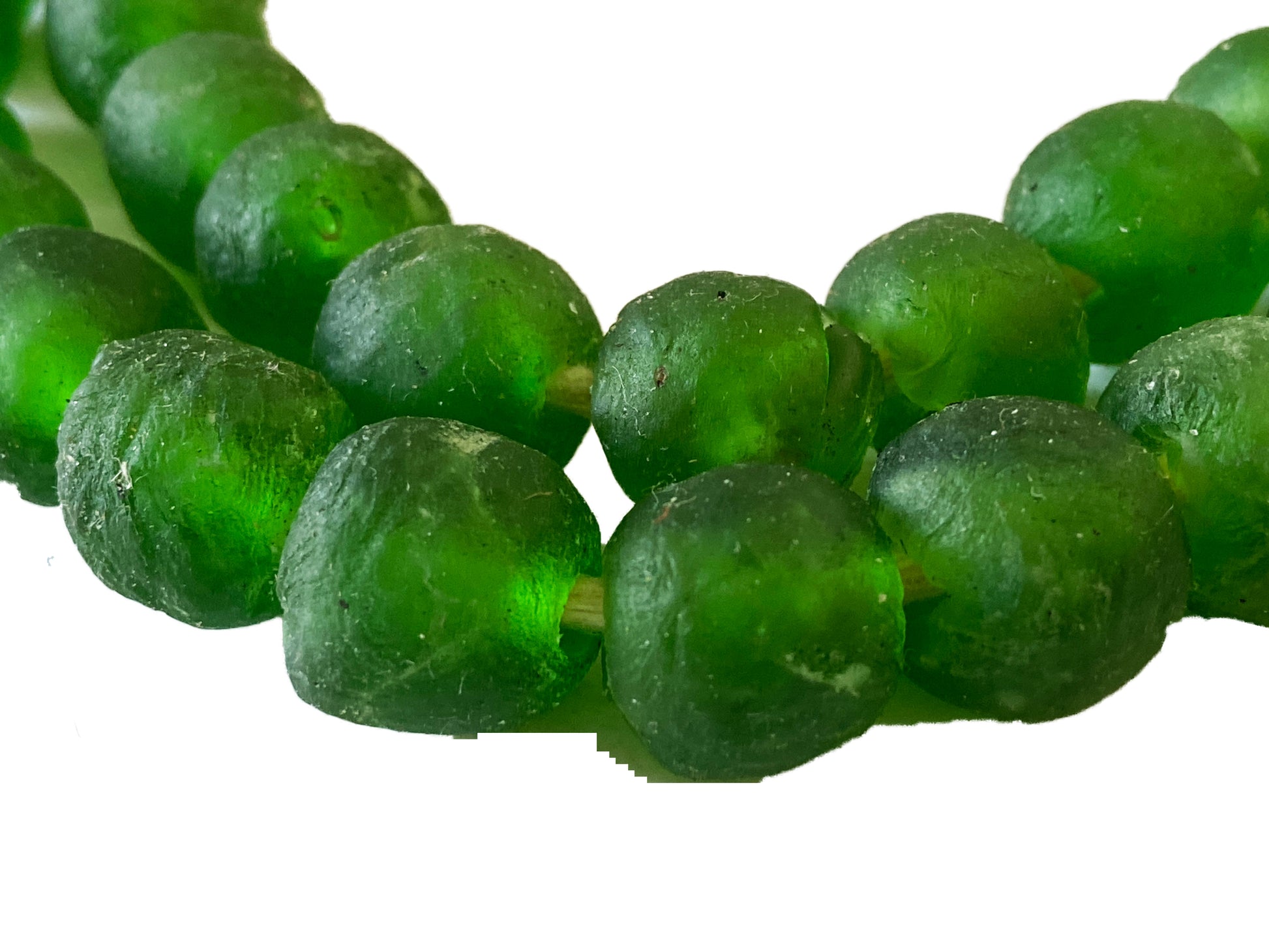 Superb String of African handmade jumbo trade Glass beads string, strung on hemp.
