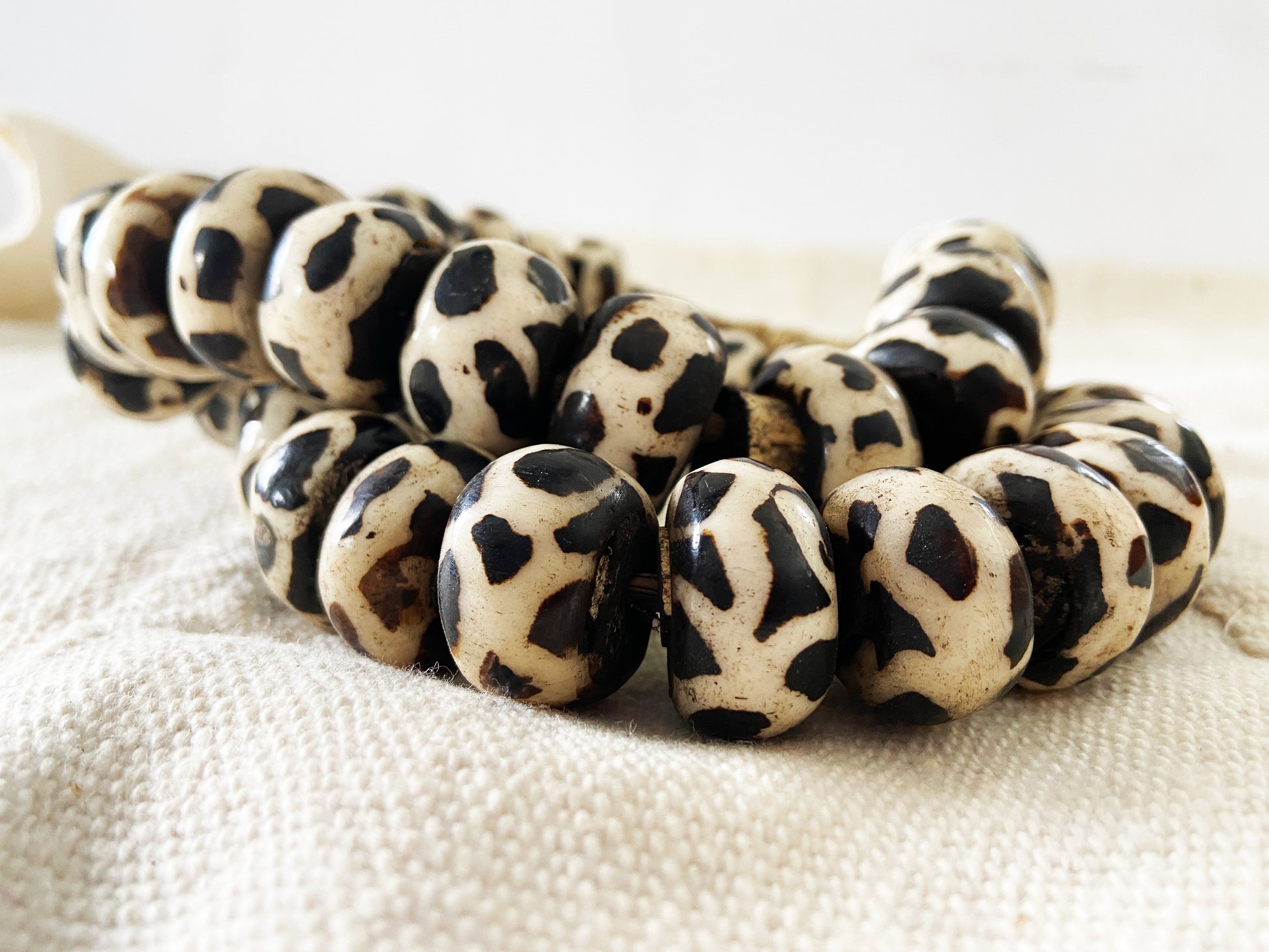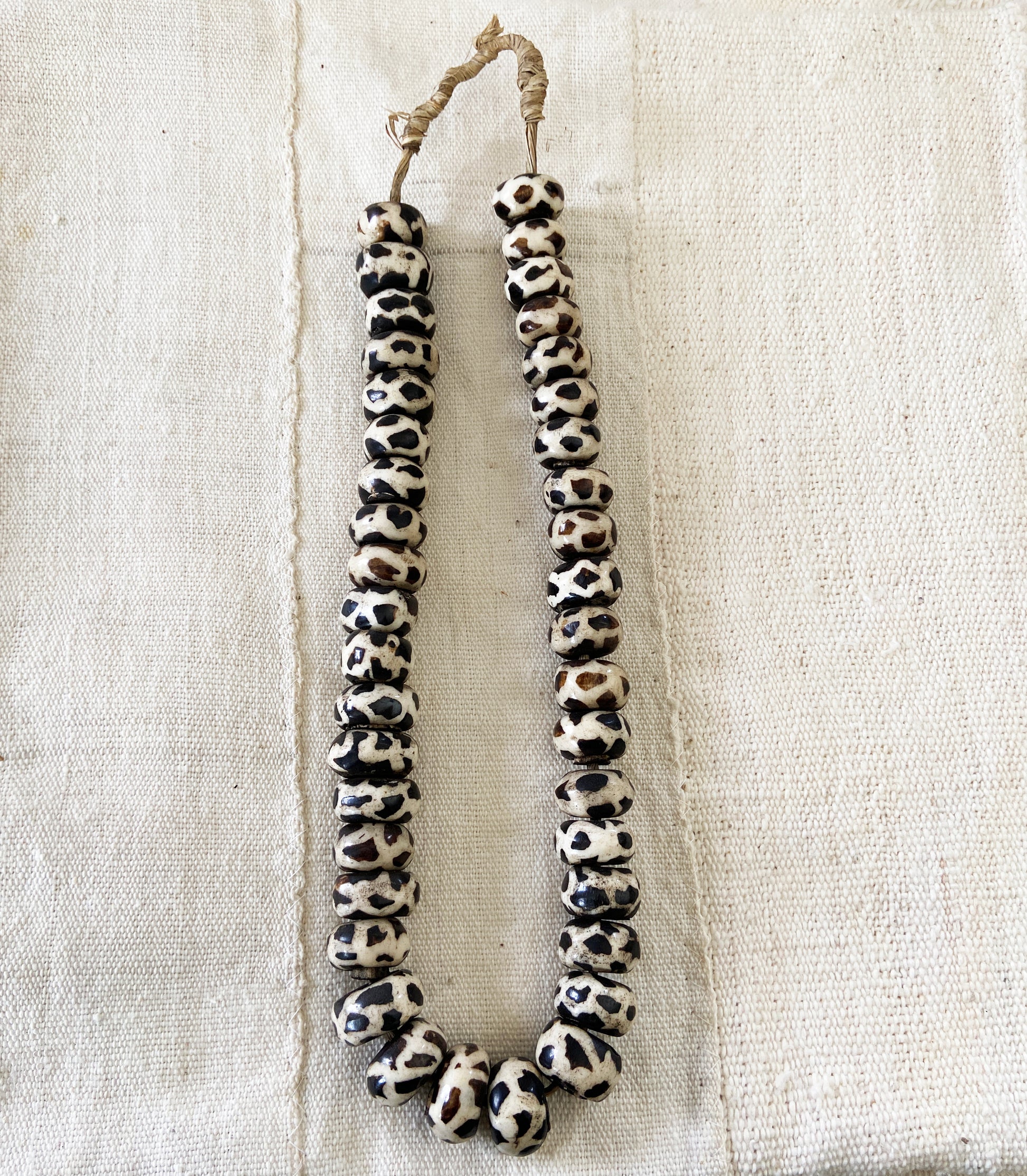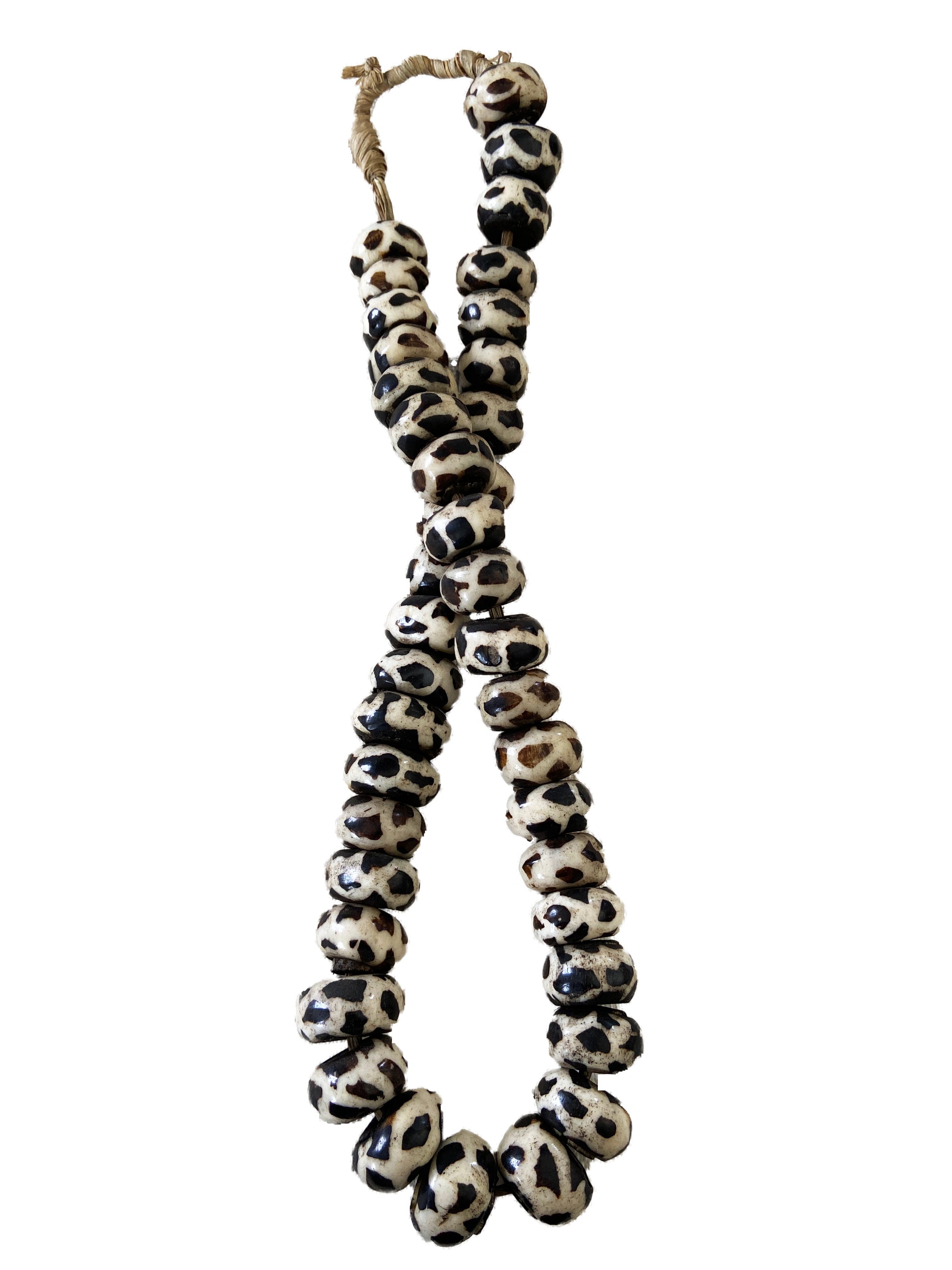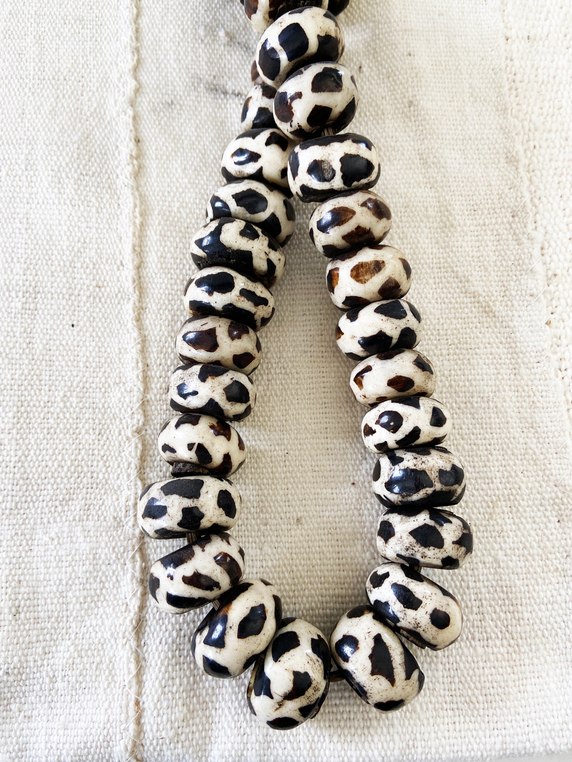Superb String of African handmade trade bone brown and white beads strung on hemp.