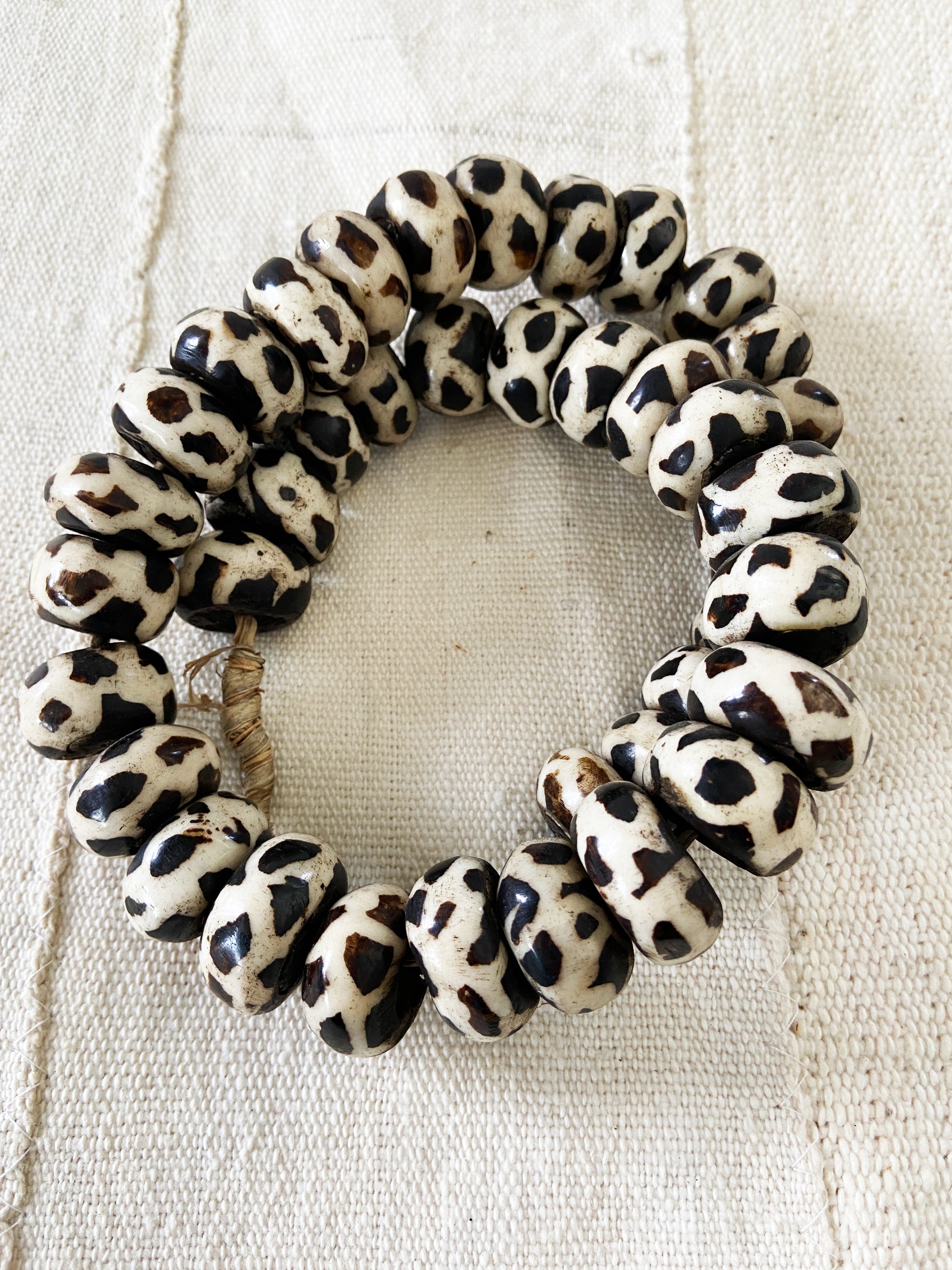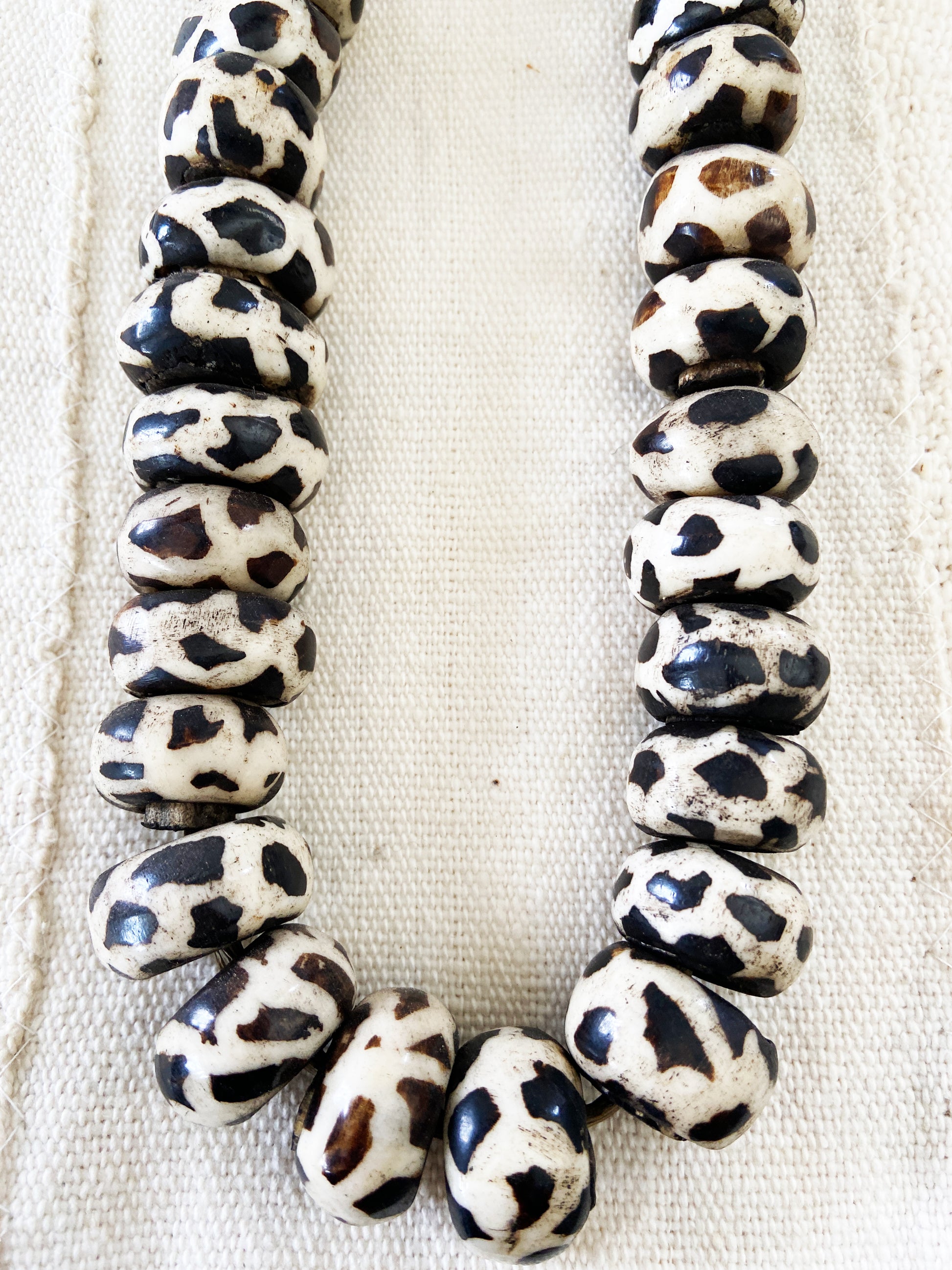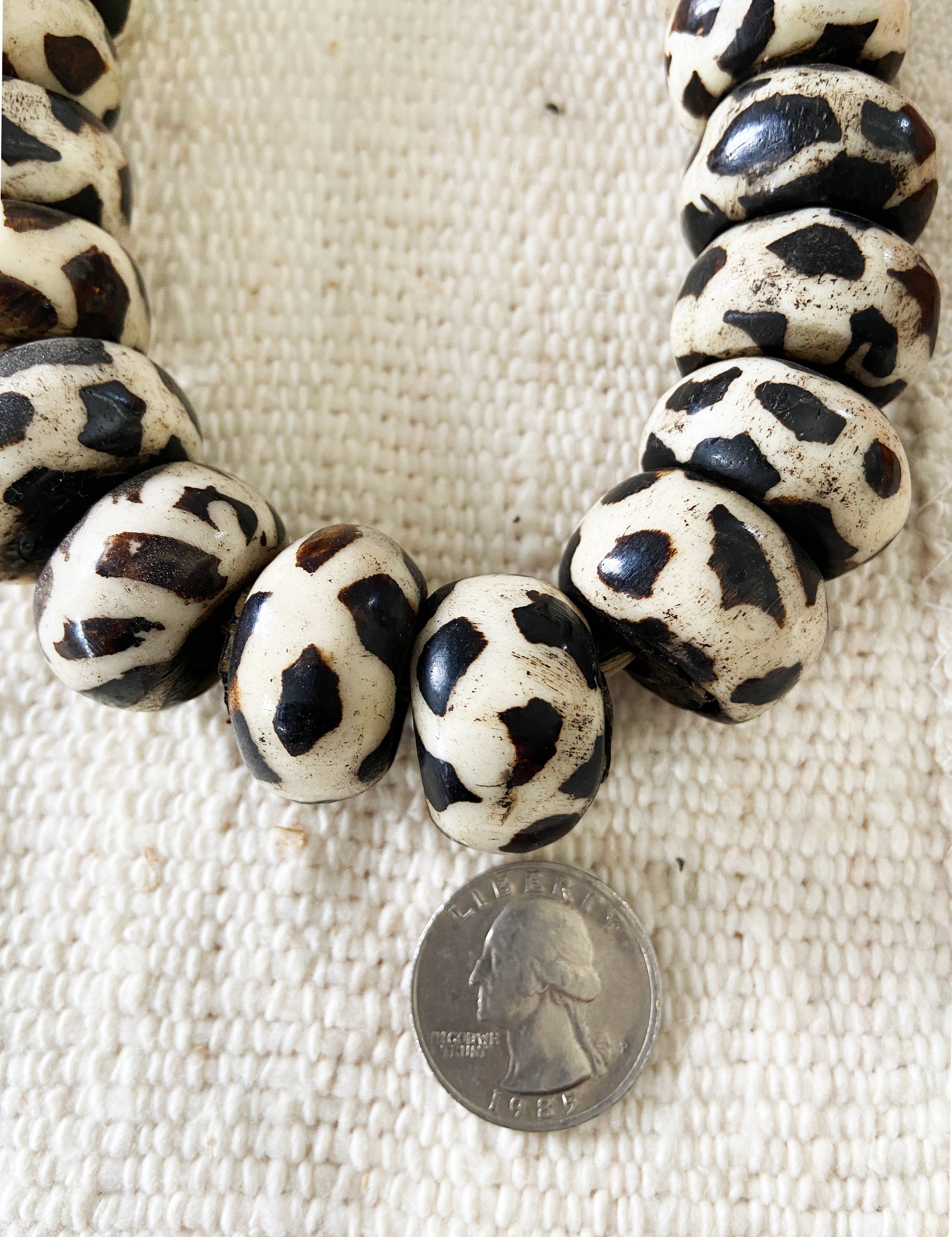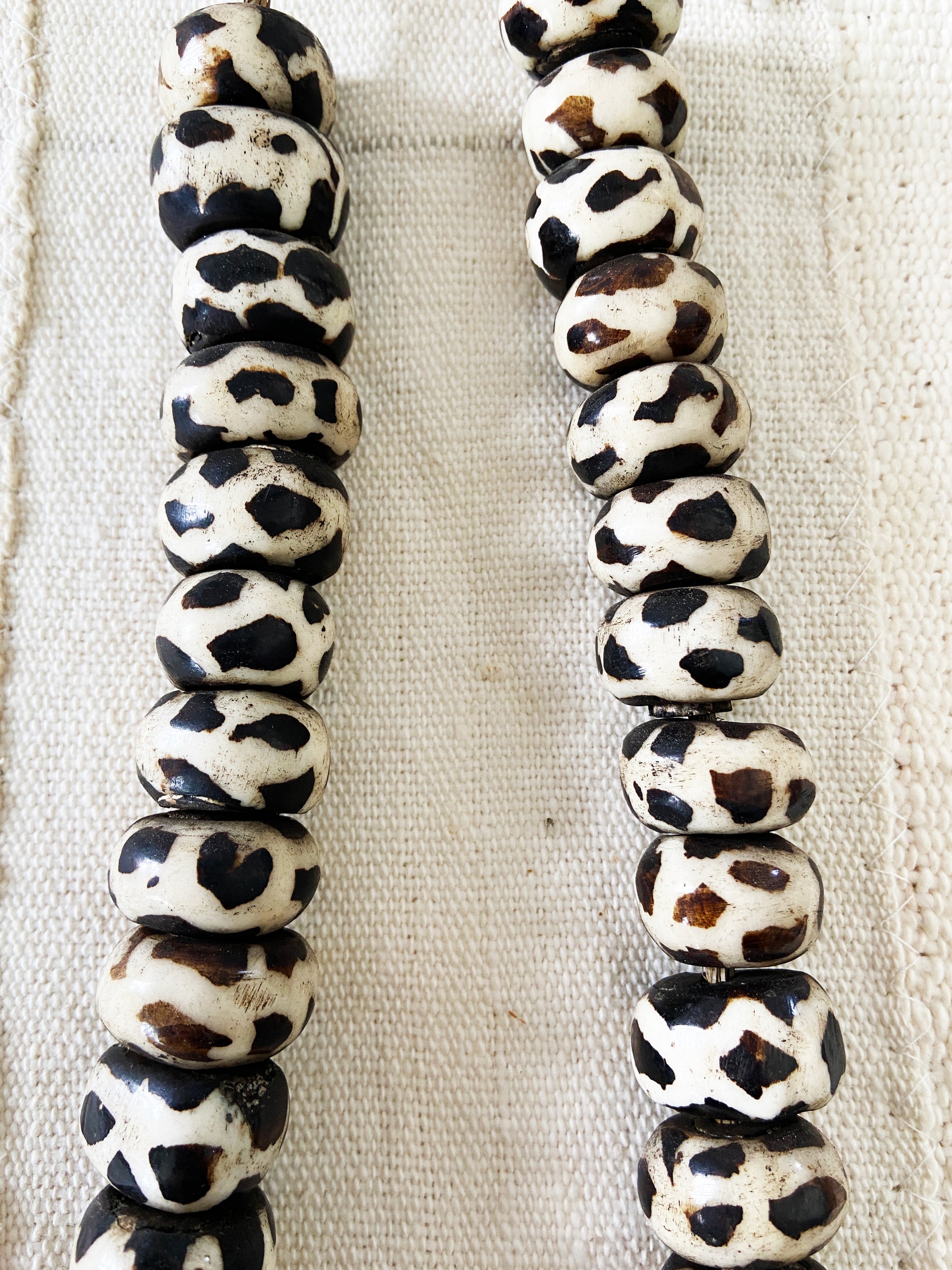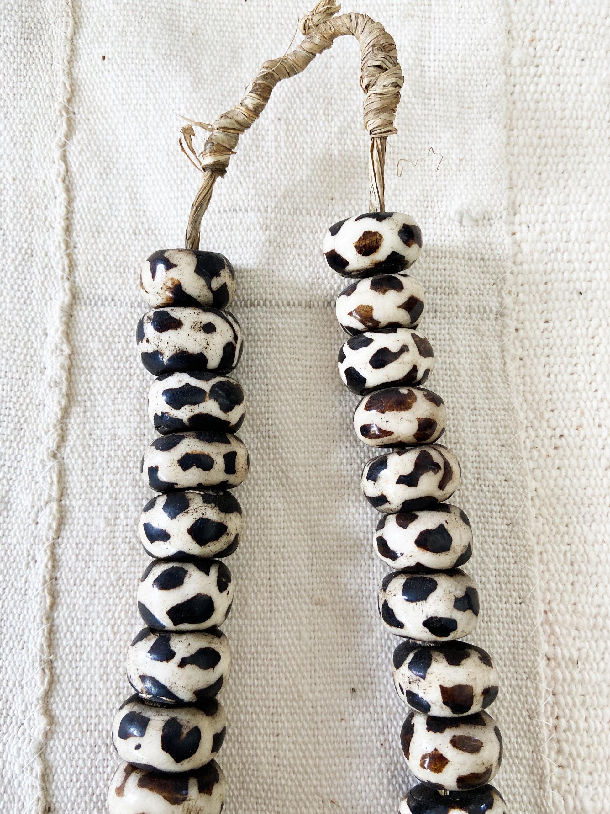 Superb String of African handmade trade bone brown and white beads strung on hemp.