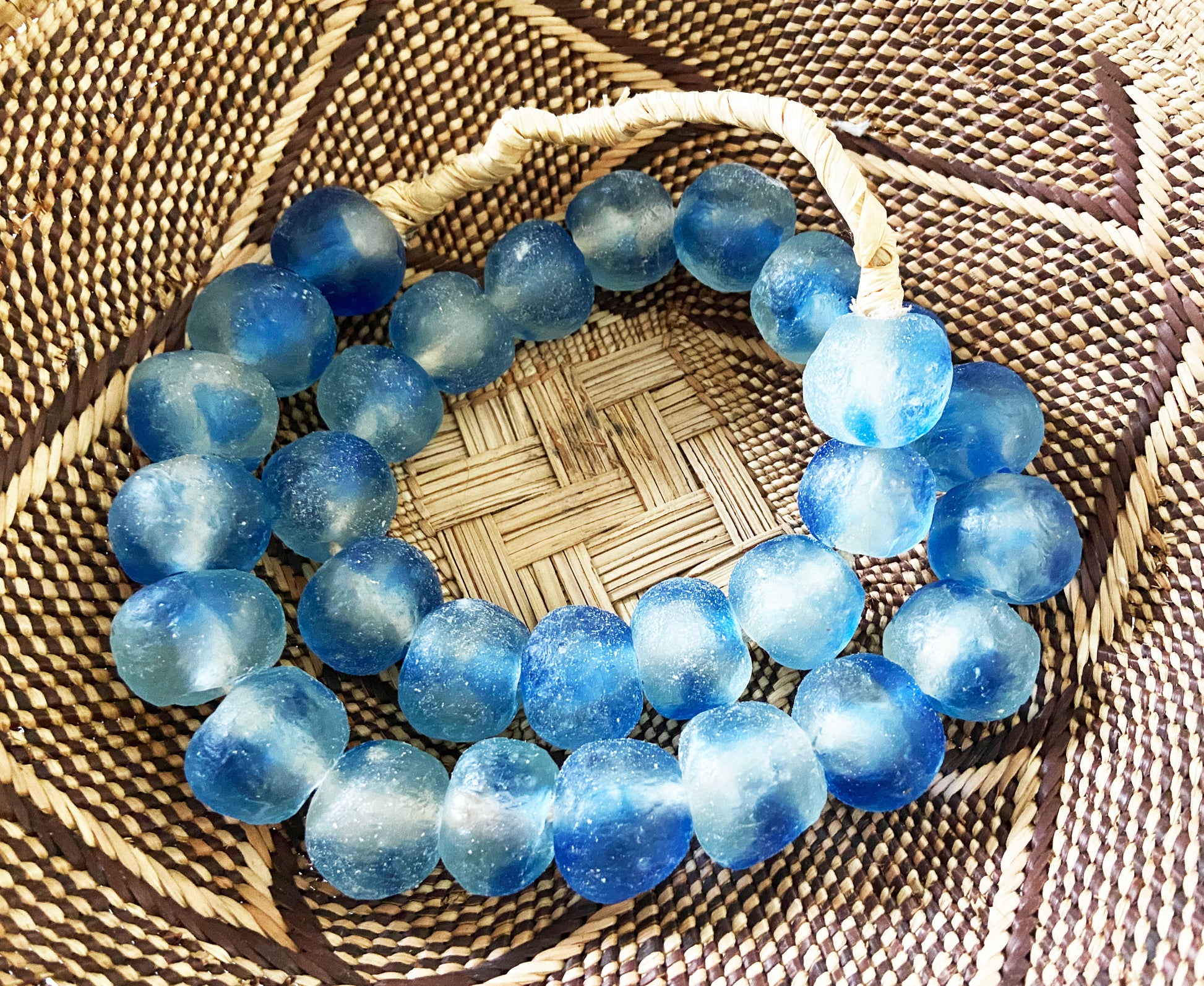 Superb String of African handmade jumbo Brown trade Glass beads string, strung on hemp.