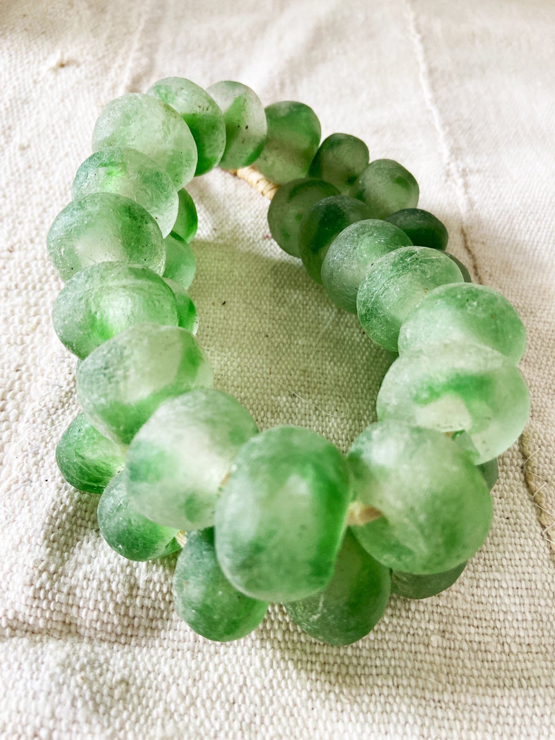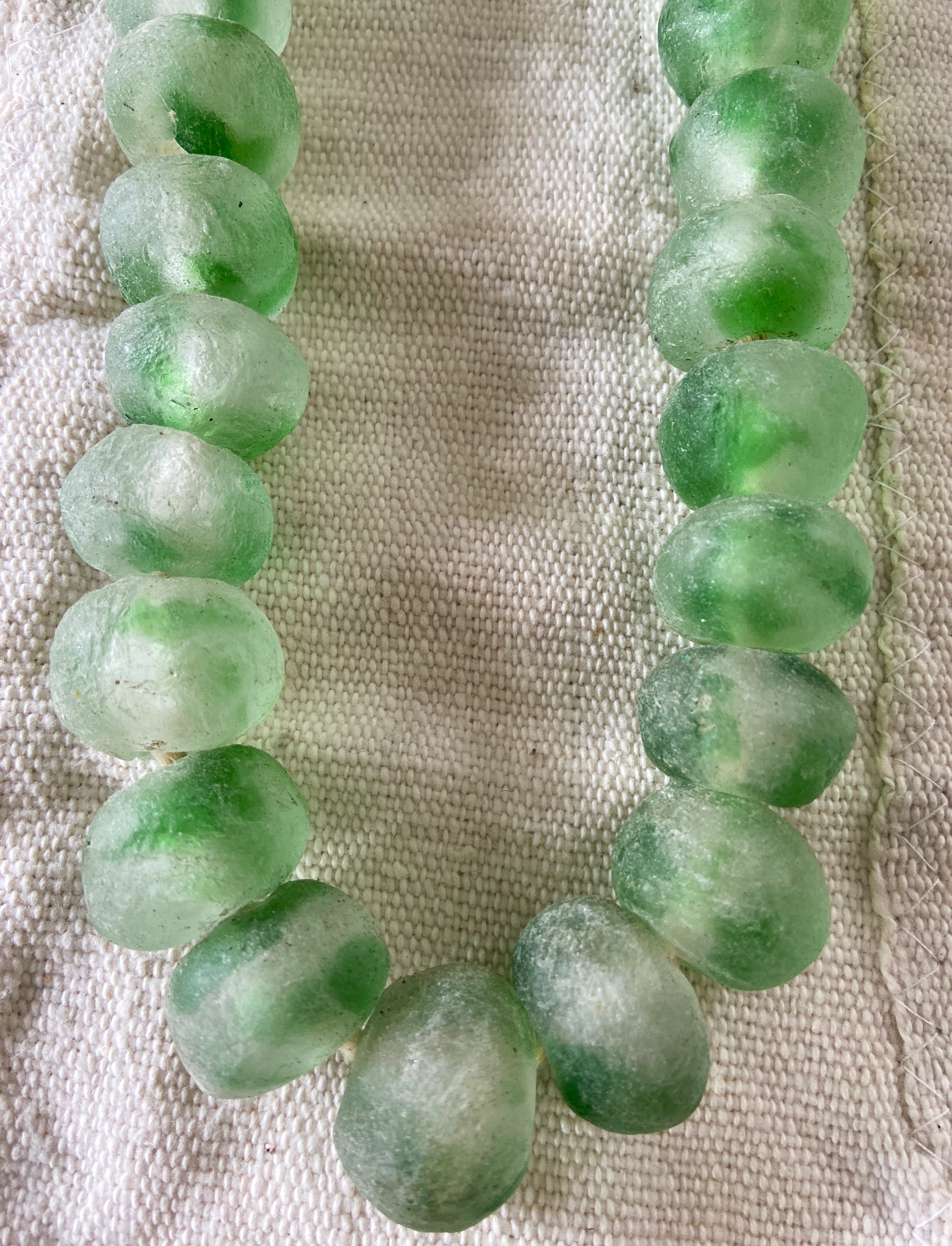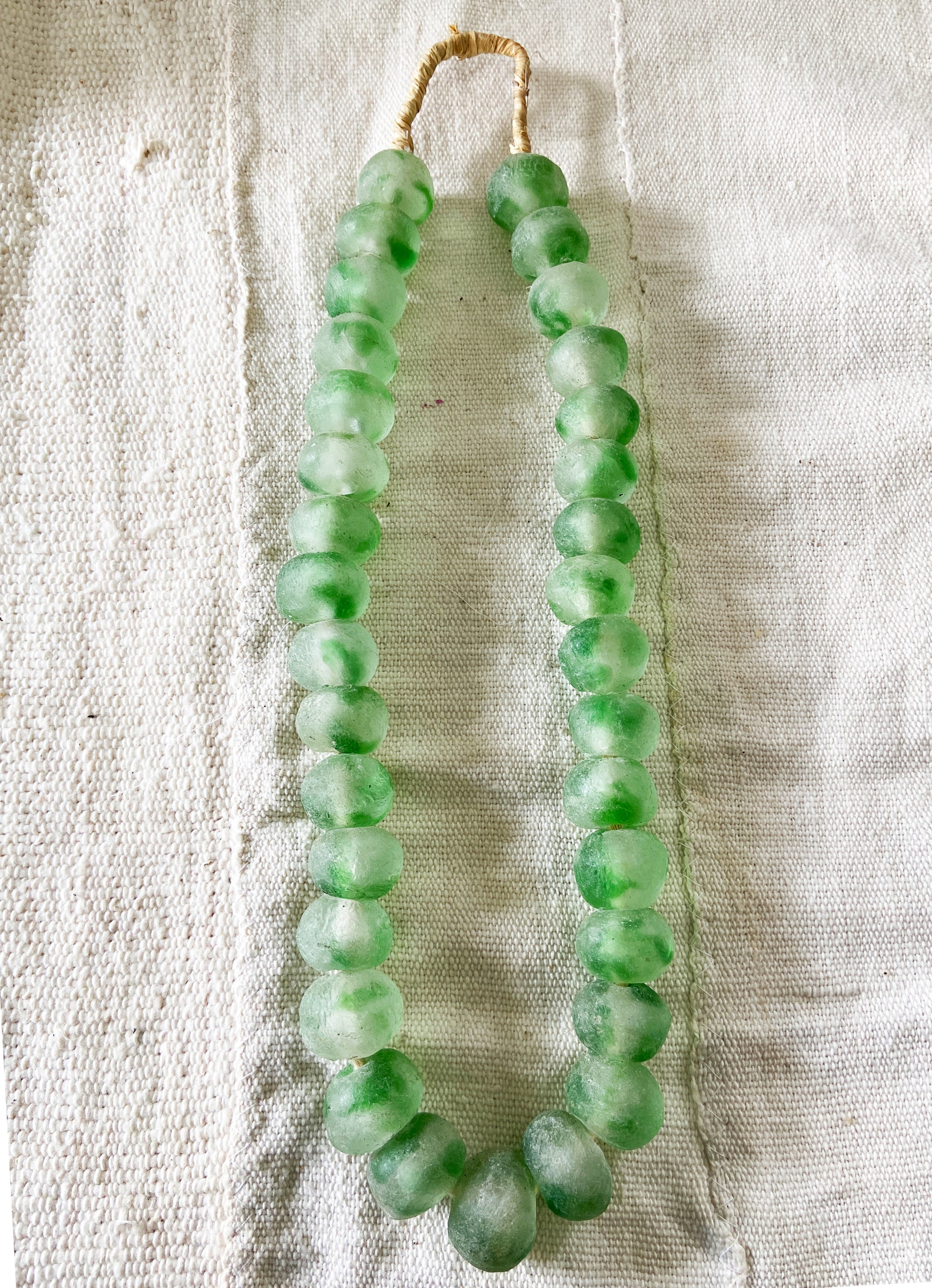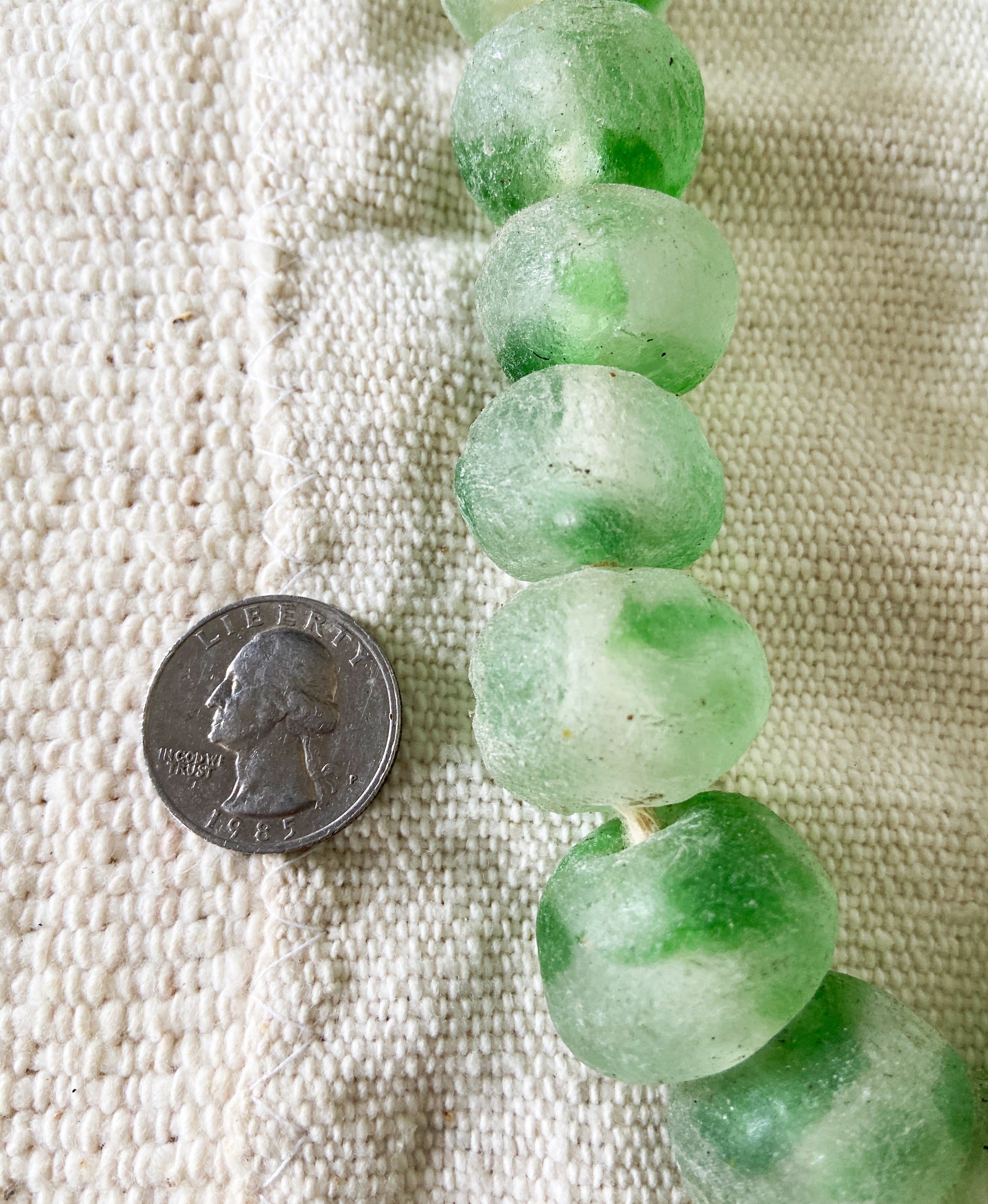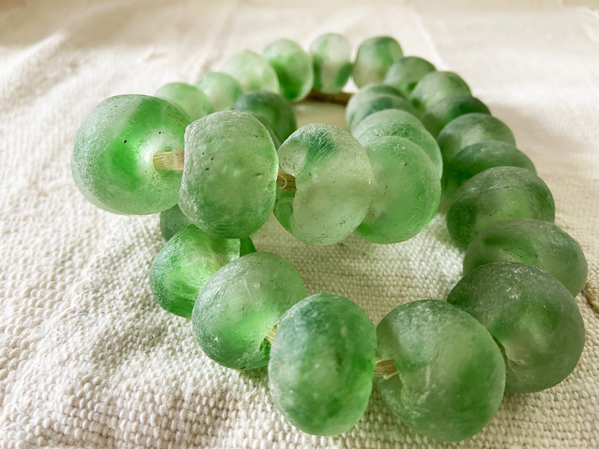 Superb String of African handmade jumbo trade Glass beads string, strung on hemp.