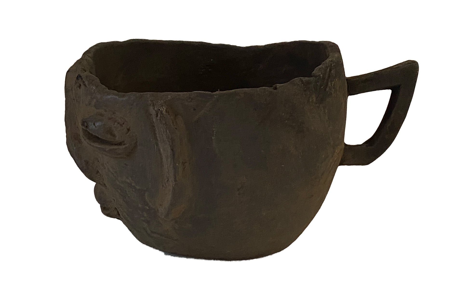#3745 African Kuba Wooden Cup Figural Head Congo 4" H