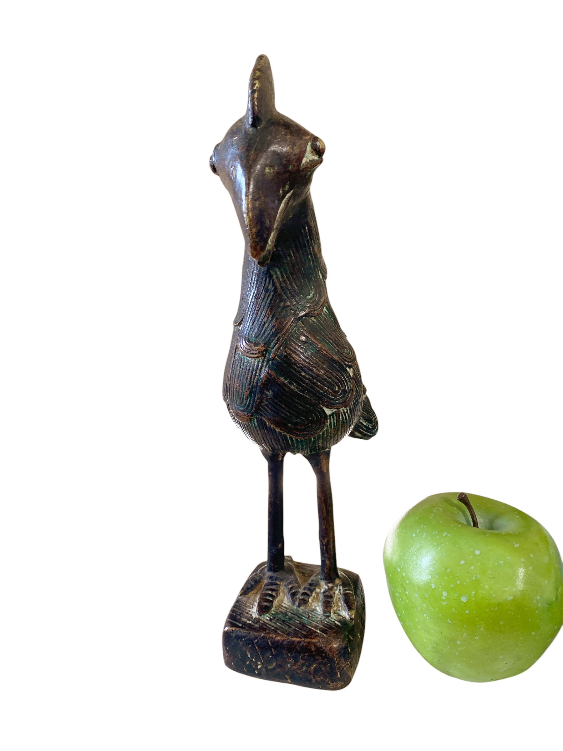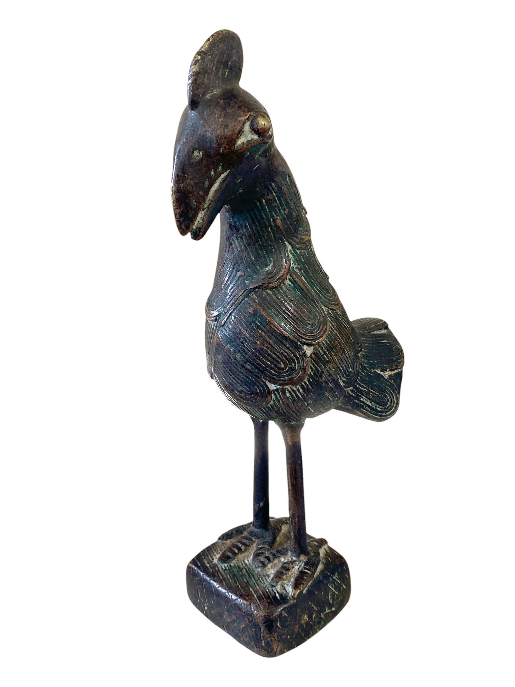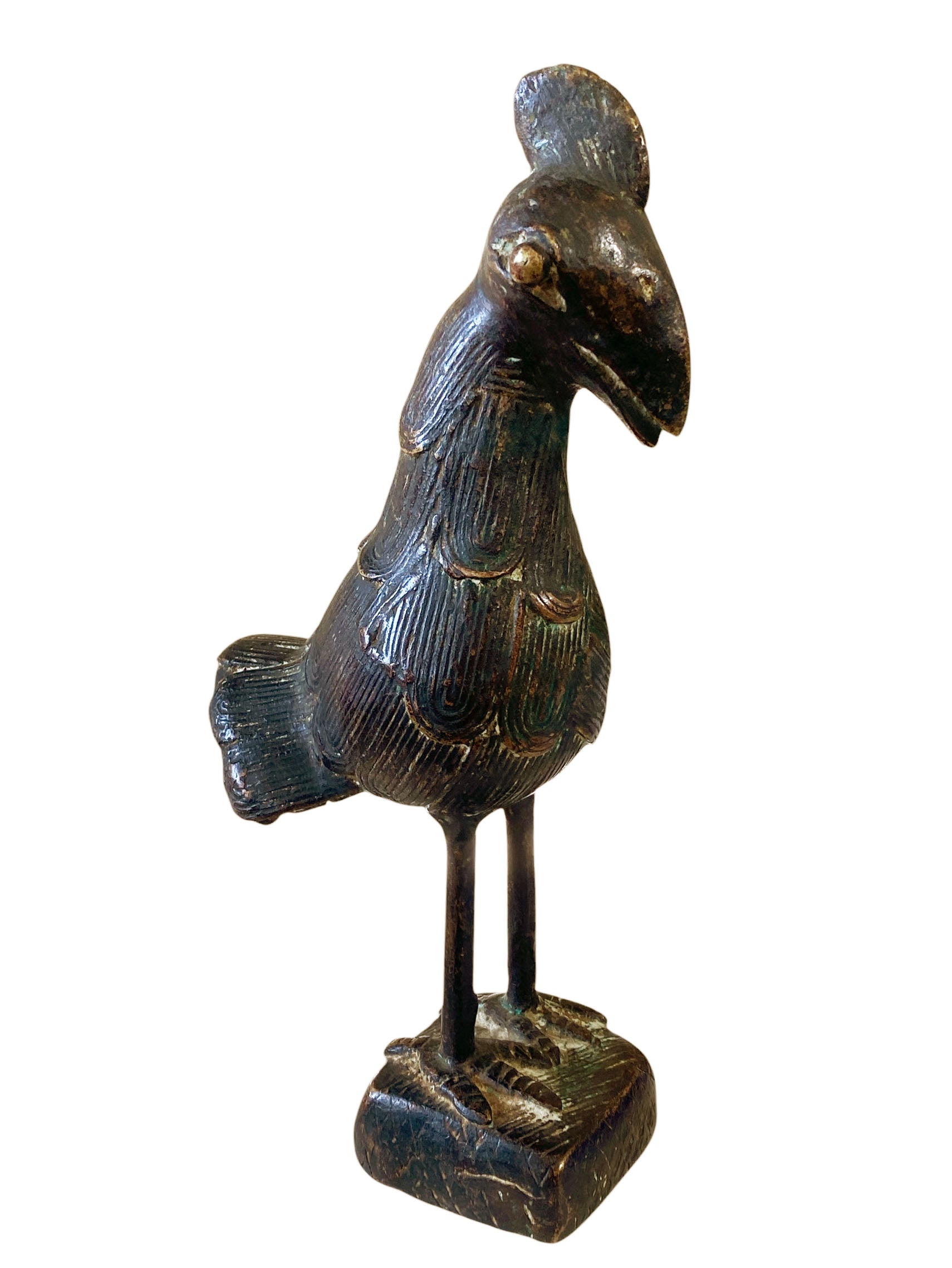 Superb Nigerian Benin bronze figure of a standing rooster made through the lost-wax casting technique , Creates one-of-a-kind originals, because the clay mold is destroyed after each casting.Amazing in person