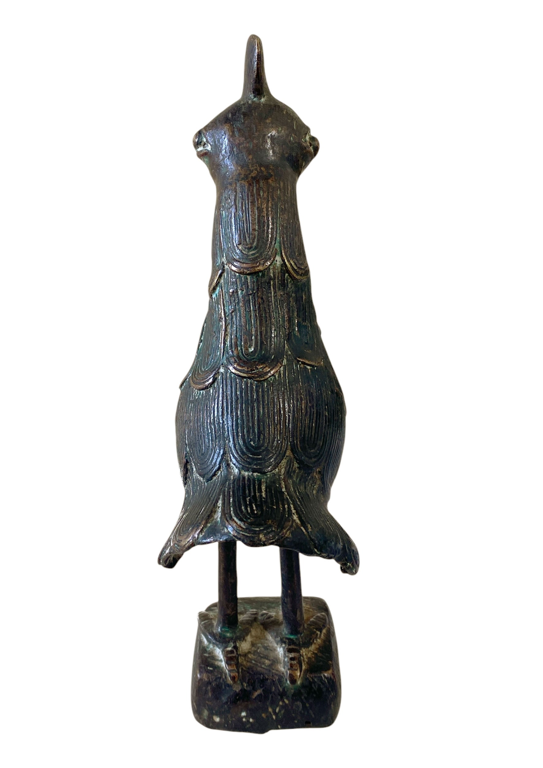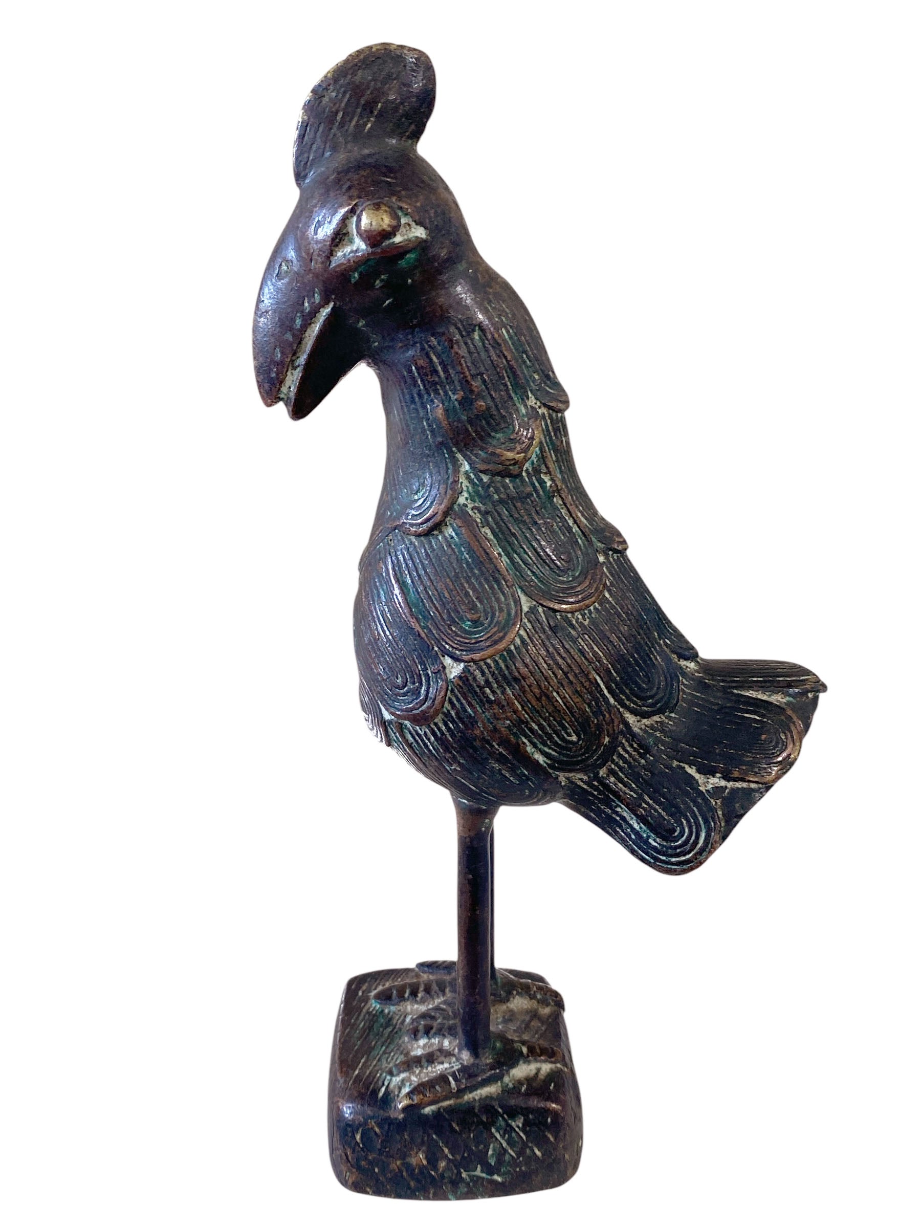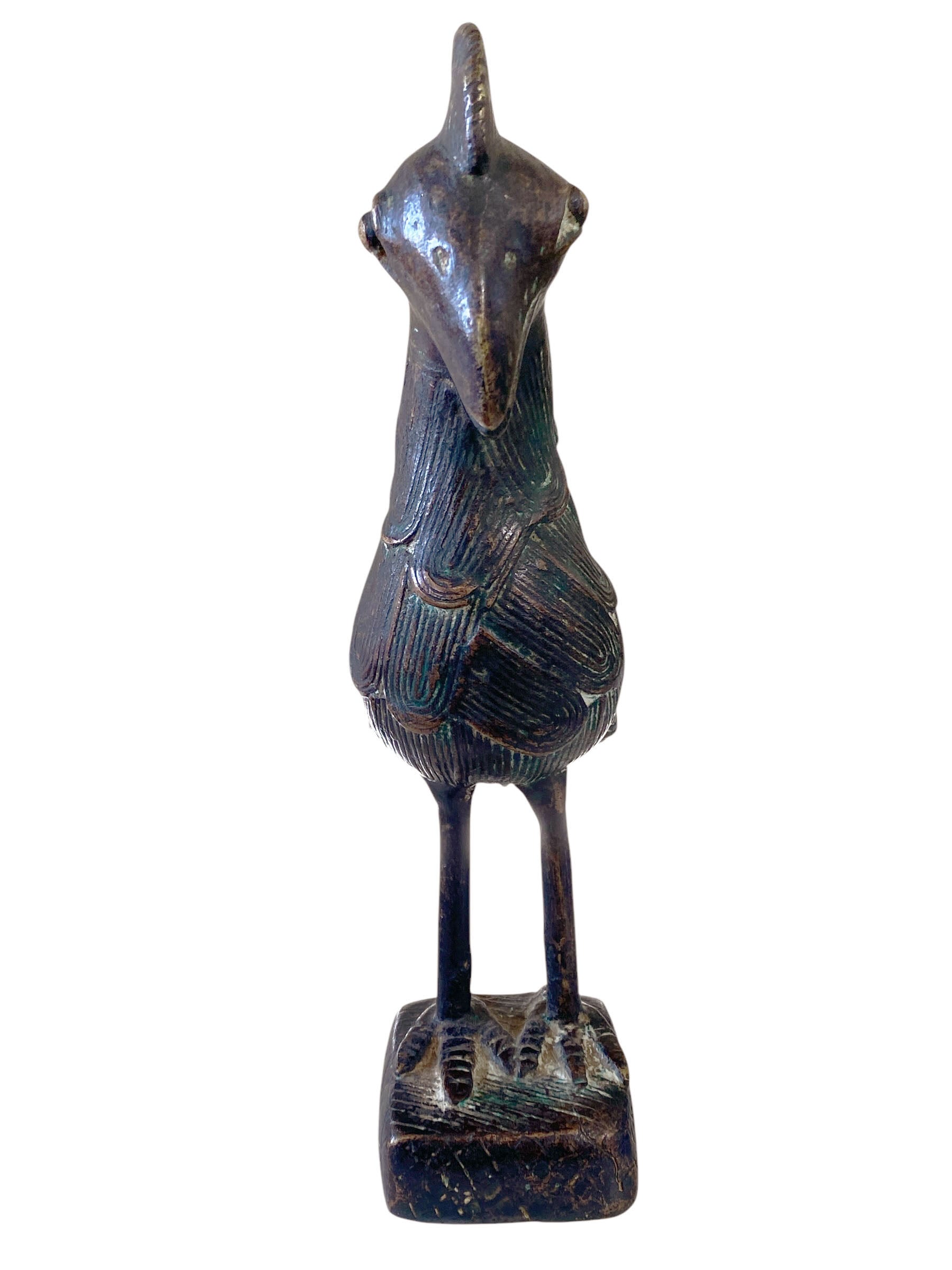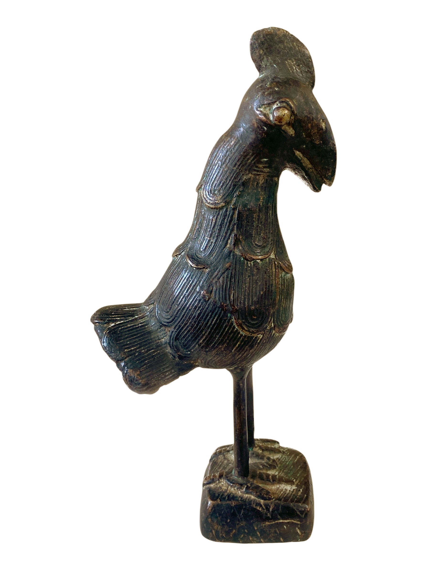 Superb Nigerian Benin bronze figure of a standing rooster made through the lost-wax casting technique , Creates one-of-a-kind originals, because the clay mold is destroyed after each casting.Amazing in person