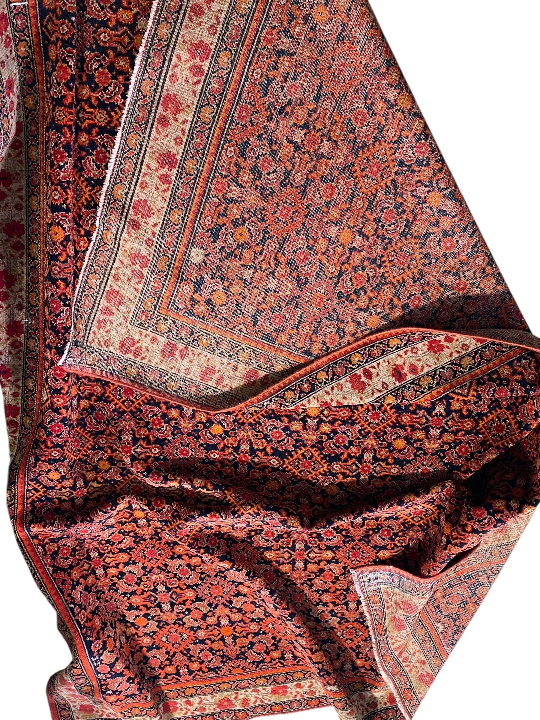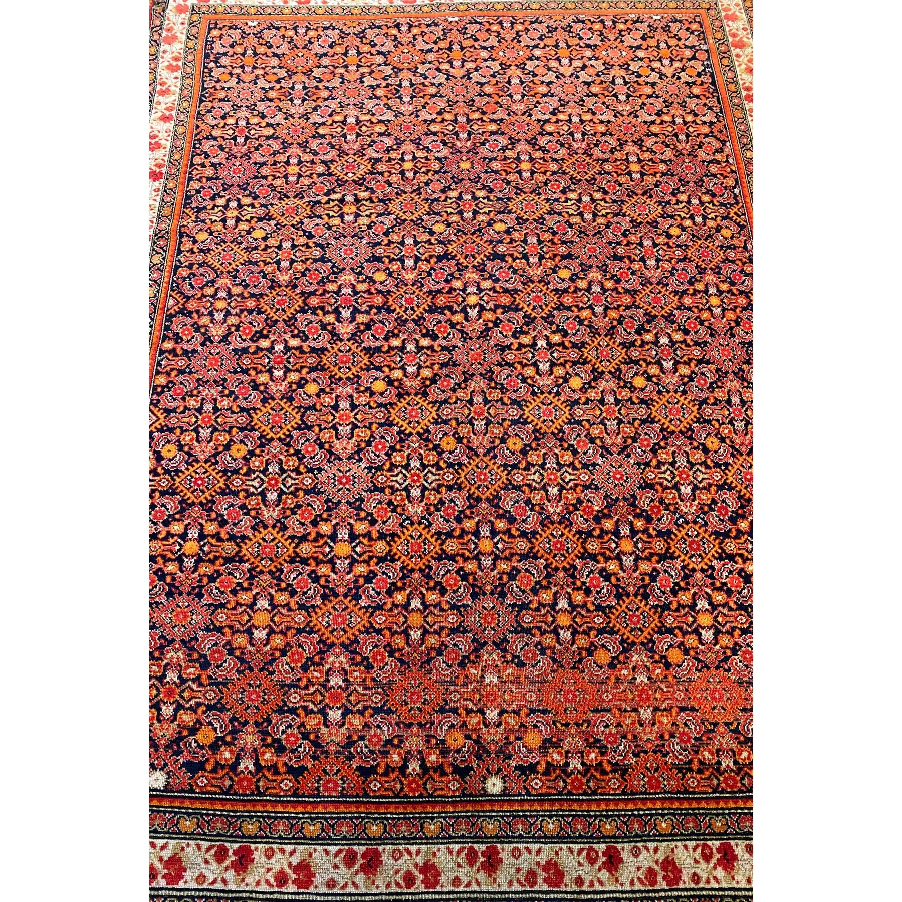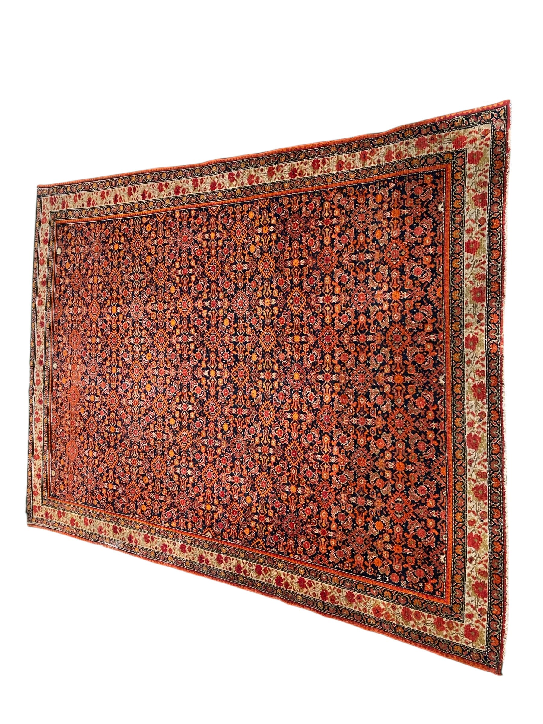 Superb antique hand made Fereghan carpet with delicate all over design with 'Herati’ pattern, this Fereghan carpet from central Persia paints an elegant lattice rendering of rosettes, palmettes and foliage in a diverse array of jewel-like tones,against a deep indigo ground, which is punctuated by restrained and deliberate highlights of white, the pictures don't show the beauty of the carpet.77.5" by 57"