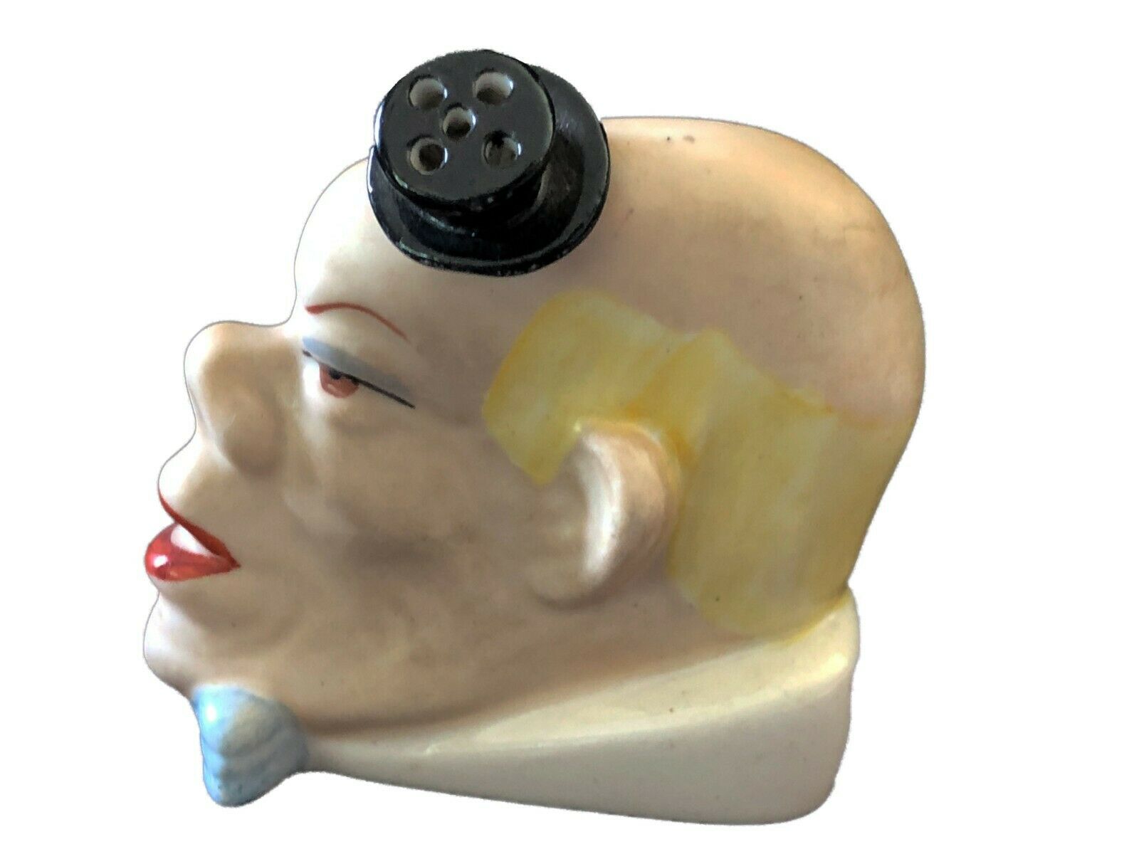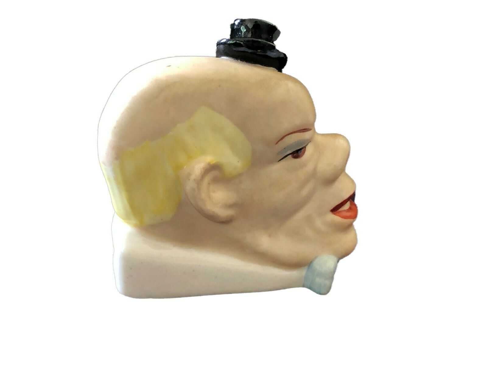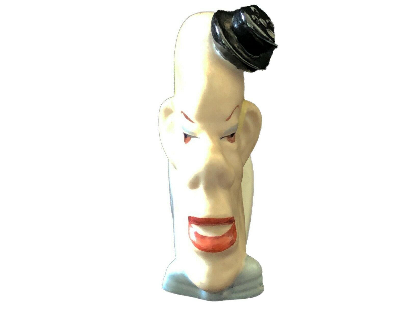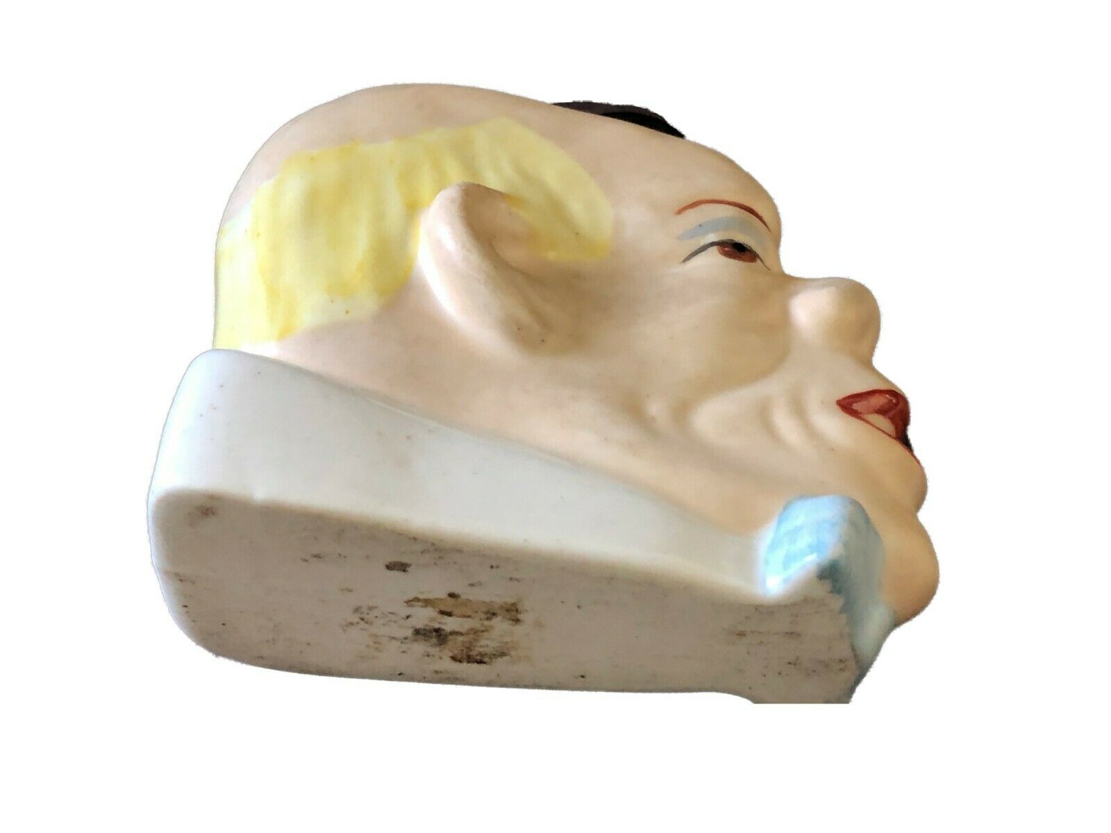 #185 Antique German Porcelain Bisque Clown ToothPick Matchstick Holder 3" H