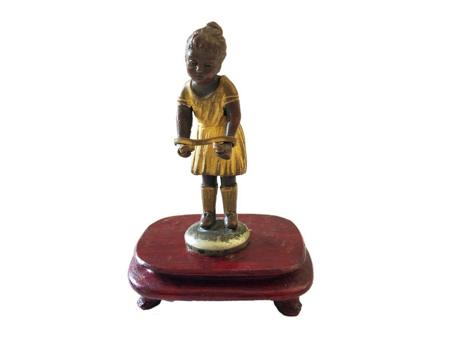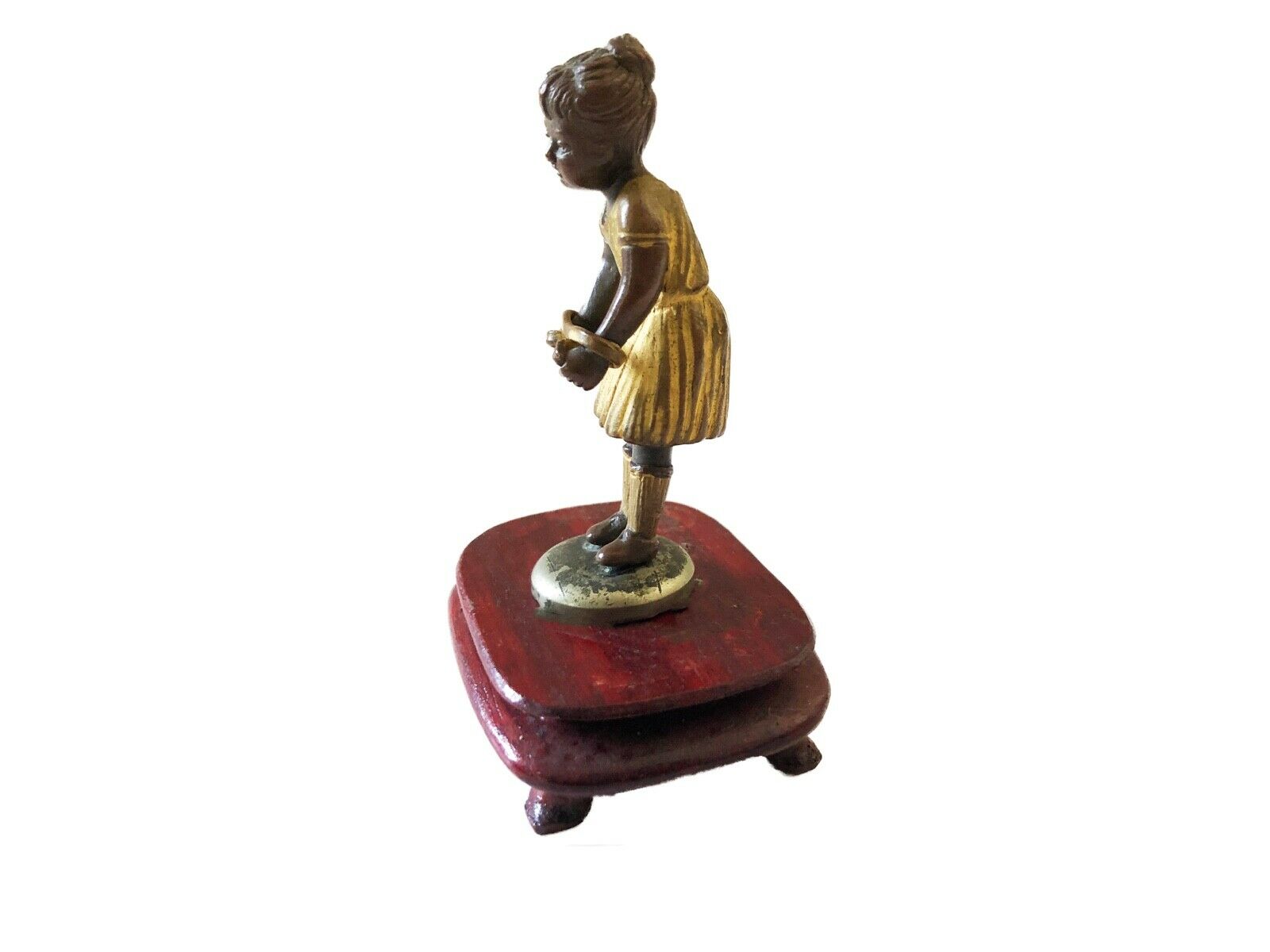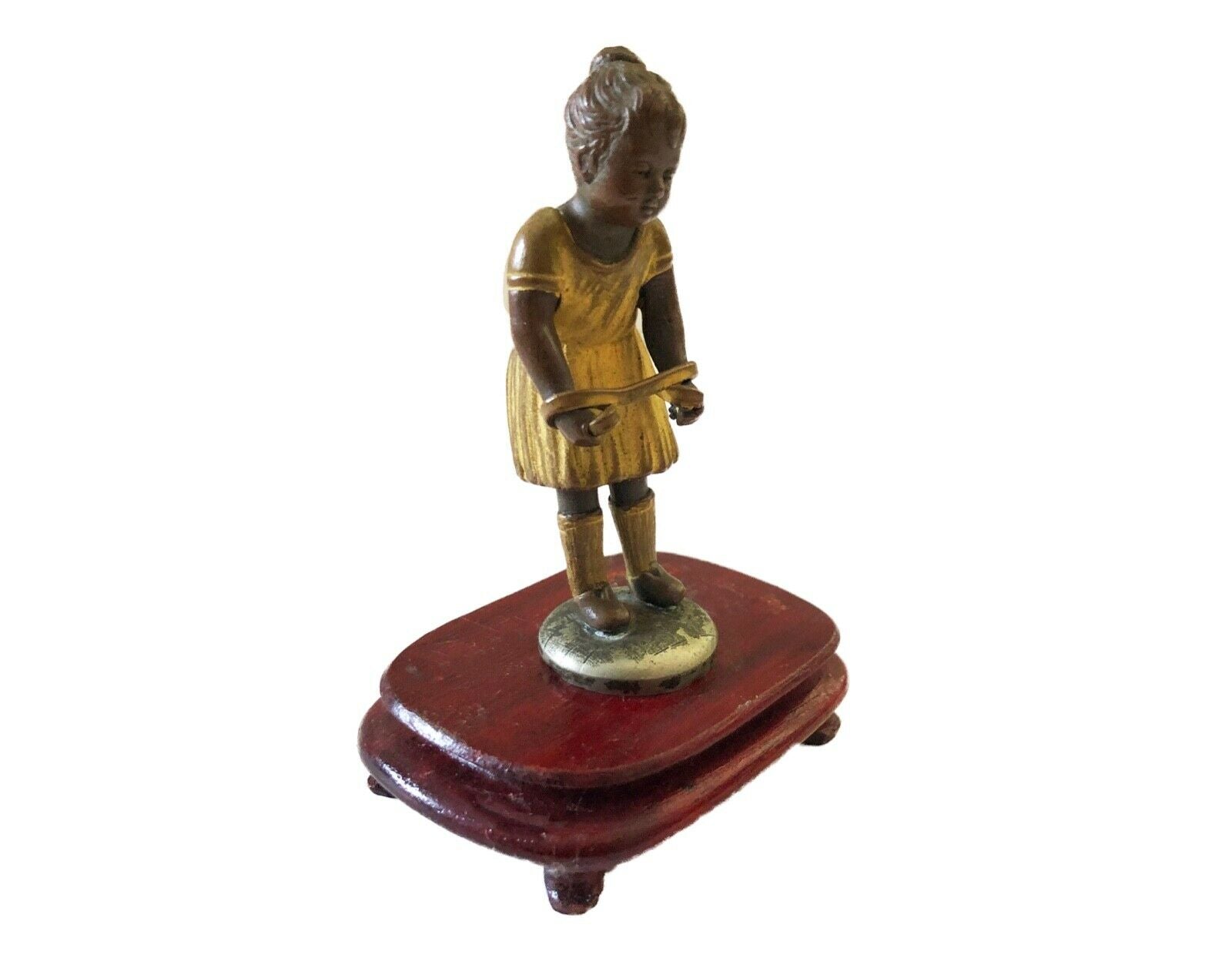 Stunning AUSTRIAN BRONZE FIGURE of a young girl with a rope on a wood stand