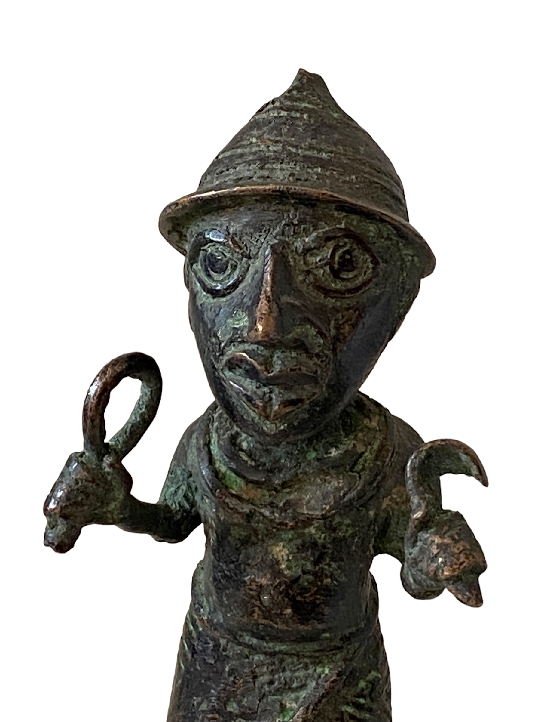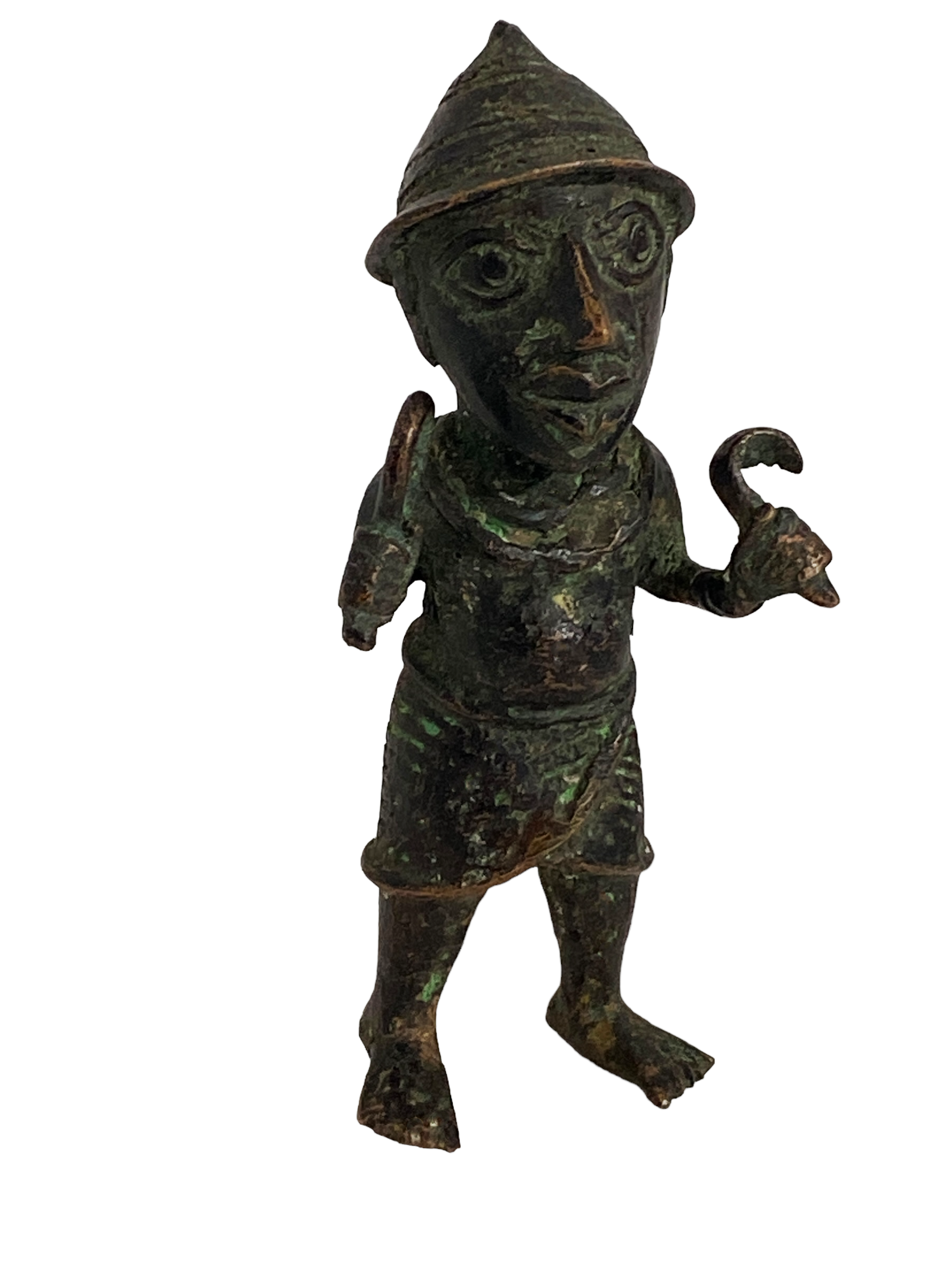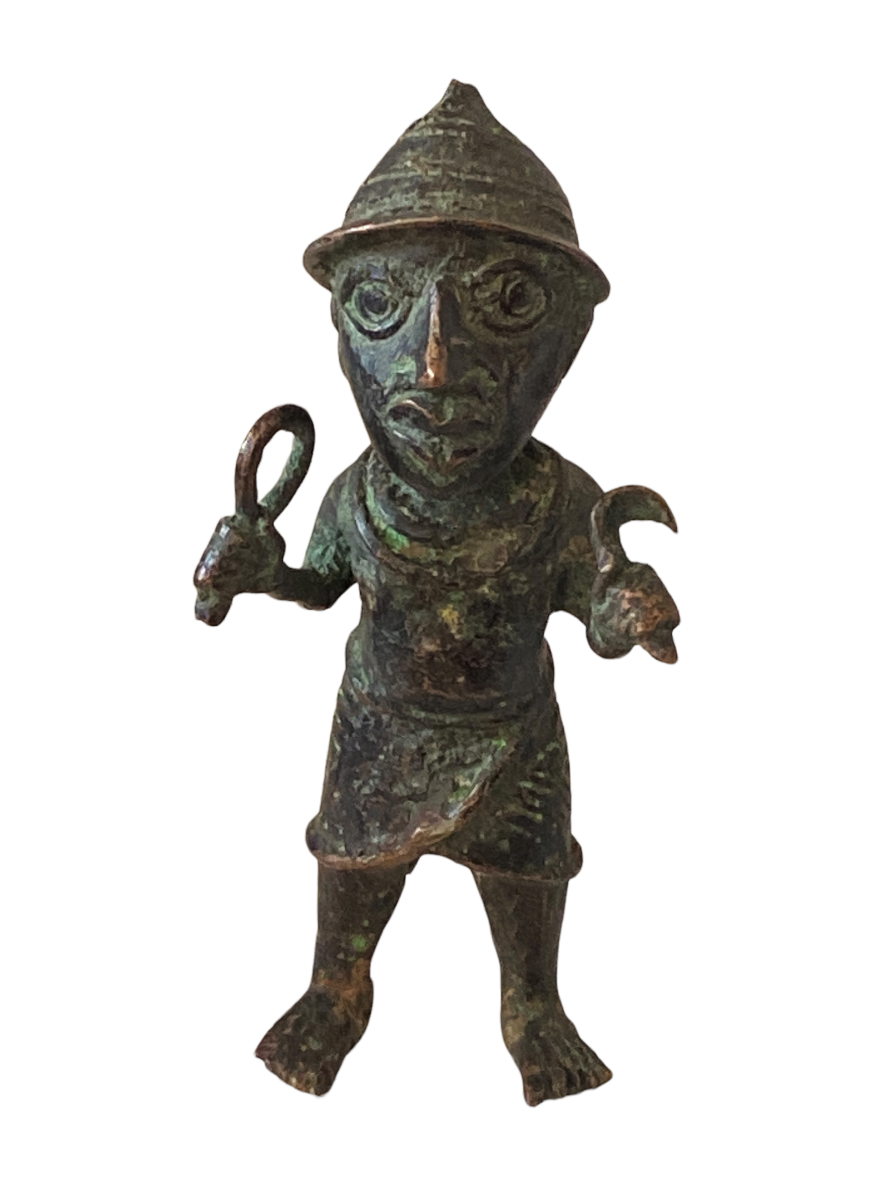 #5069 Benin Bronze Oba King Soldier Nigeria African 6.25 " H