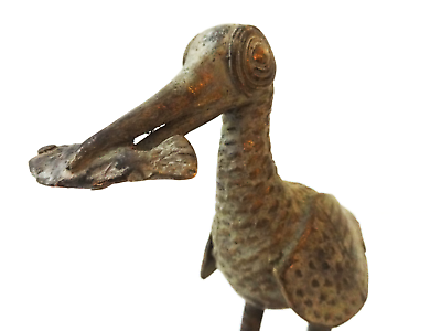 Superb Cast solid Bronze African Tribal / Ashanti Akan sculpture of a standing bird with a fish I.Coast