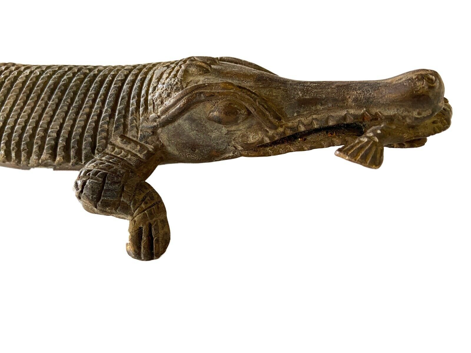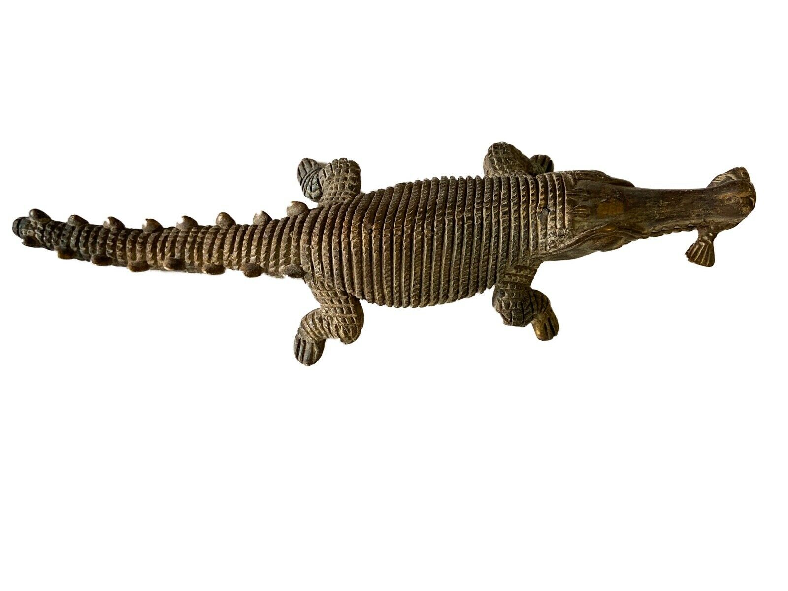 #1 Bronze AfricanTribal/ Ashanti Akan Of a CROCODILE I Coast 1.75" h by 11.25" w