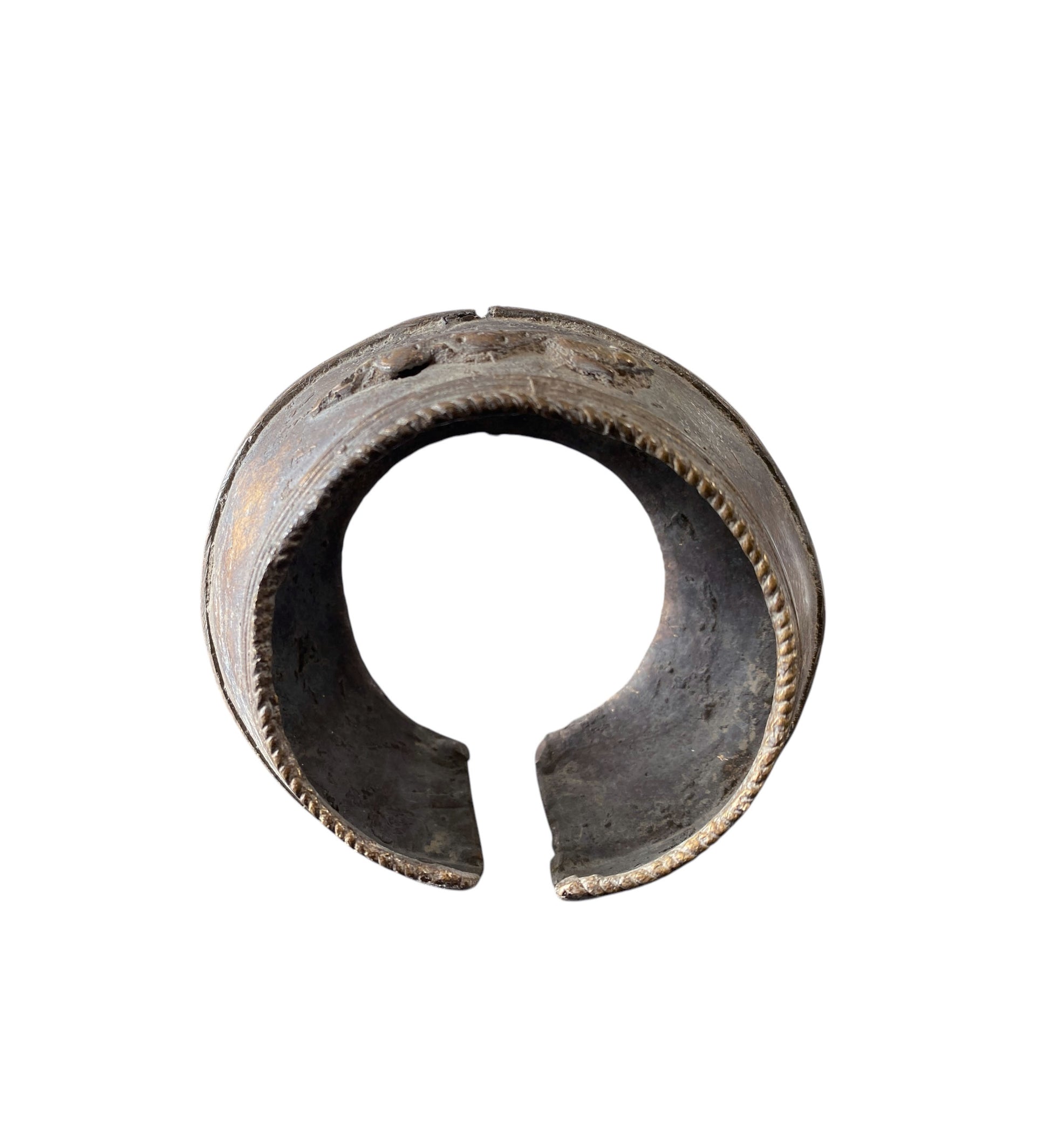 #2993 Exquisite Vintage Bronze Bracelet Gan Burkina Faso w/Snaks 6" H by 4.5" w