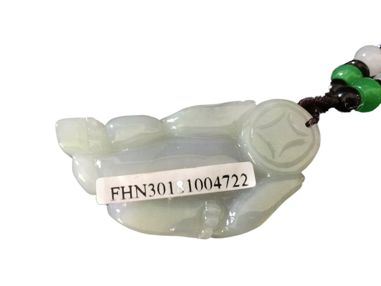 #1799 Jadeite Jade Carved PIXIU Wealth Figure Necklace