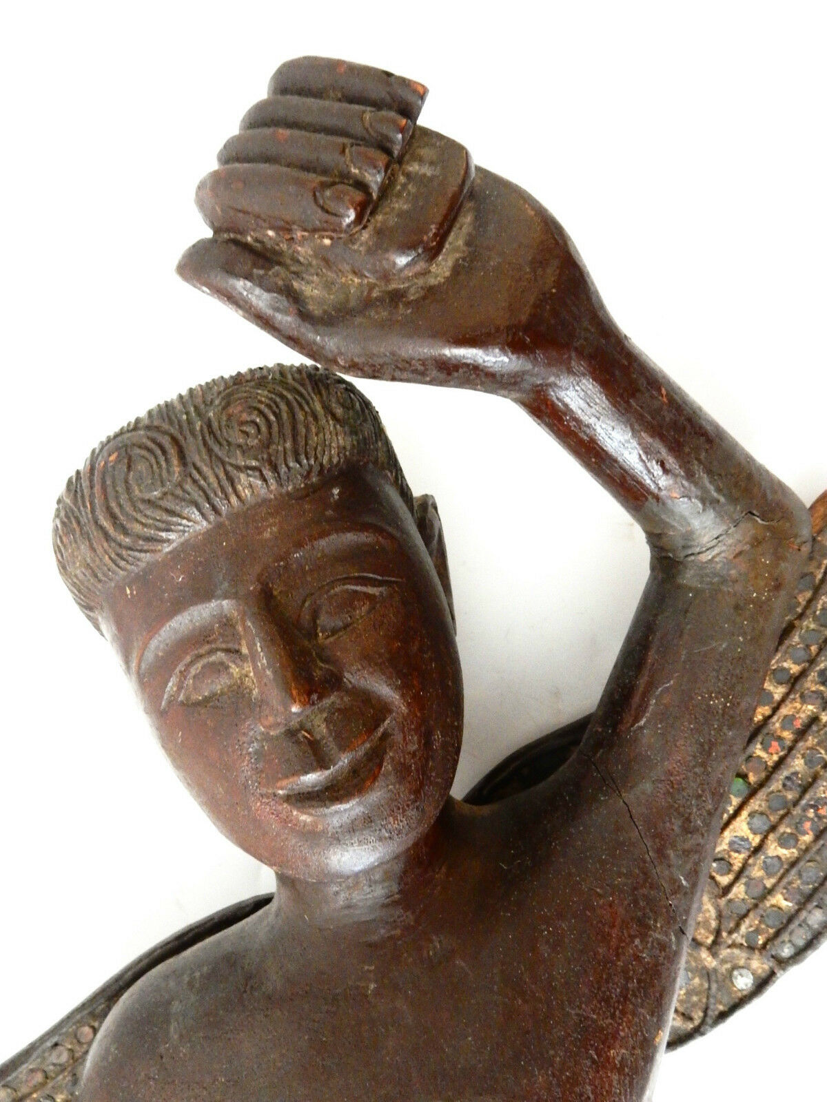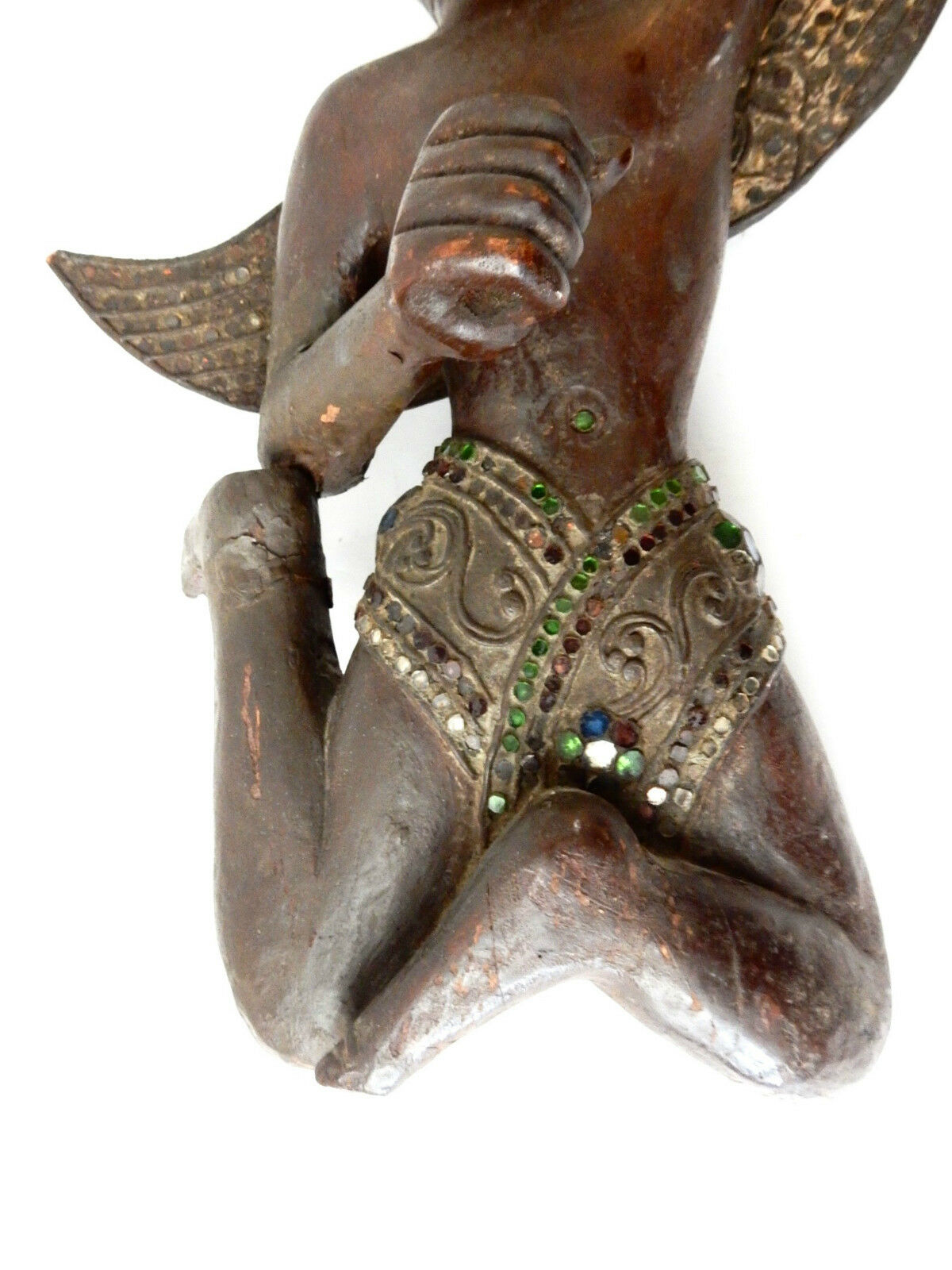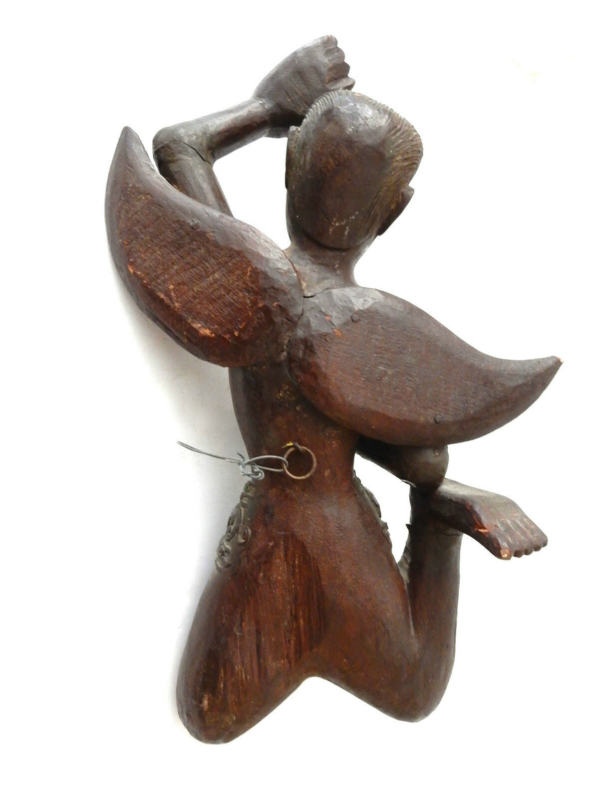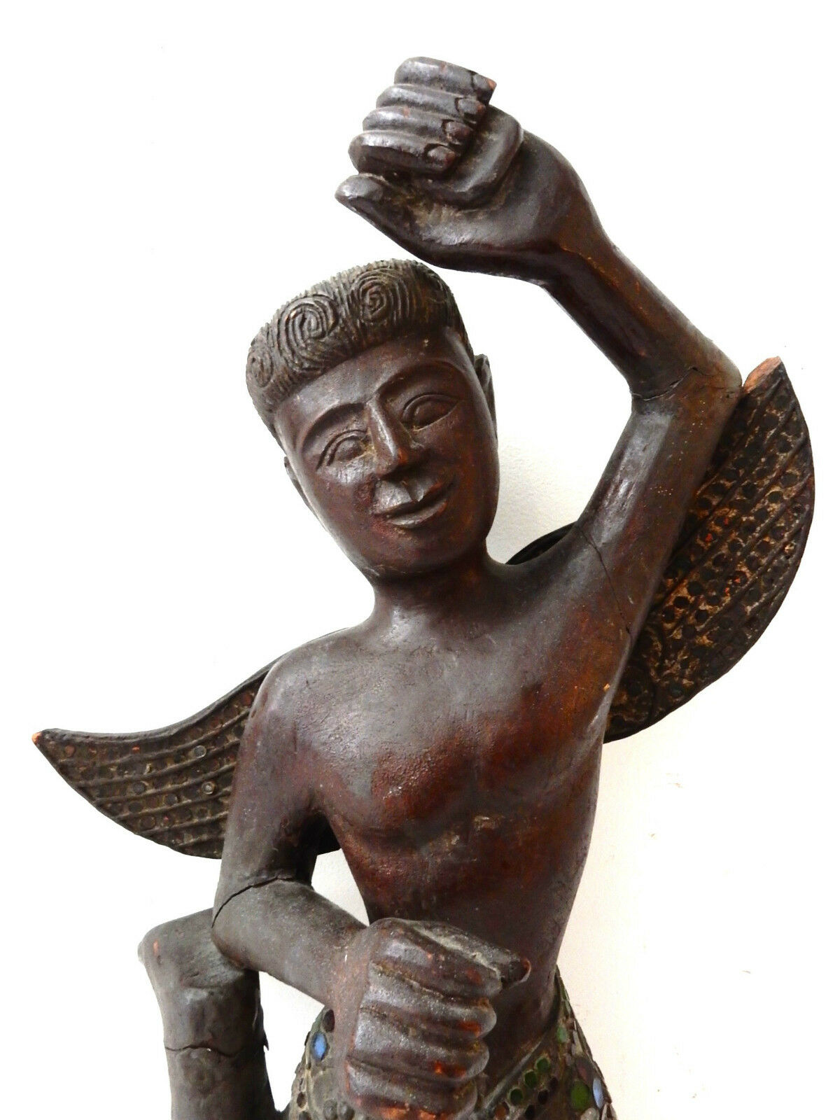 Superb and rare large antique 19th century hand carved of solid wood thai winged figure of a angel