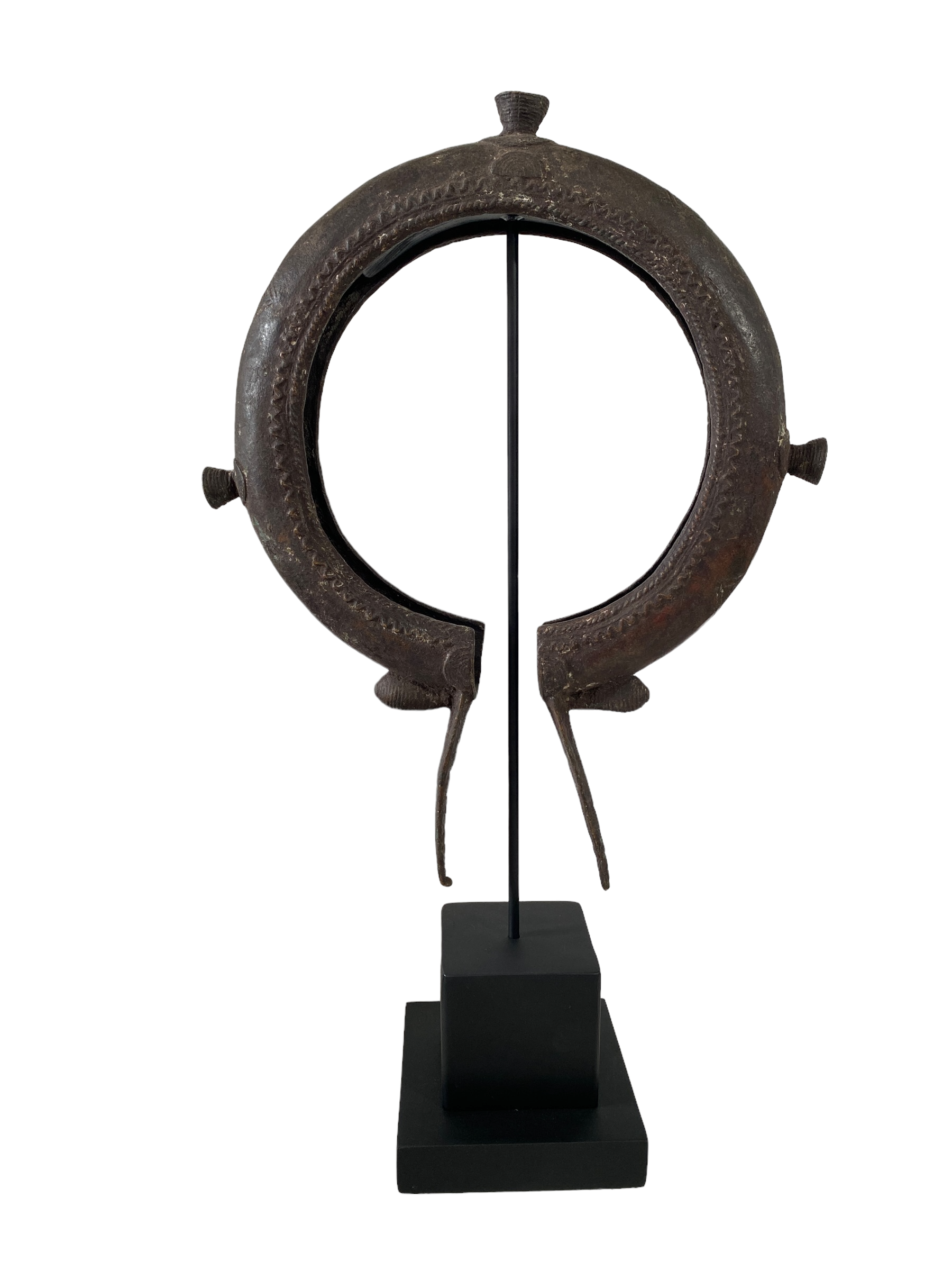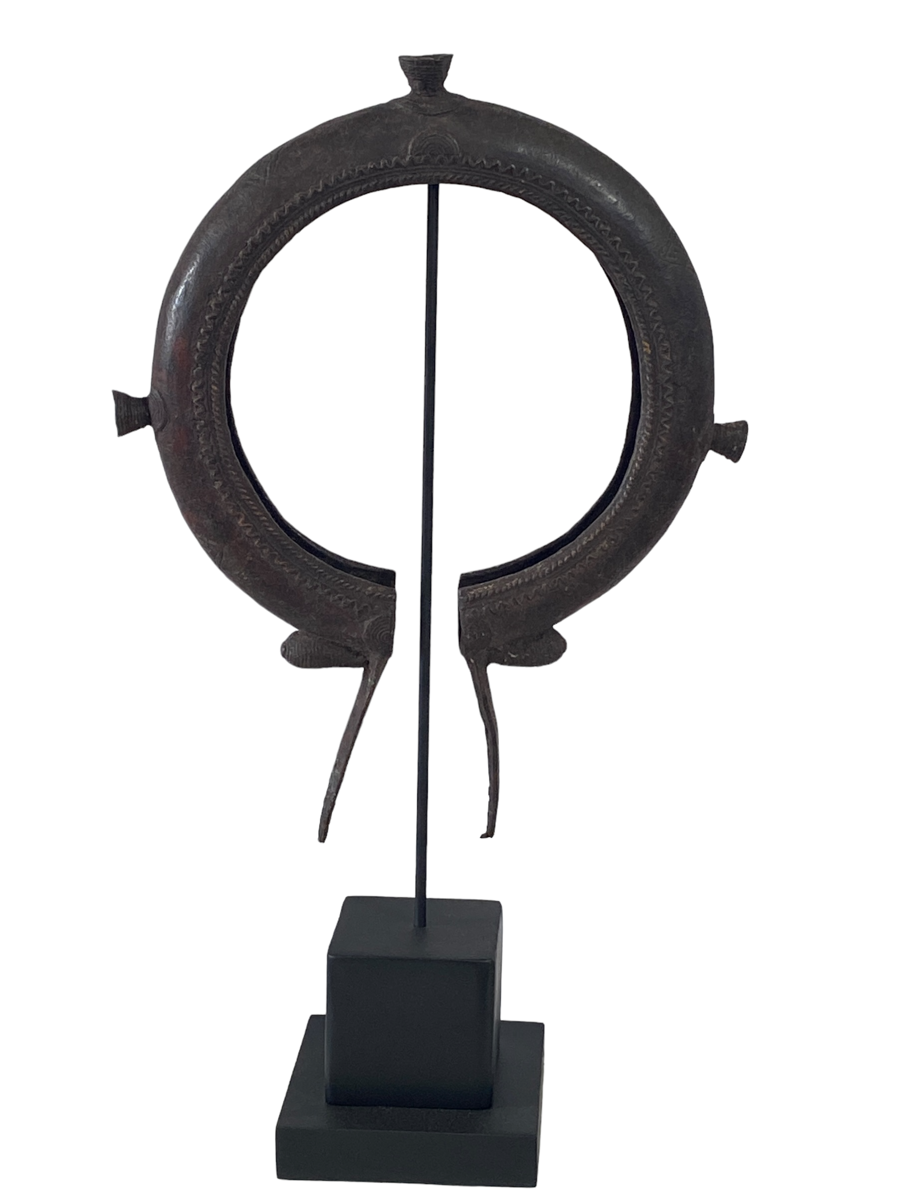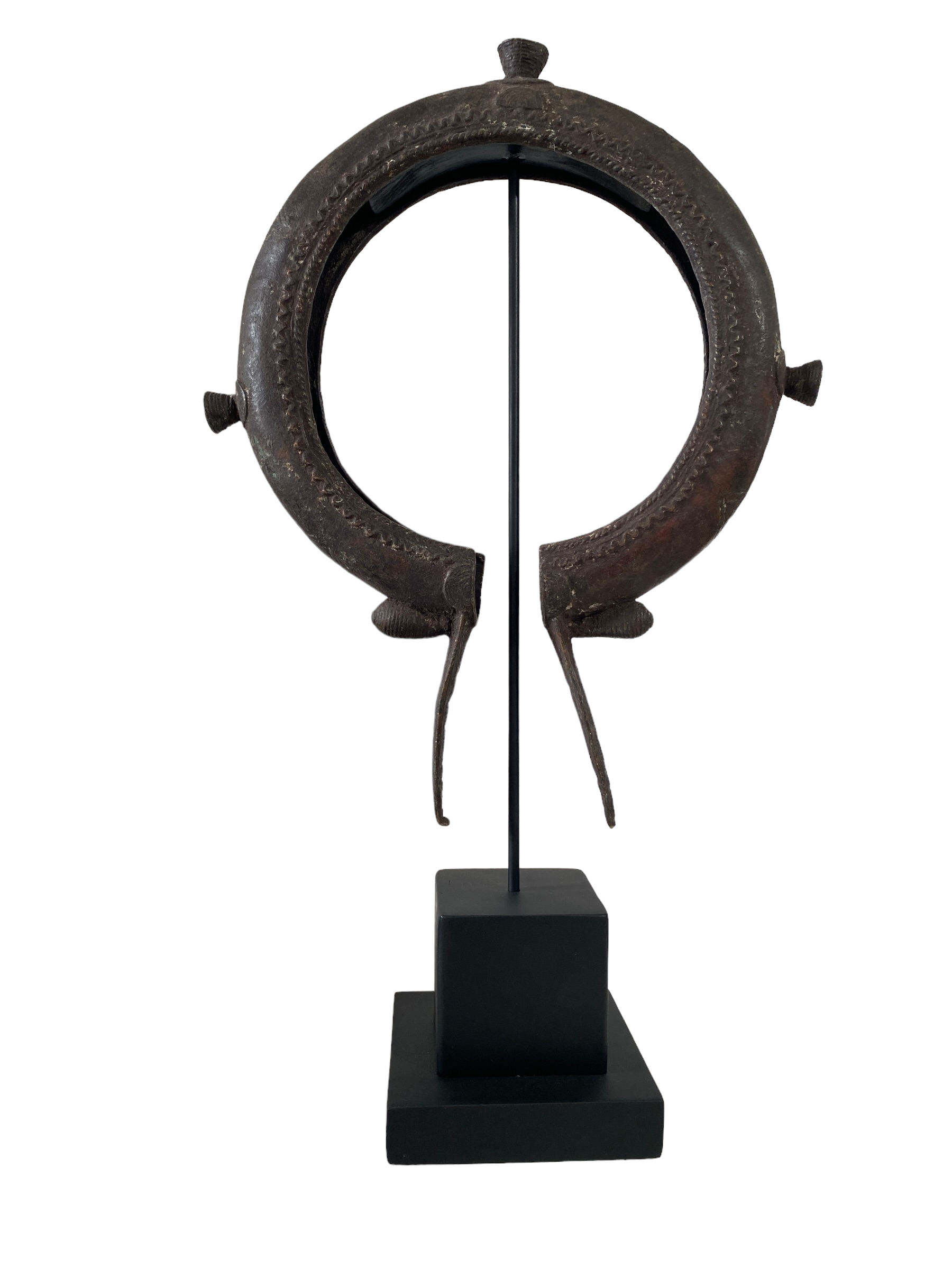 #4949 LG African Old Tikar People Currency Bracelet Cameroon 22.25" h w/stand