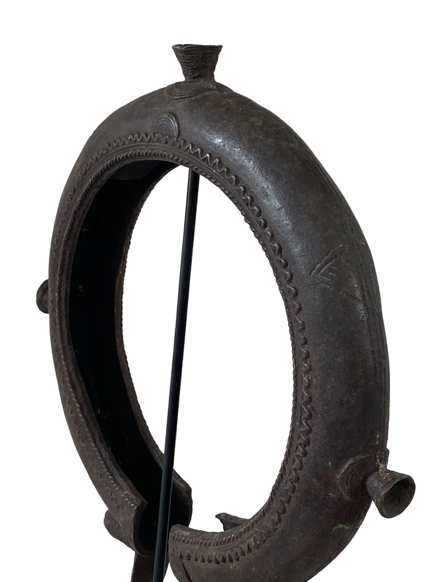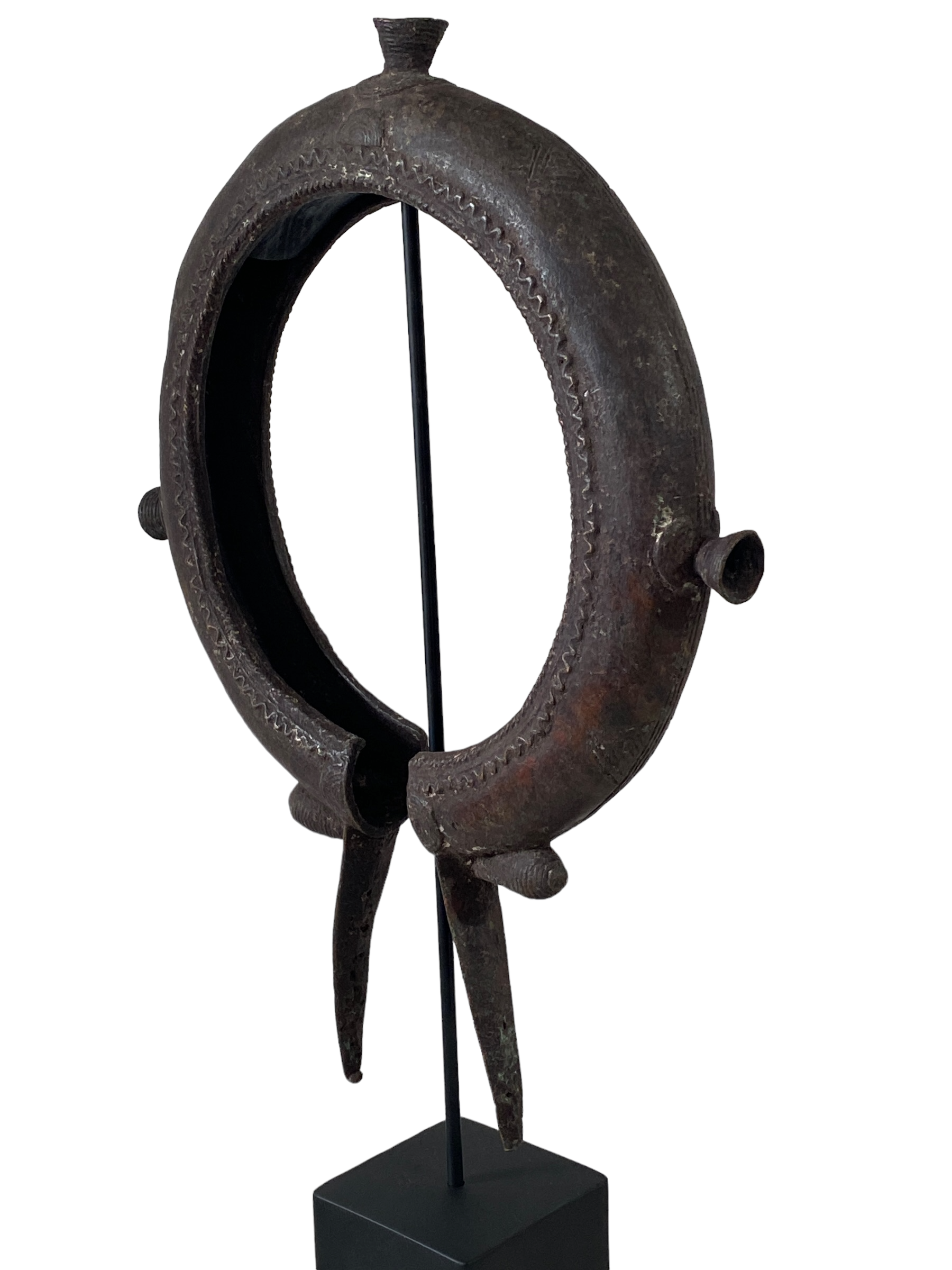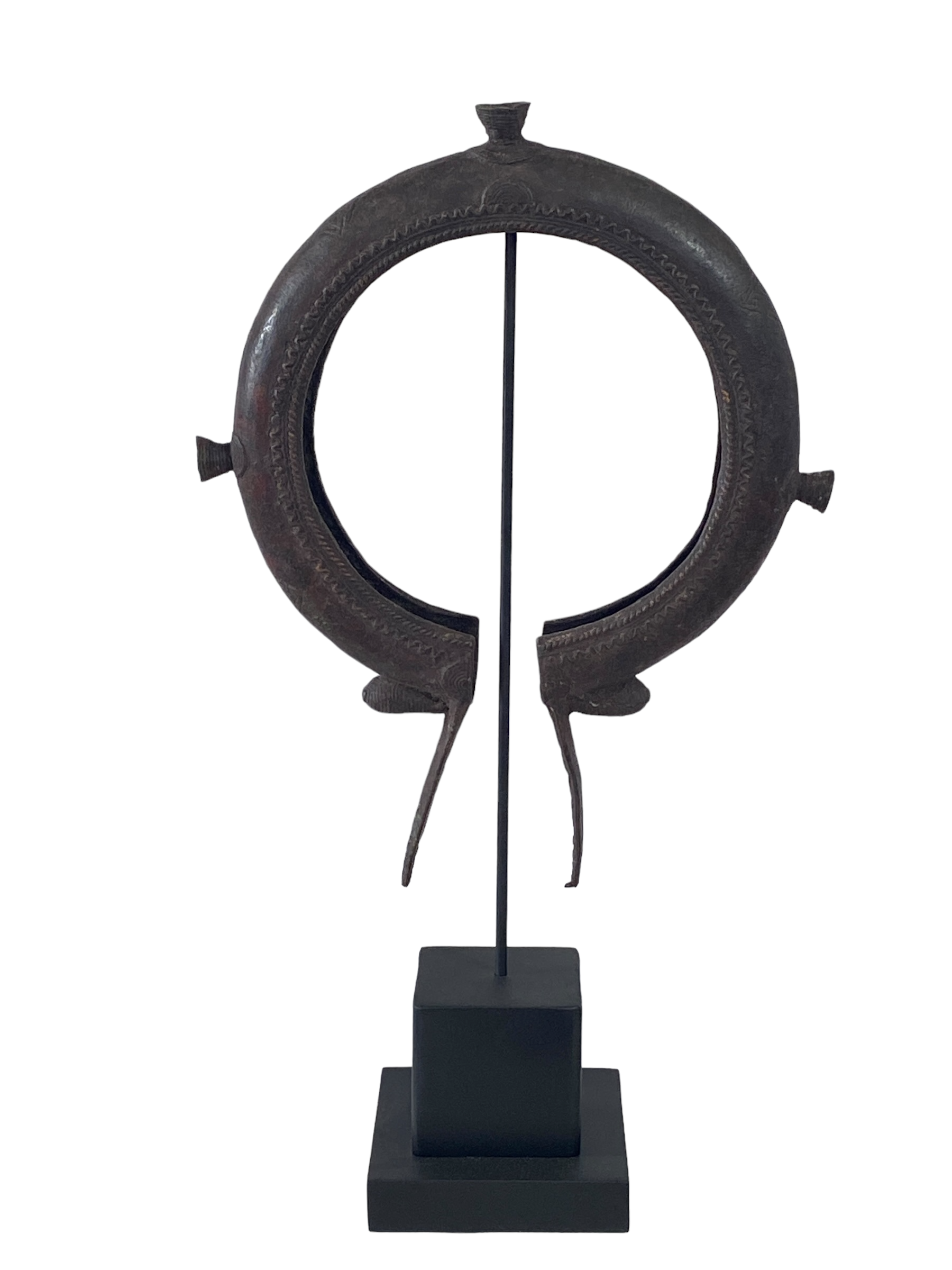 #4949 LG African Old Tikar People Currency Bracelet Cameroon 22.25" h w/stand