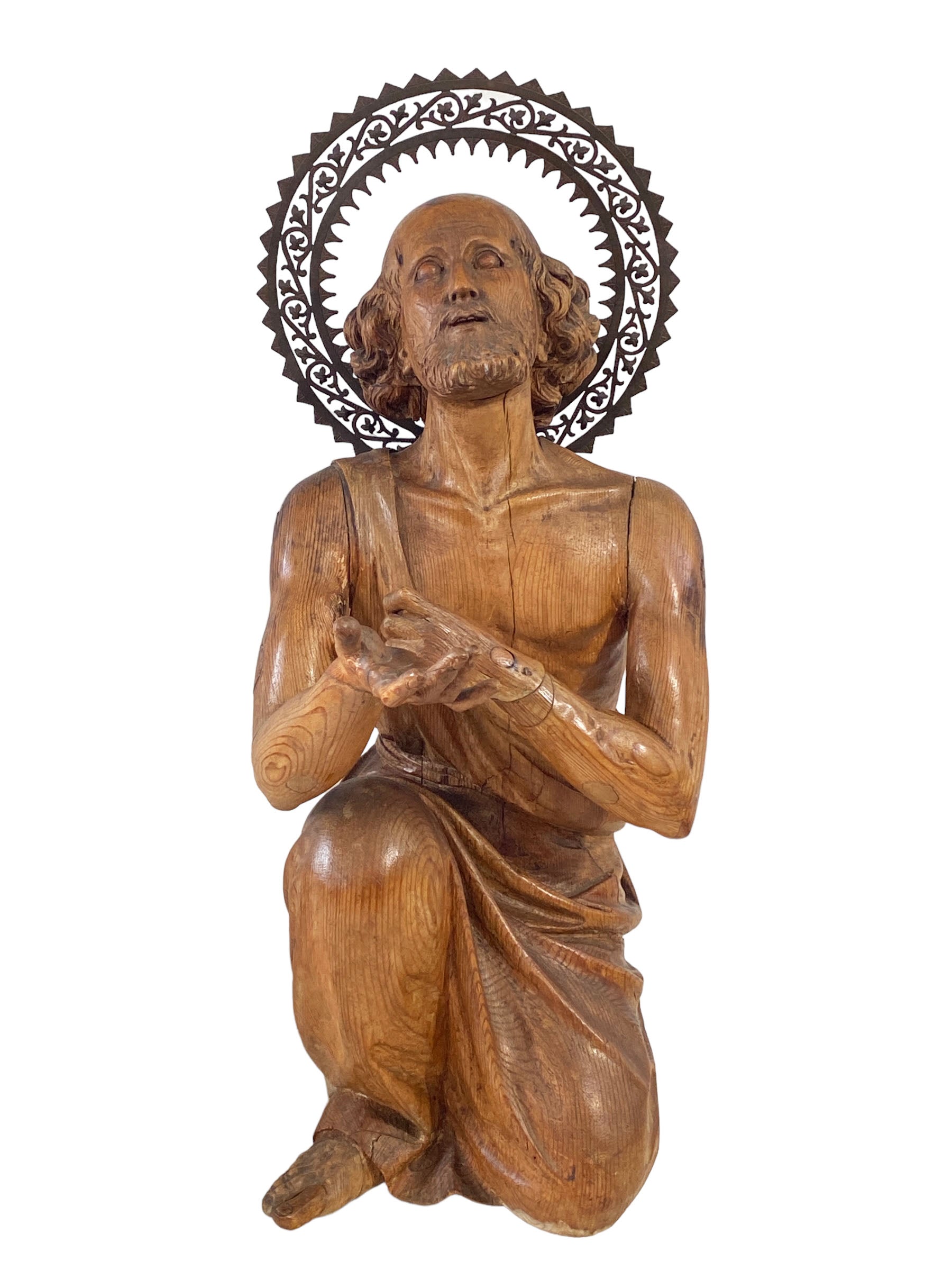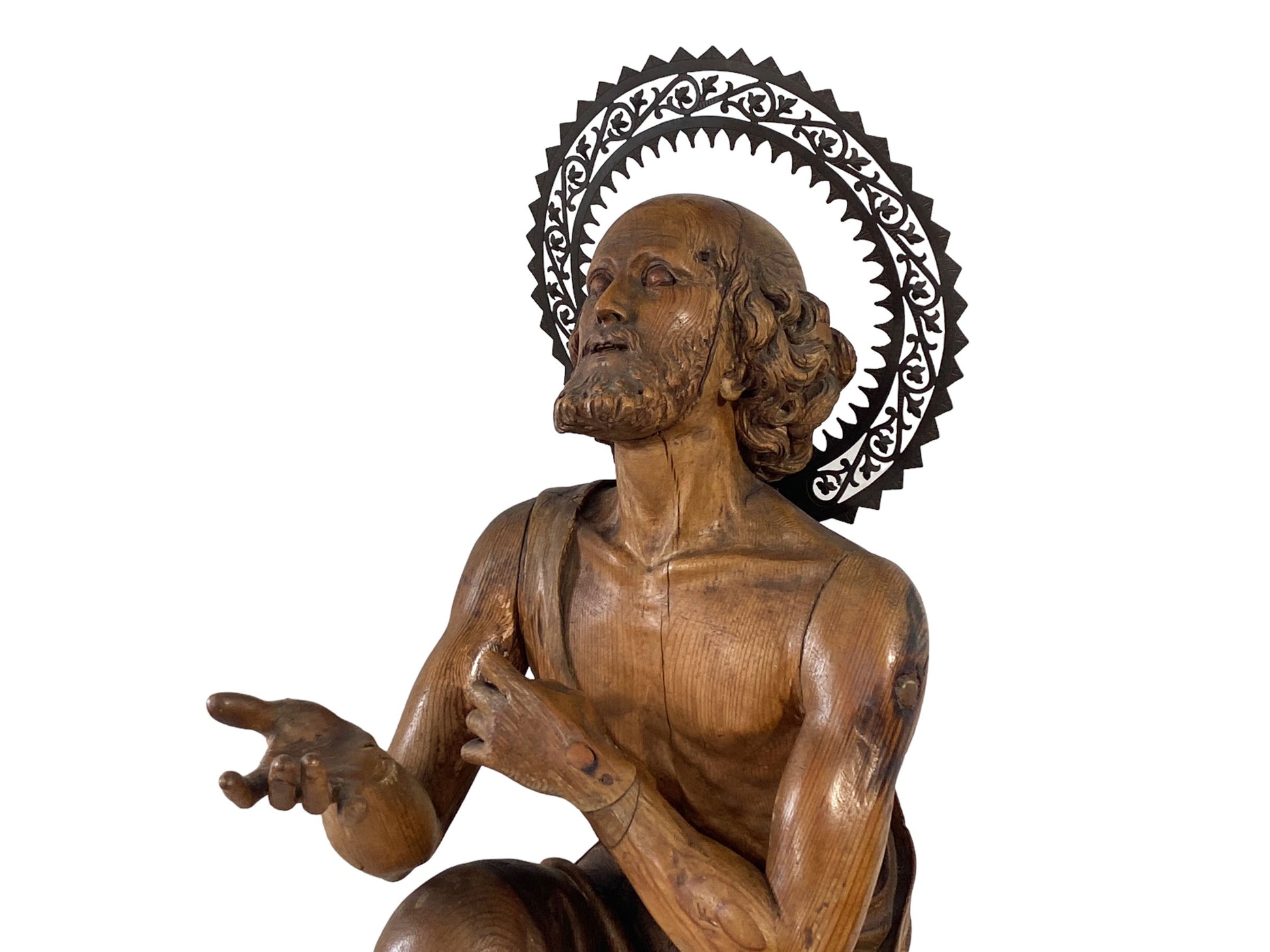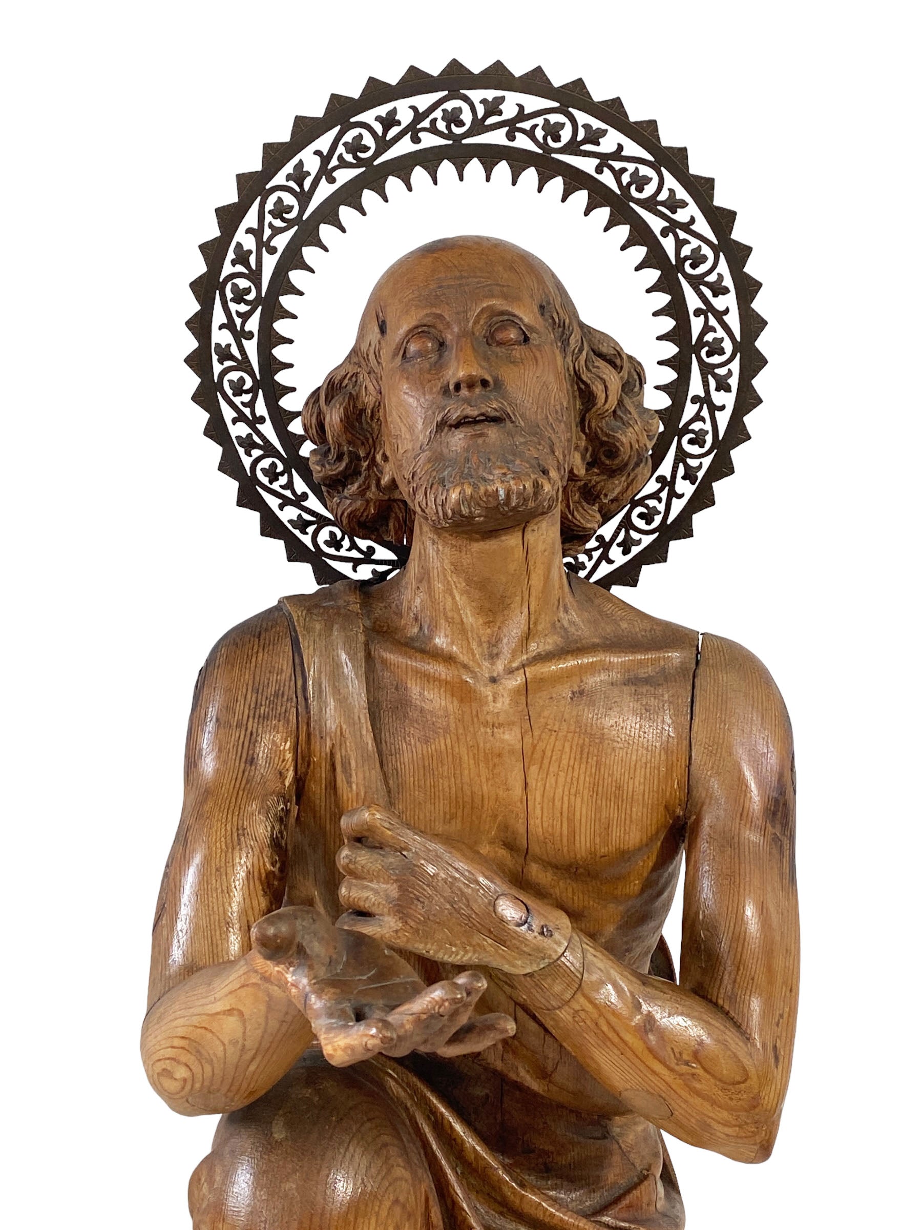 #5602 LG Museum Quality European Hand Carved Wood 18th C Santos ST Geronimo 27" H