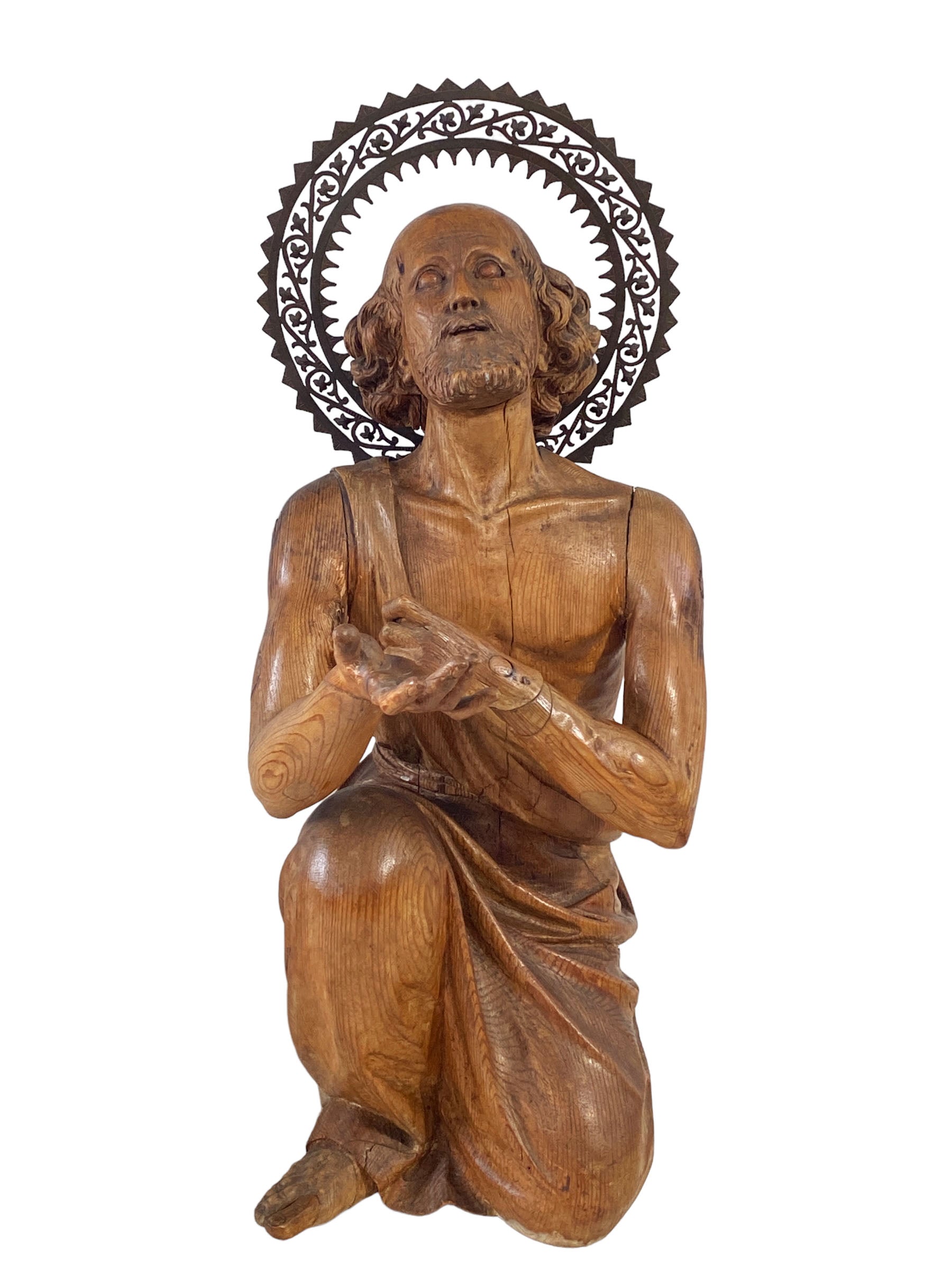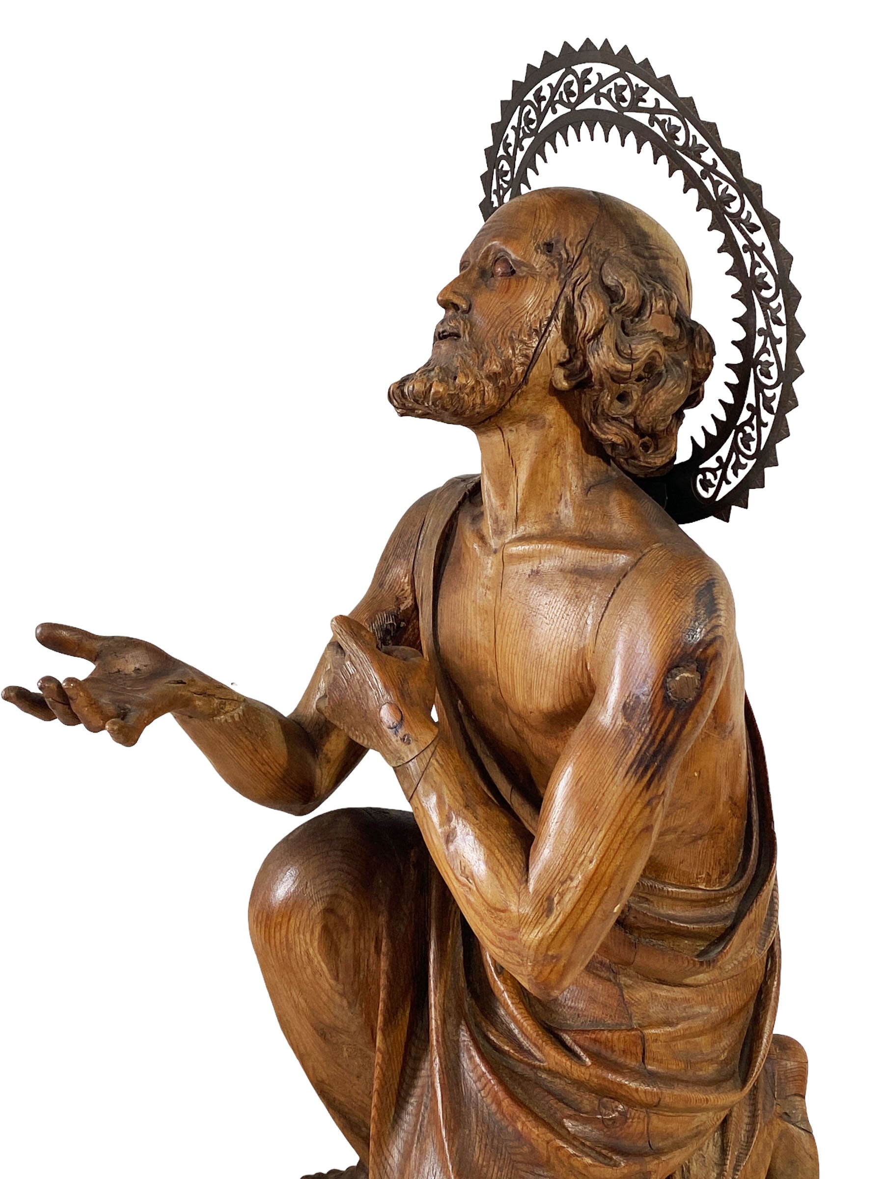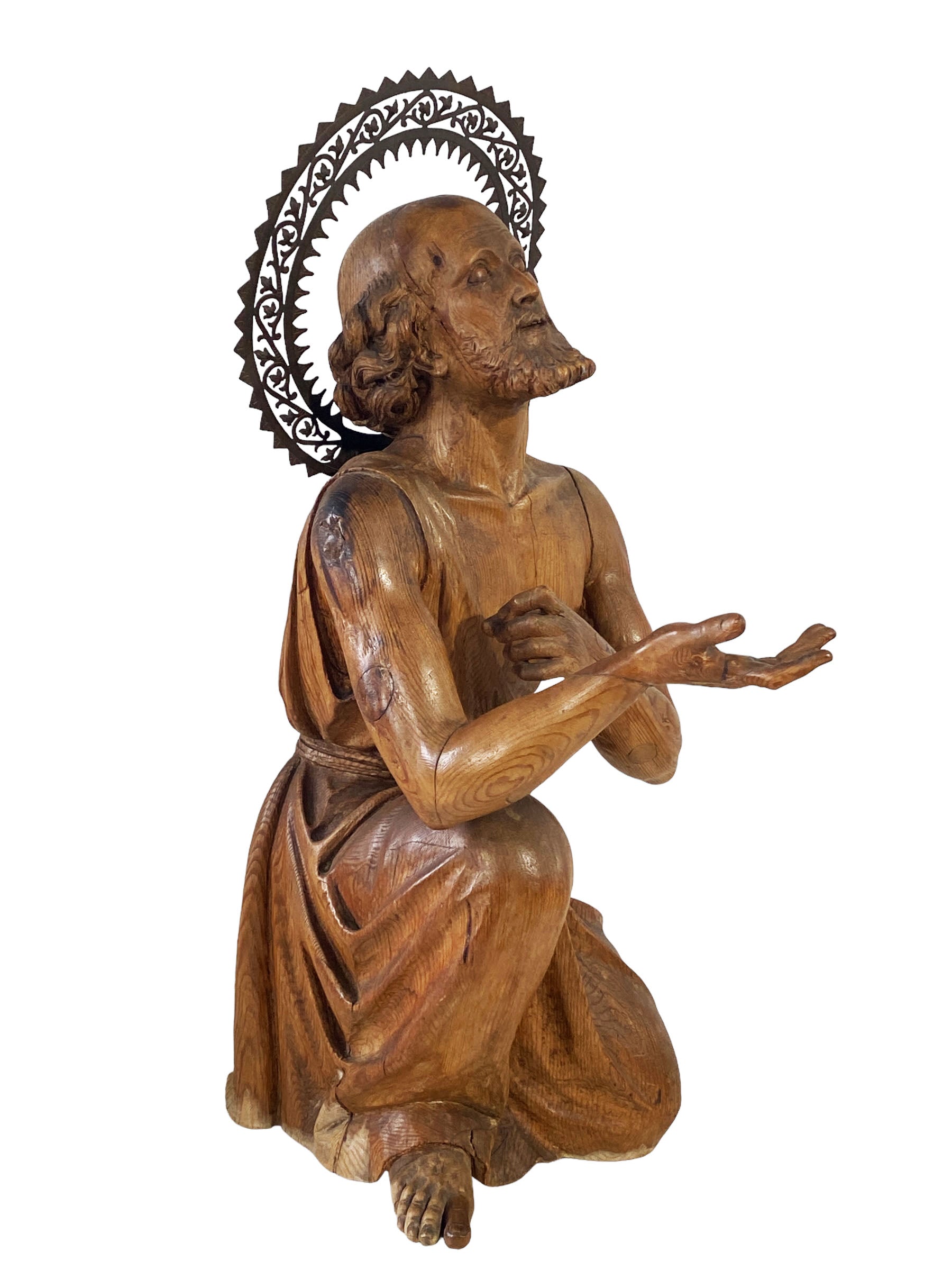 #5602 LG Museum Quality European Hand Carved Wood 18th C Santos ST Geronimo 27" H