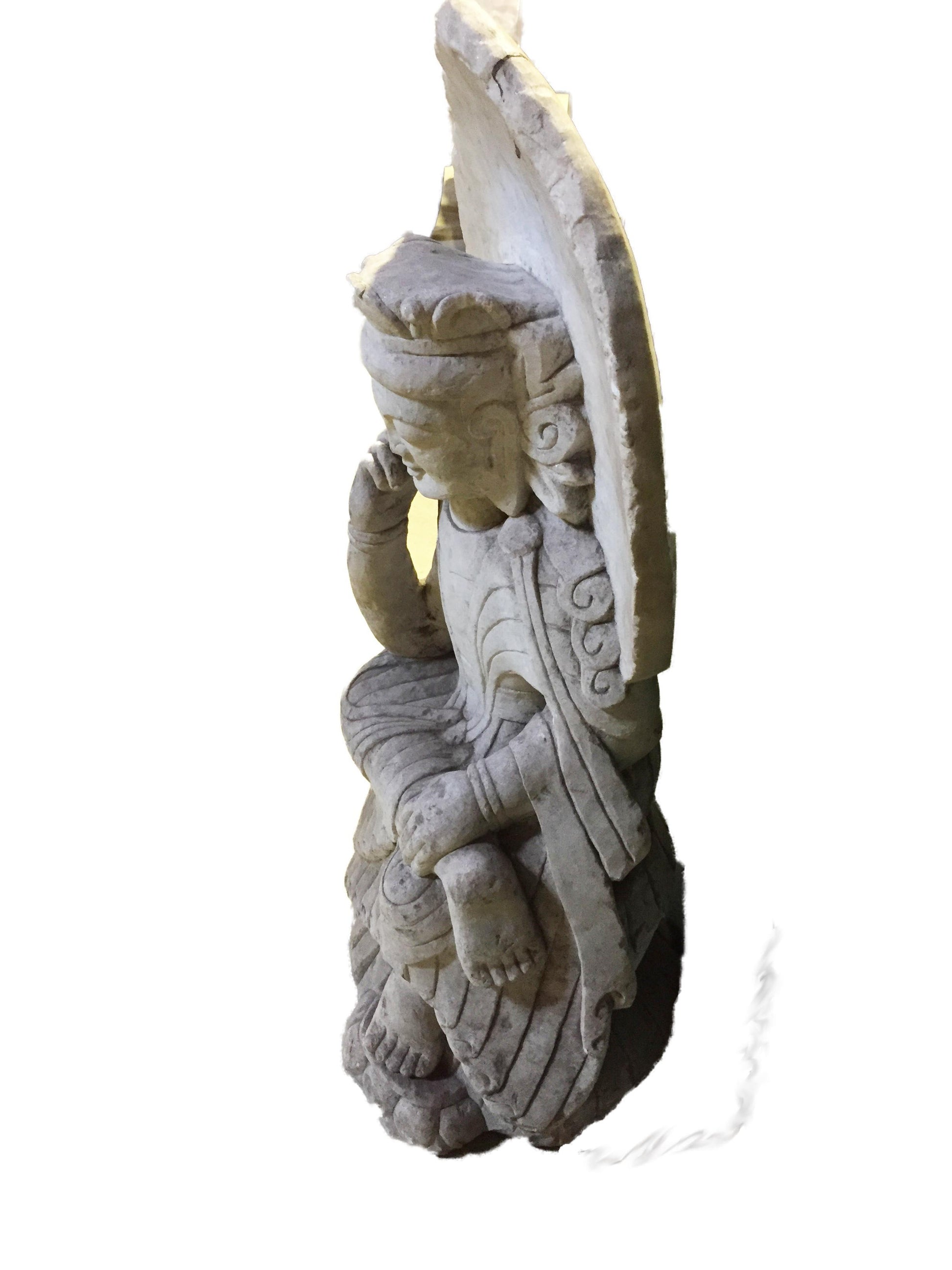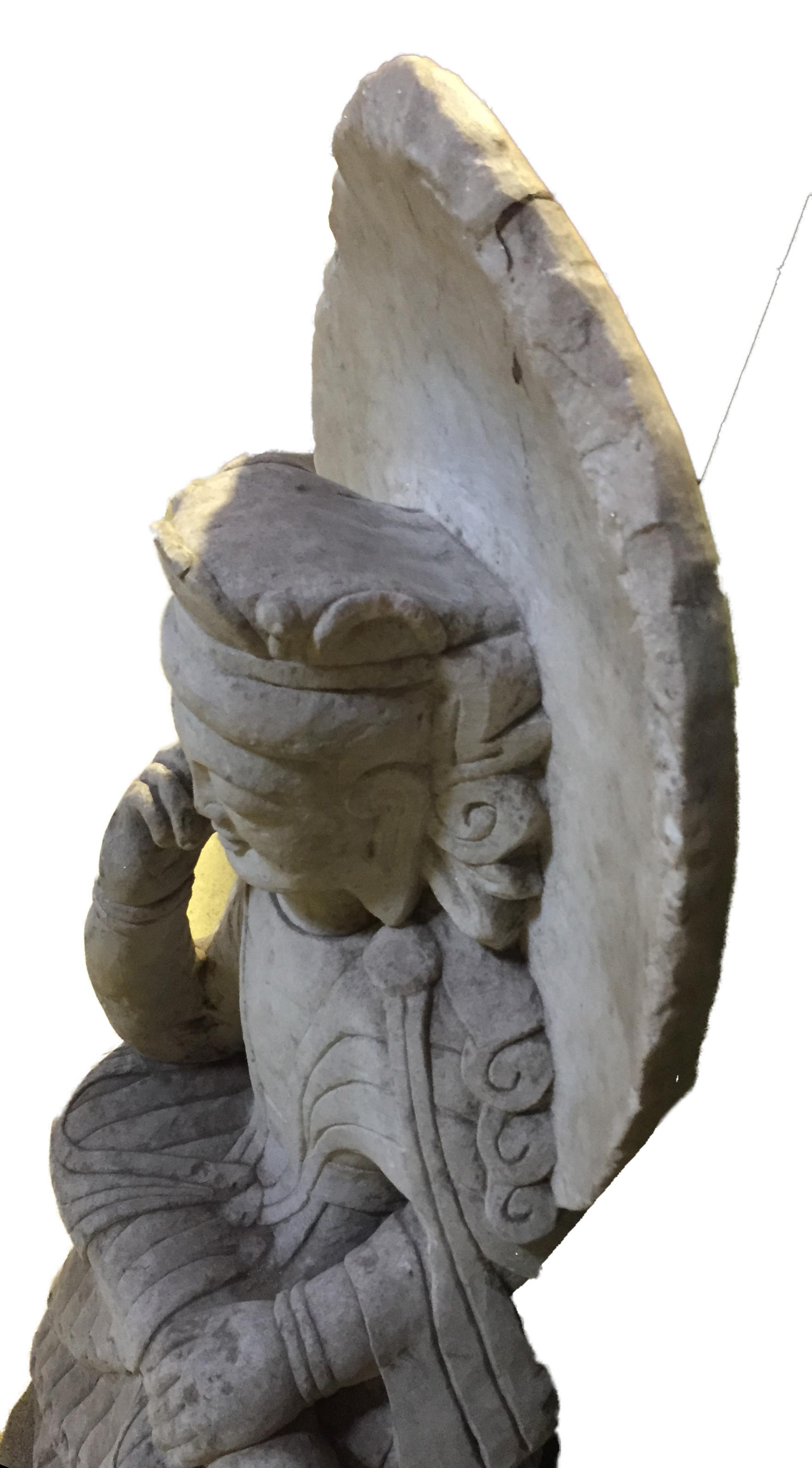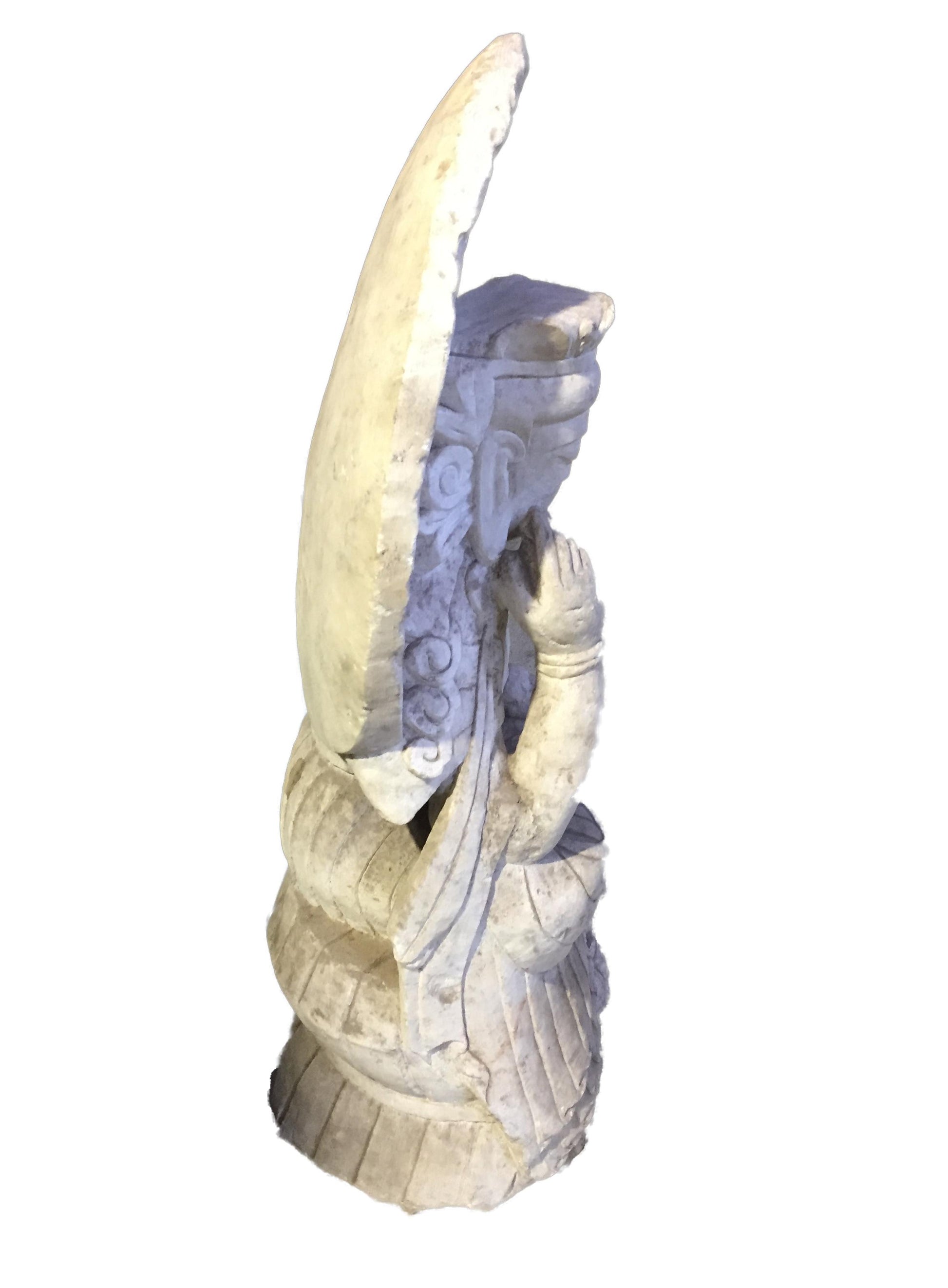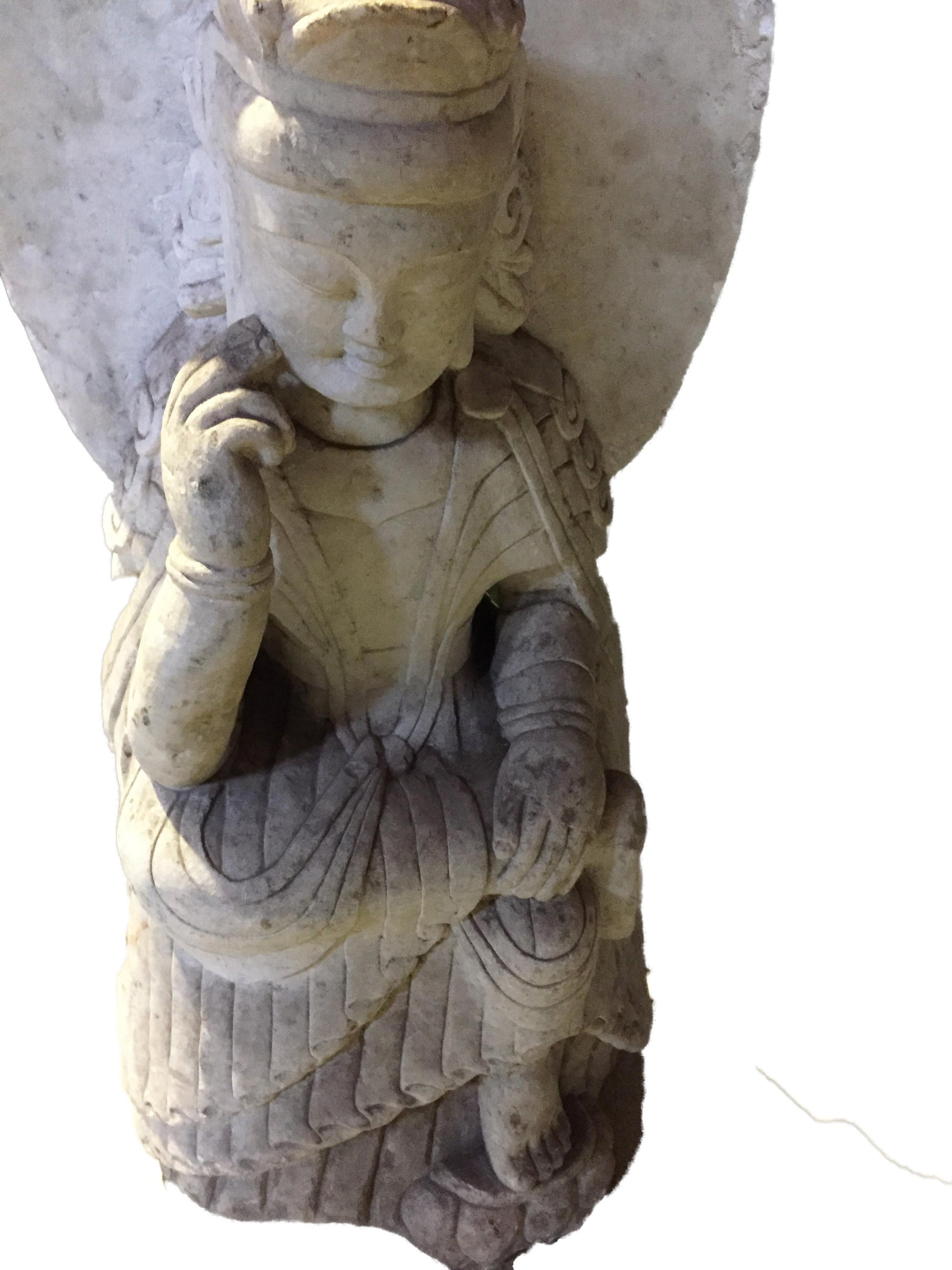 Stunning Museum quality carving old hand-chiseled marble Sitting crowned Buddha with peaceful face ,amazing Art work, can be outside or inside ,of one piece of marble