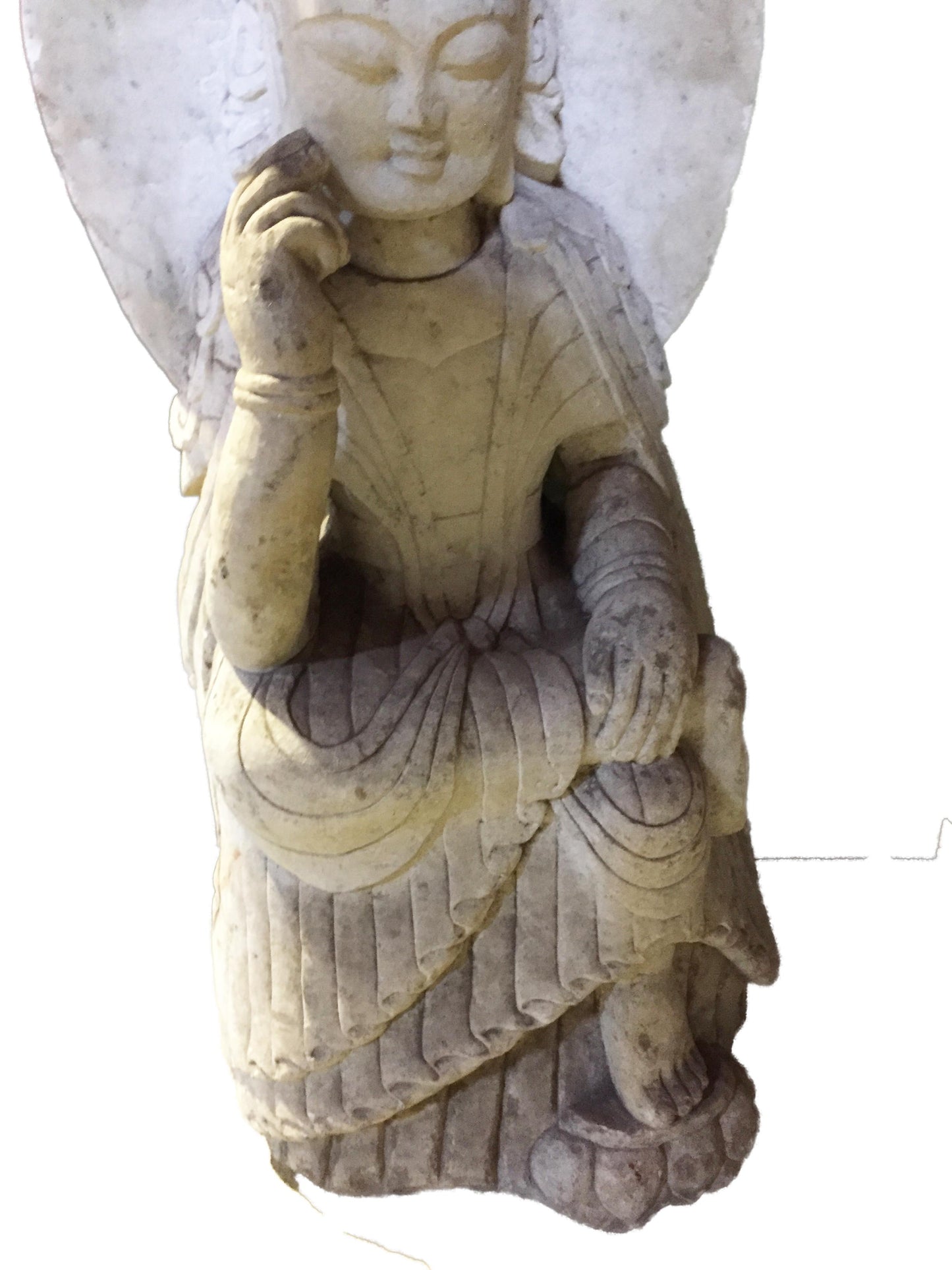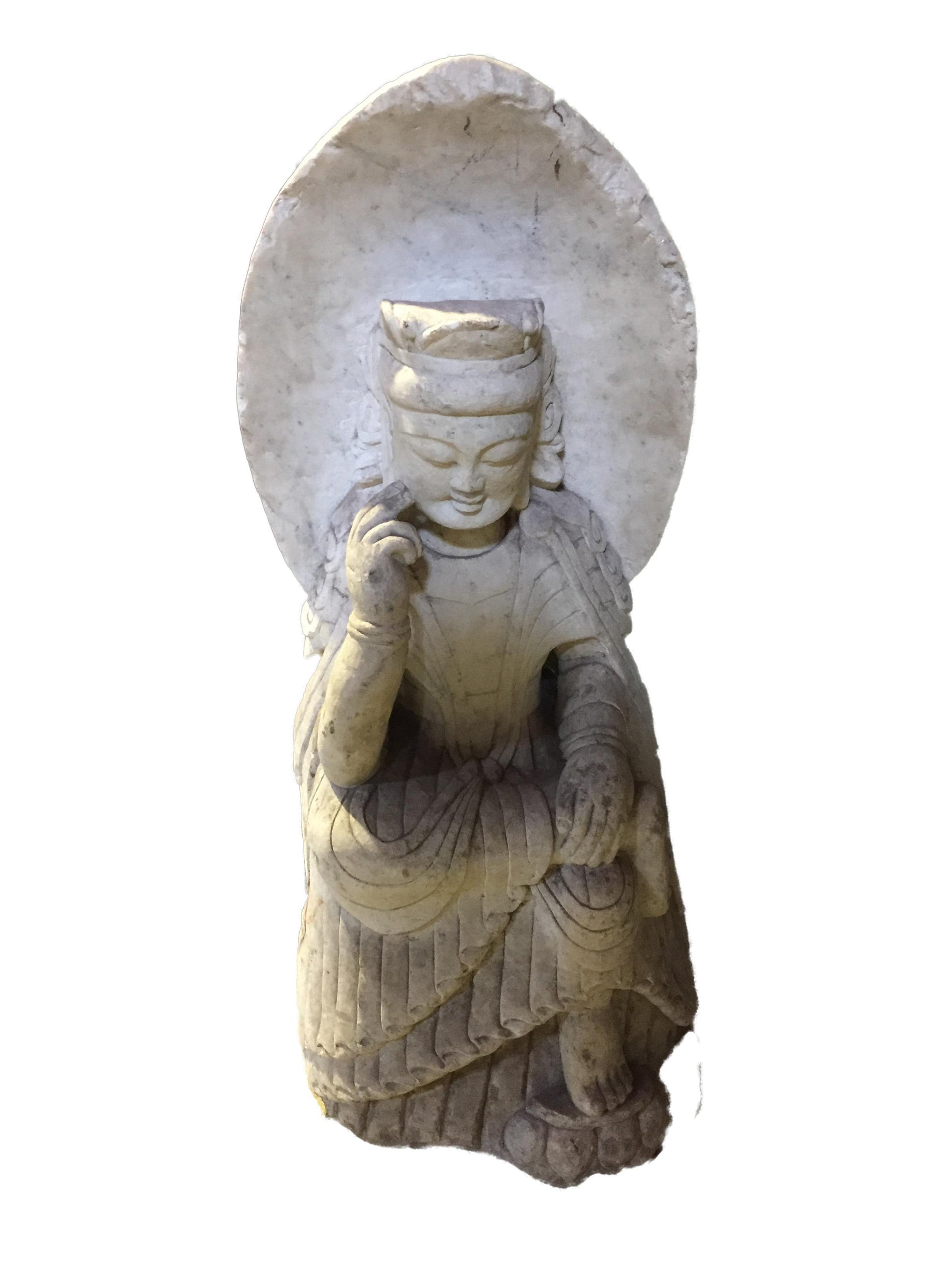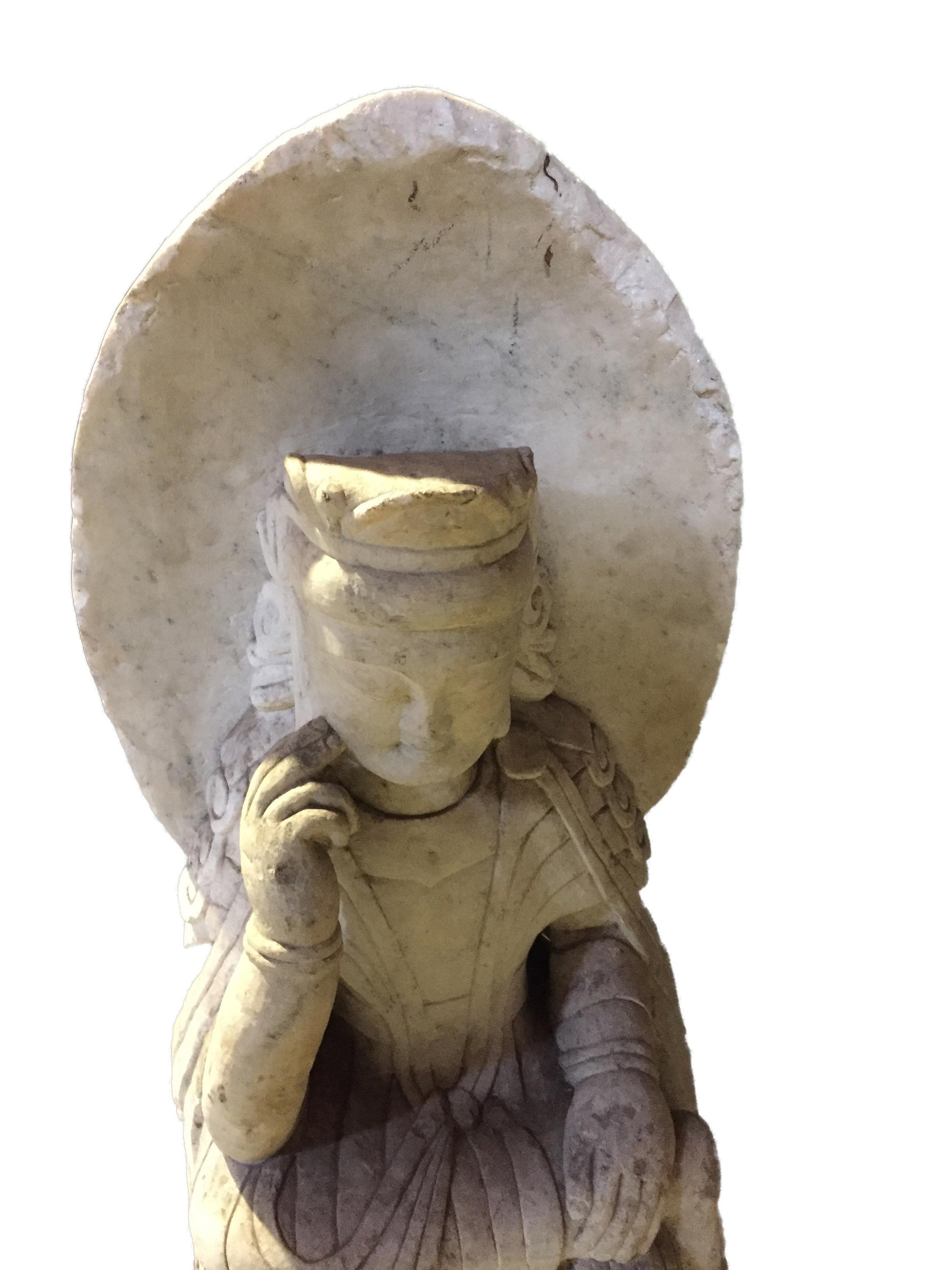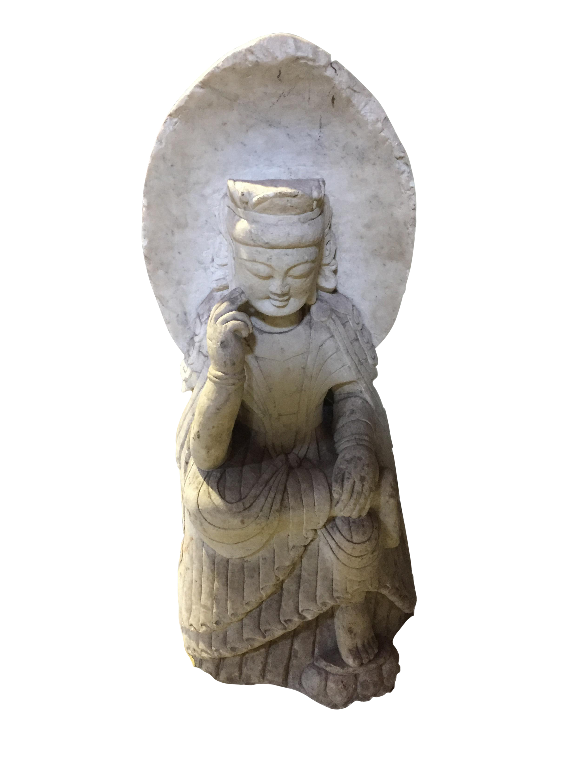 #823 Old Hand-Chiseled Marble Buddha