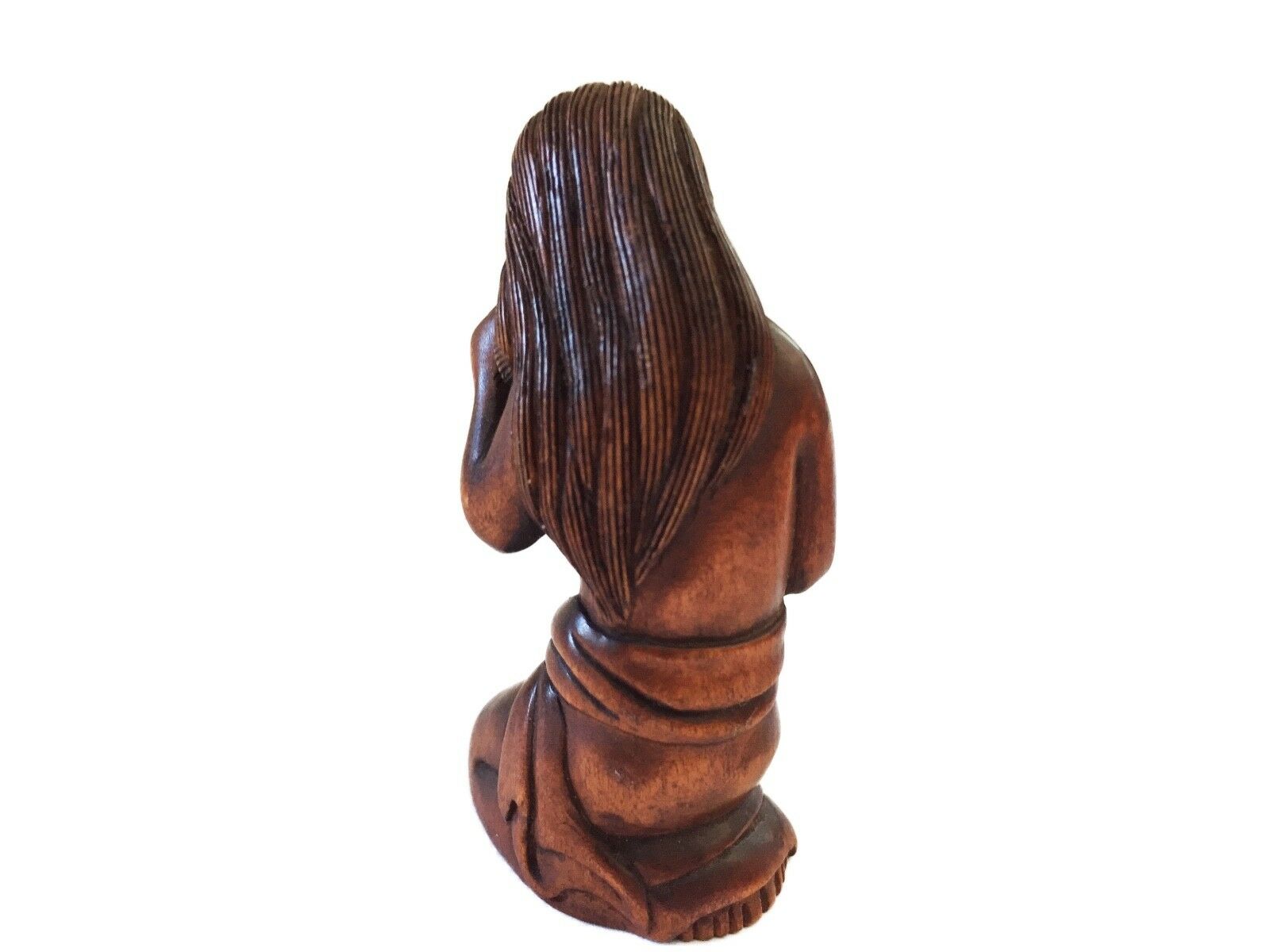 Finely carved wood netsuke figure of a Siren , artist's signature on the base, with holes drilled for function early to mid 20th century. Size: Length of the carving is 2 inches long and 1 inches high. Condition Report: Good condition.