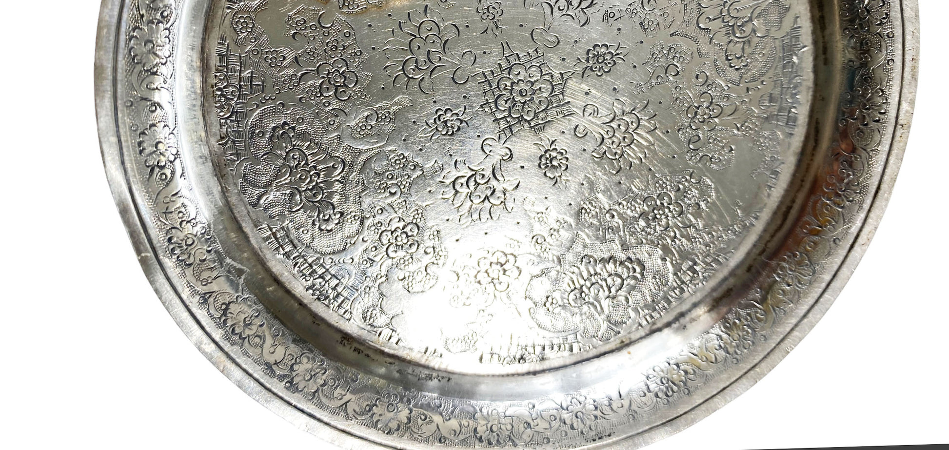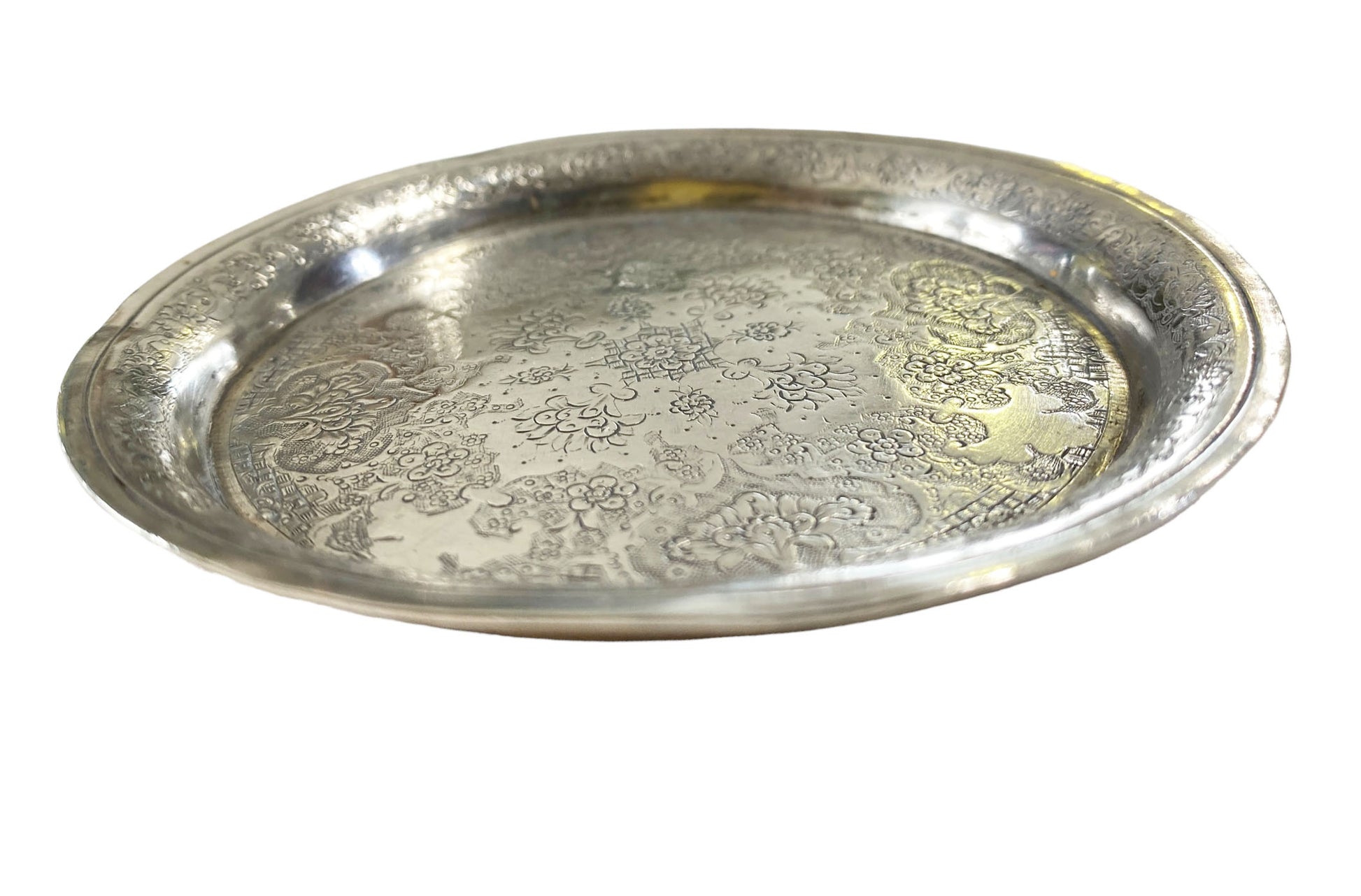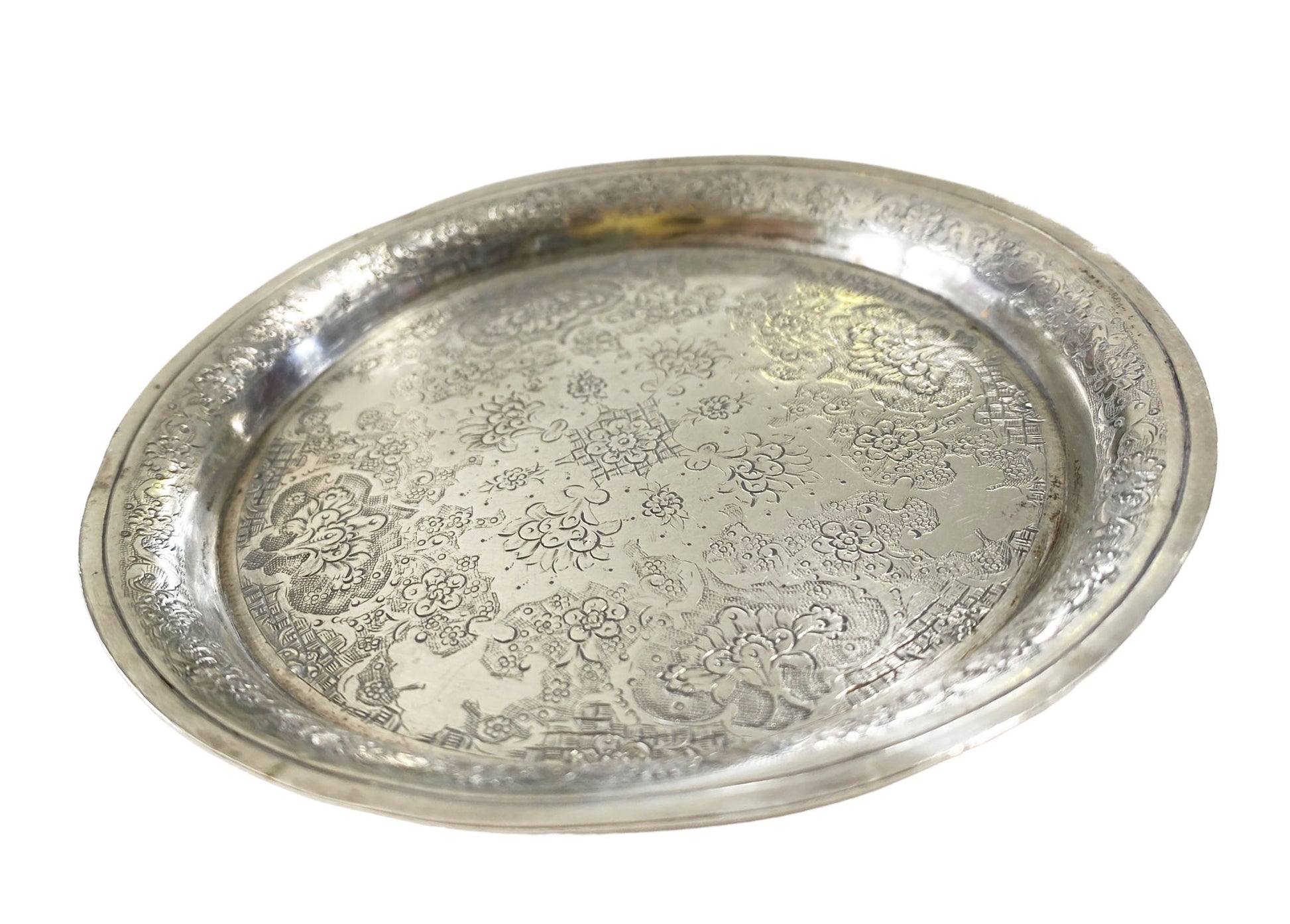 #7010 Old Ornate Coin Silver Dish