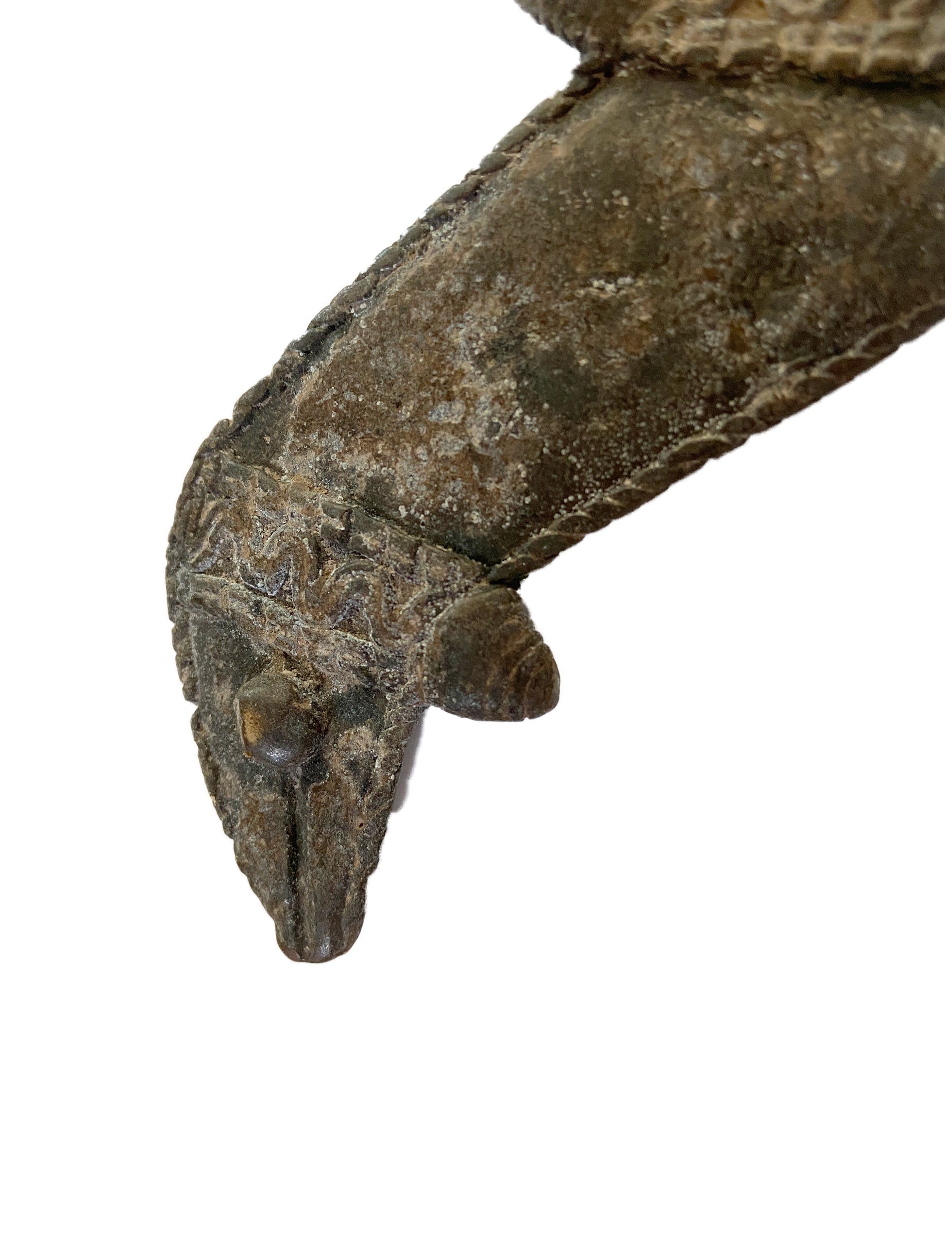 An old and used Bwaba Burkina Faso brass/bronze amulet pendant of a chameleon measures approx : 5" w by 4" h