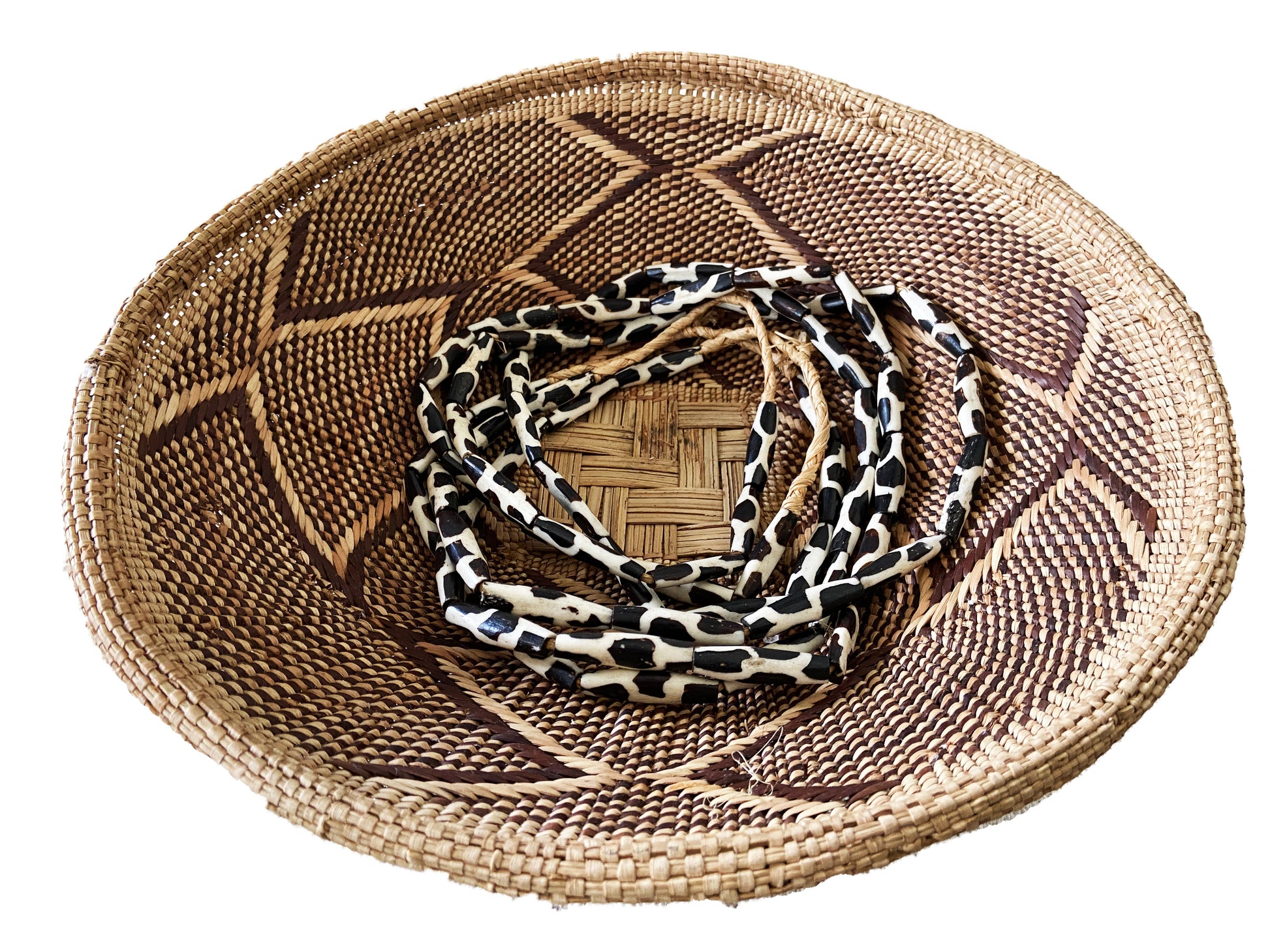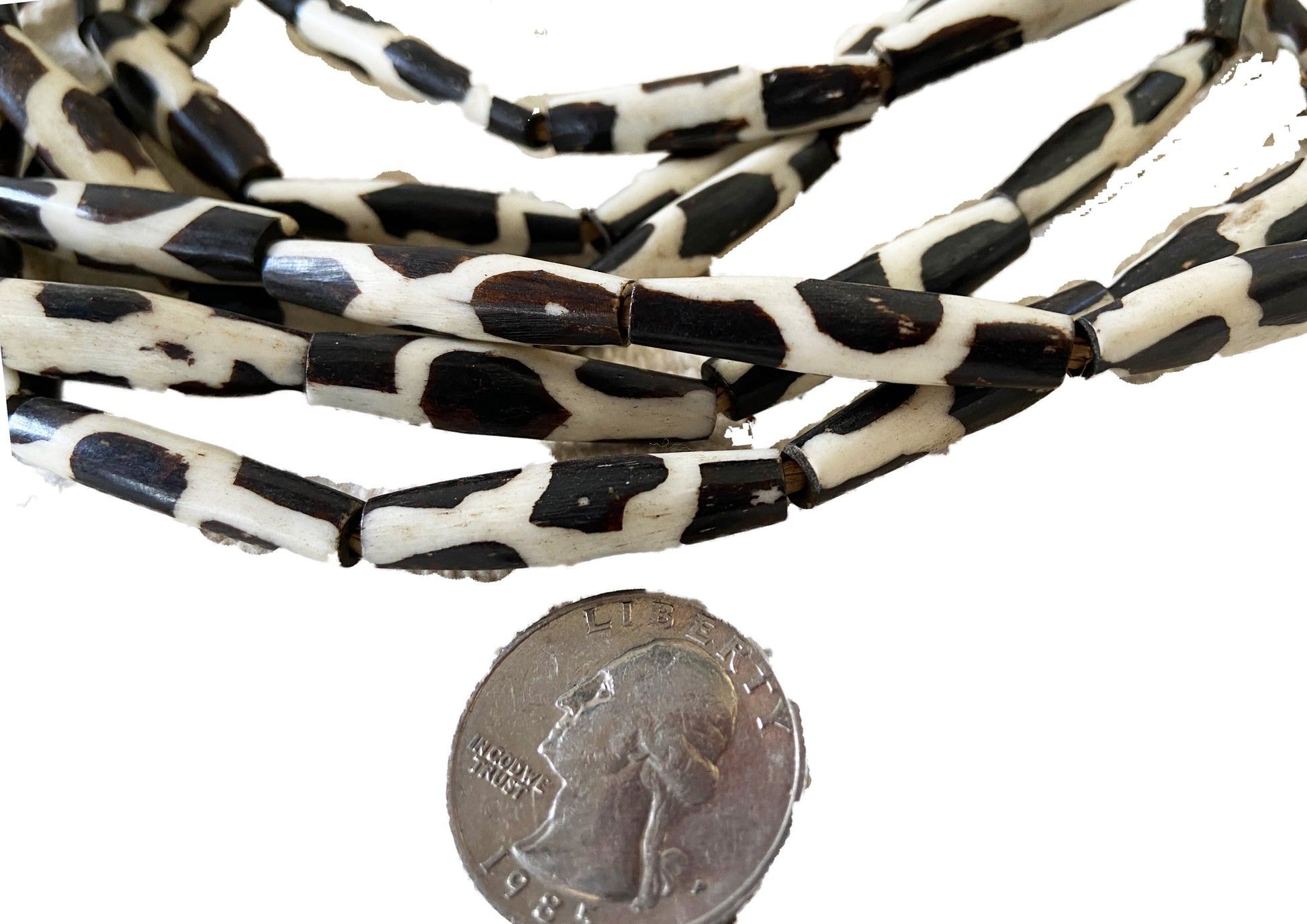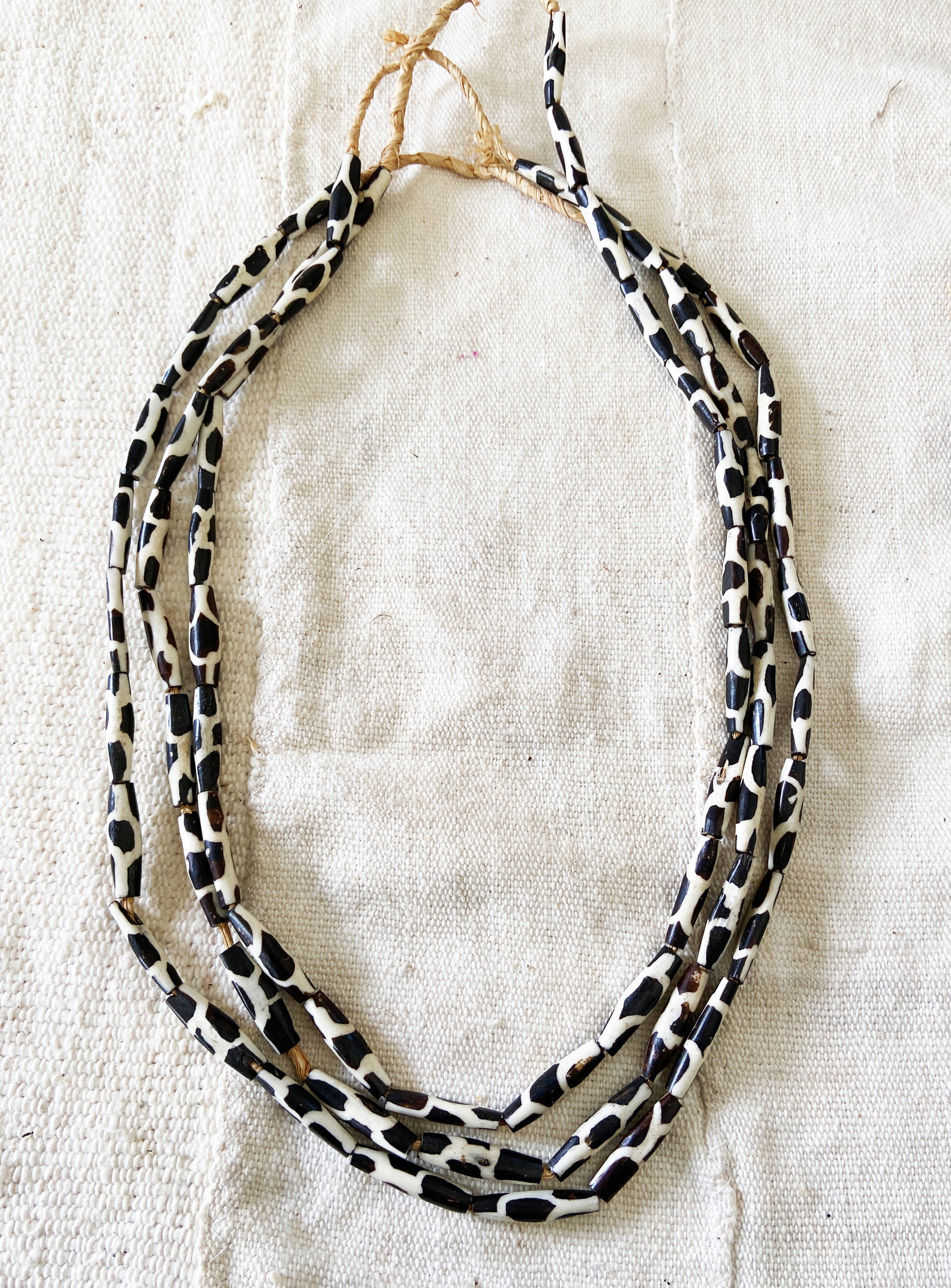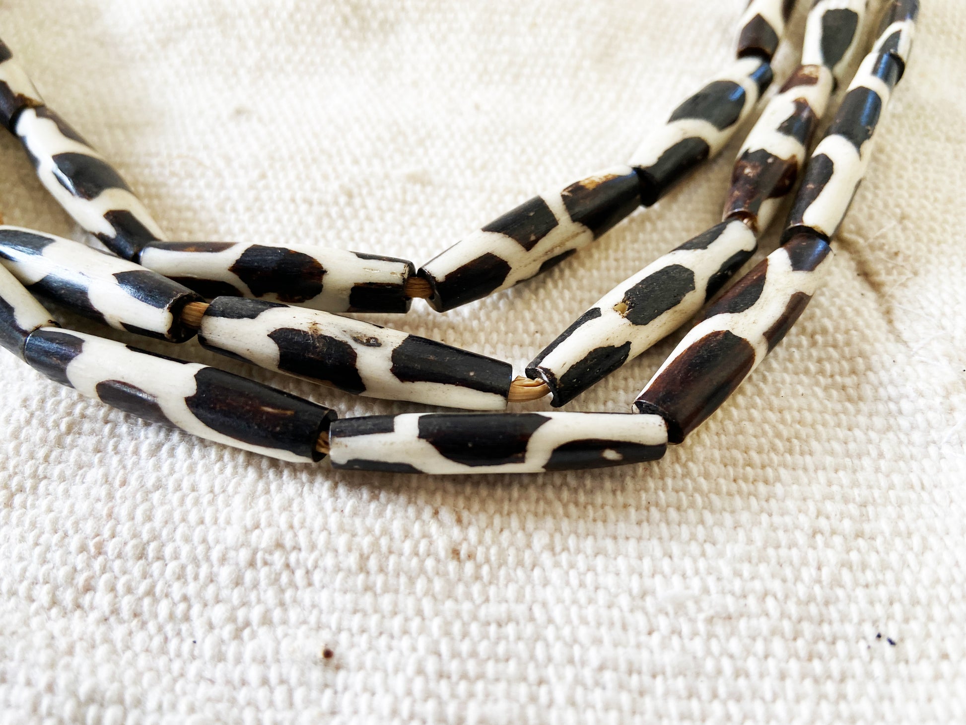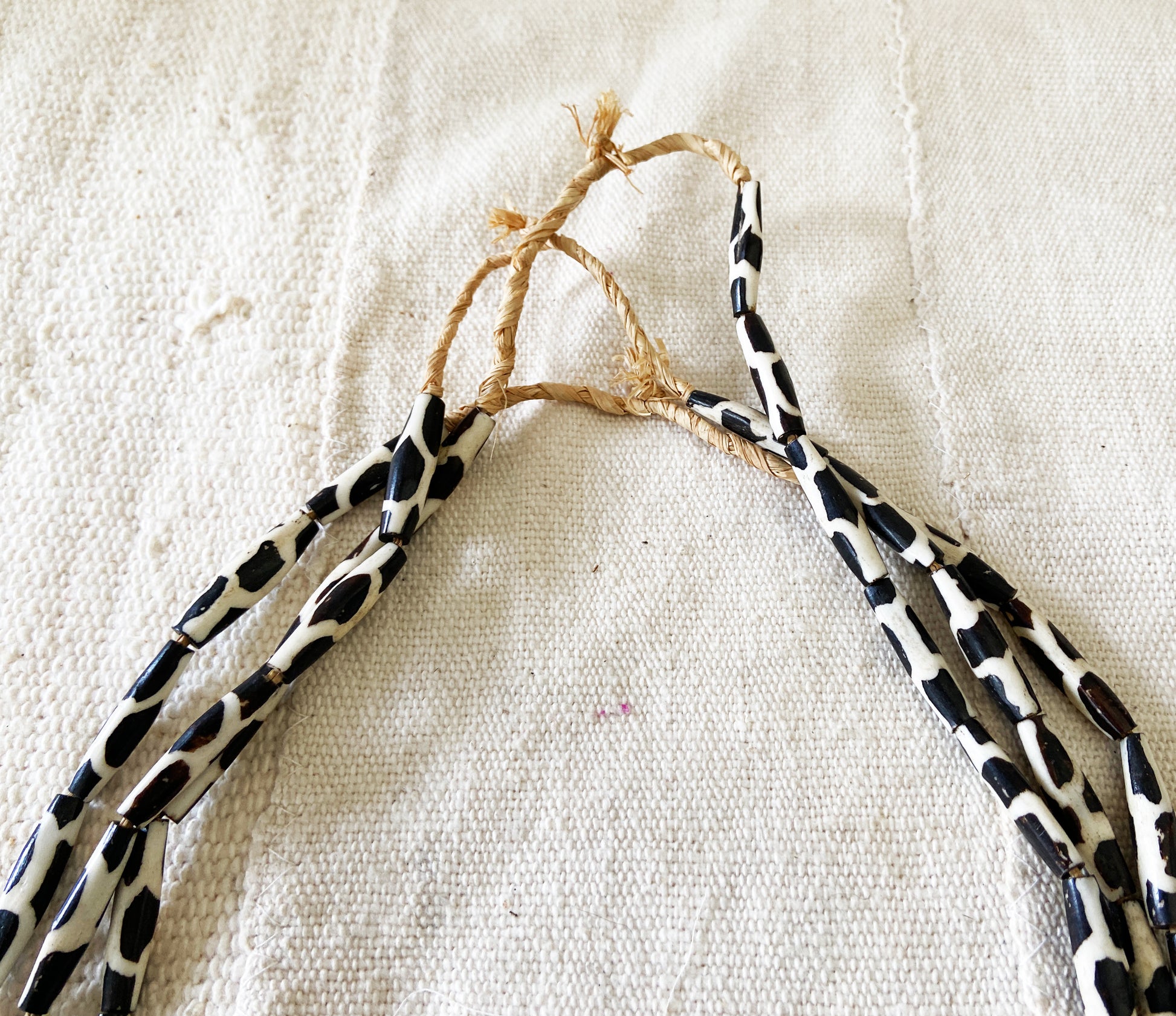 Superb String of African handmade trade bone brown and white beads strung on hemp.