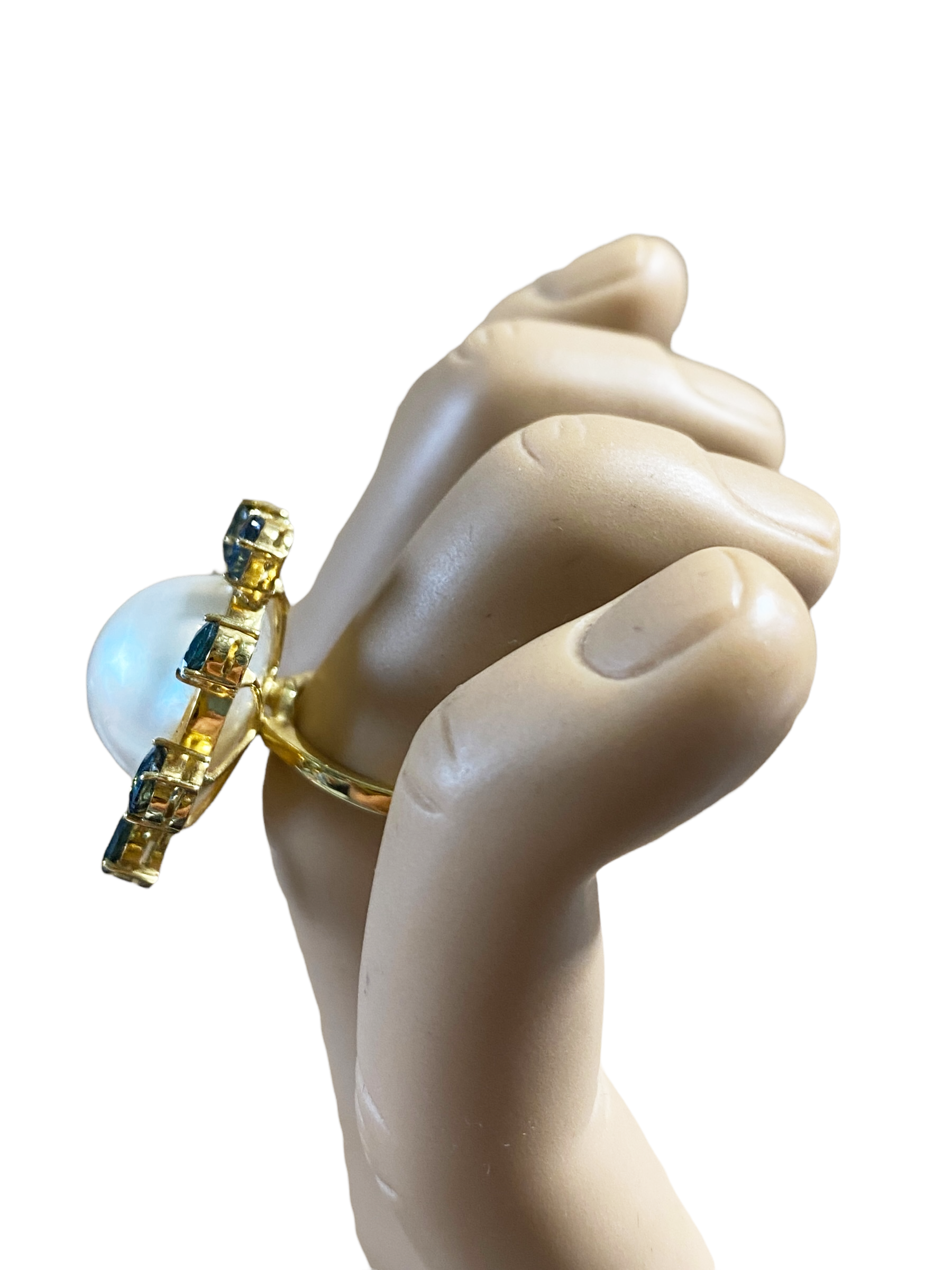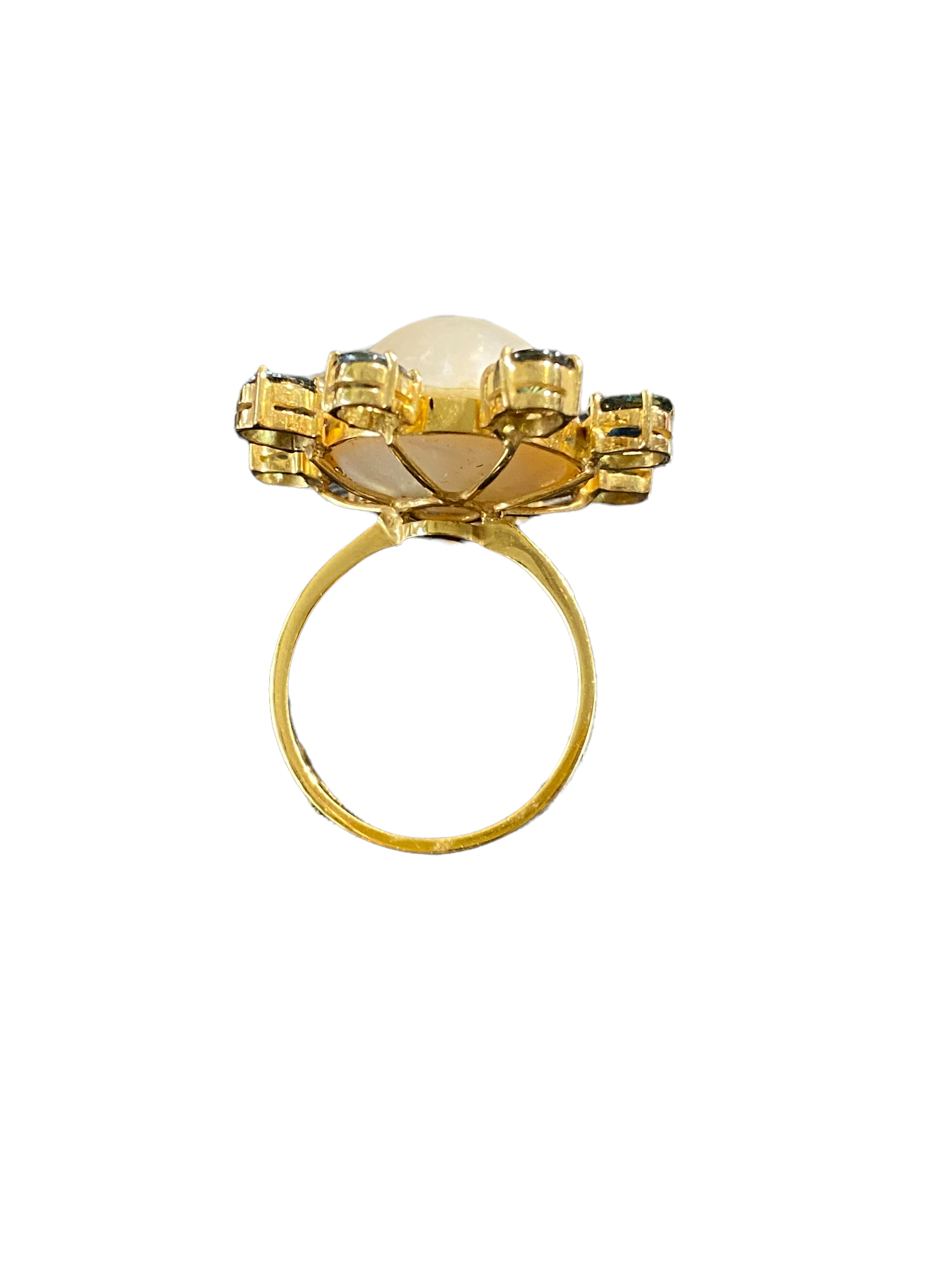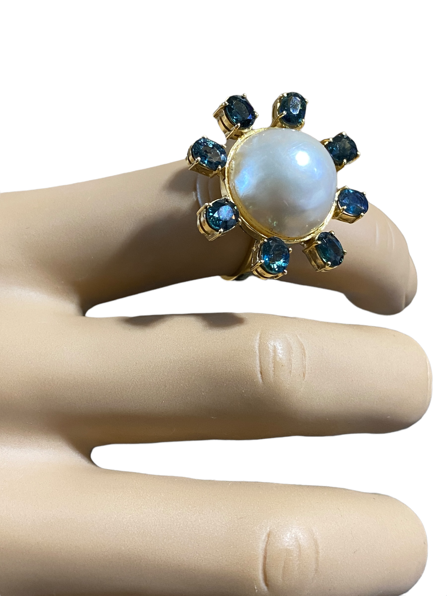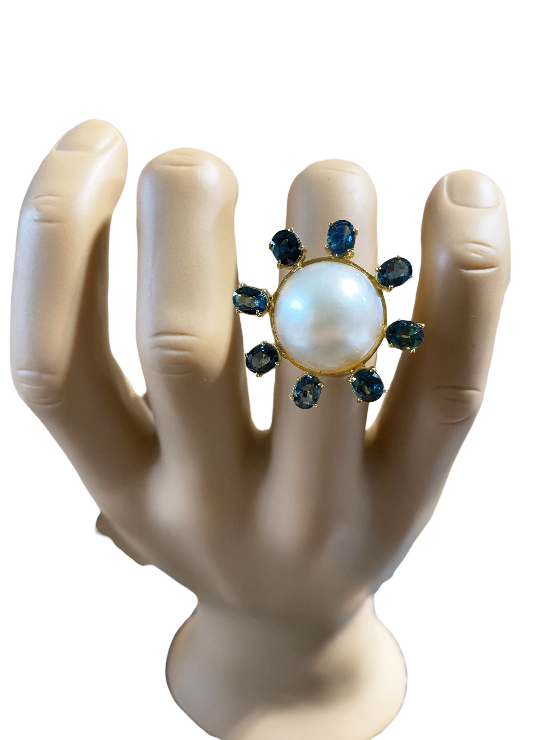 #2013 Retro 18 KT Yellow Gold Maube Pearl & Sapphire Ring