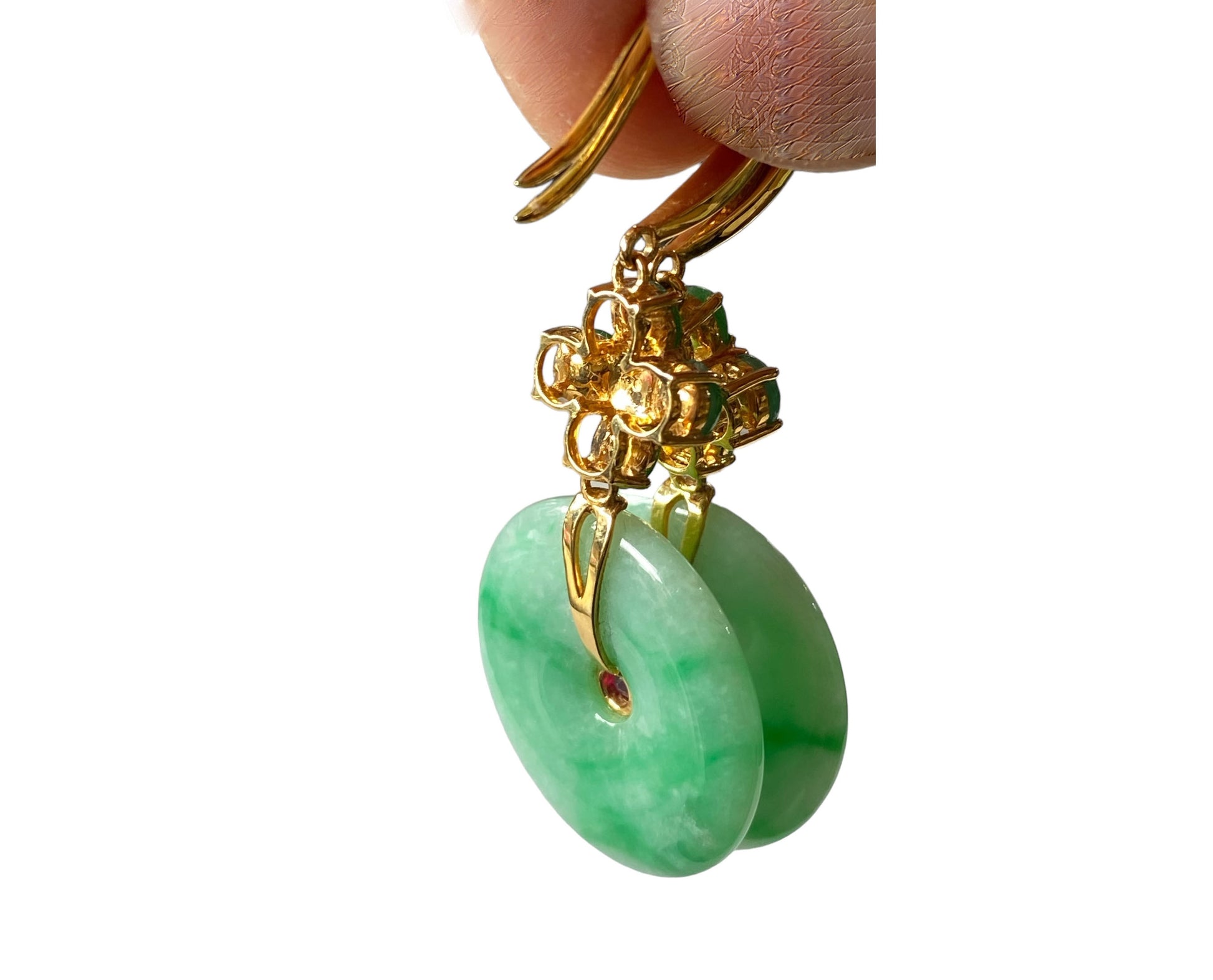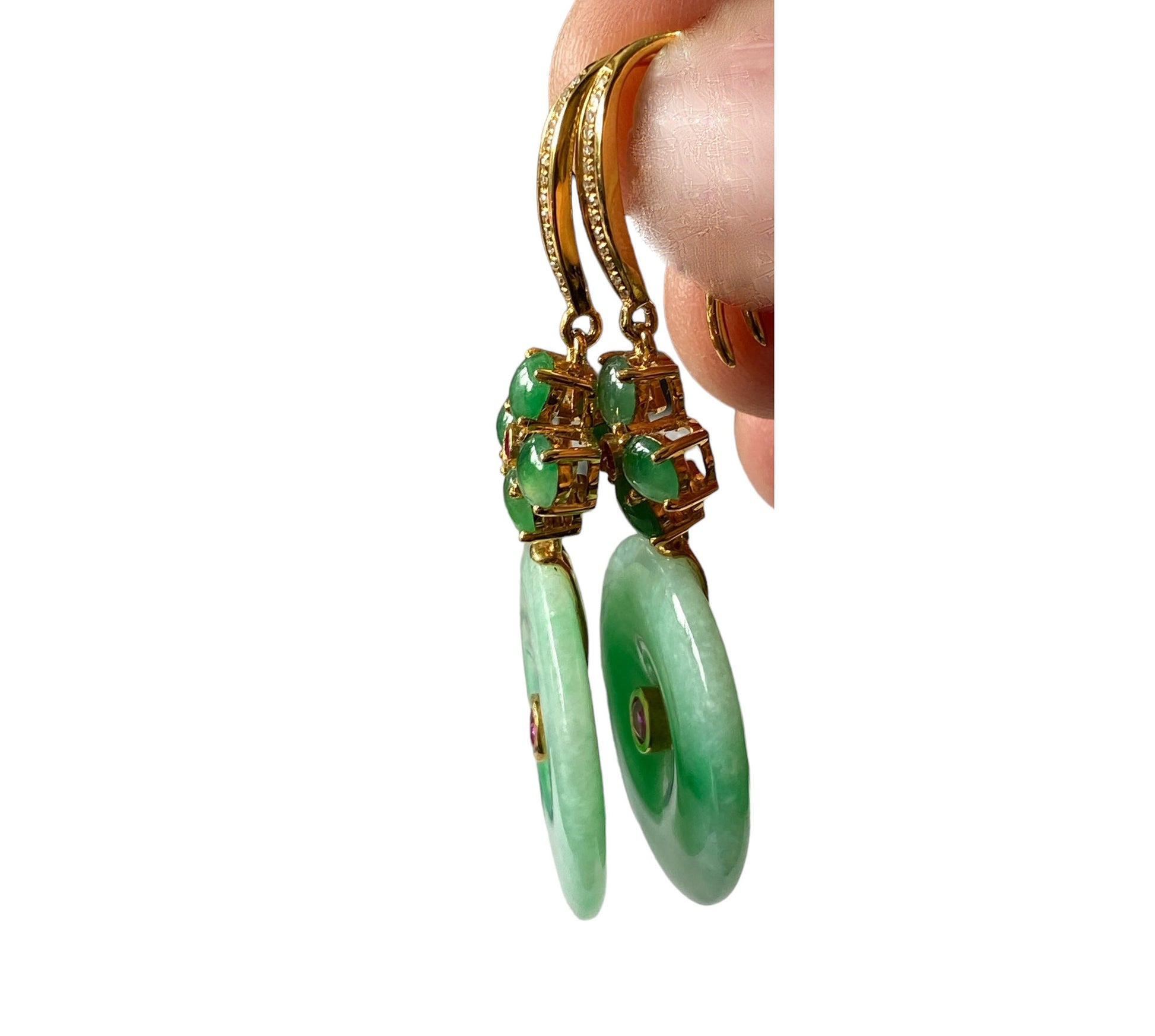 #386 Superb 18k Gold Jadeite Jade art Deco Earrings w/Rubi /Diamond