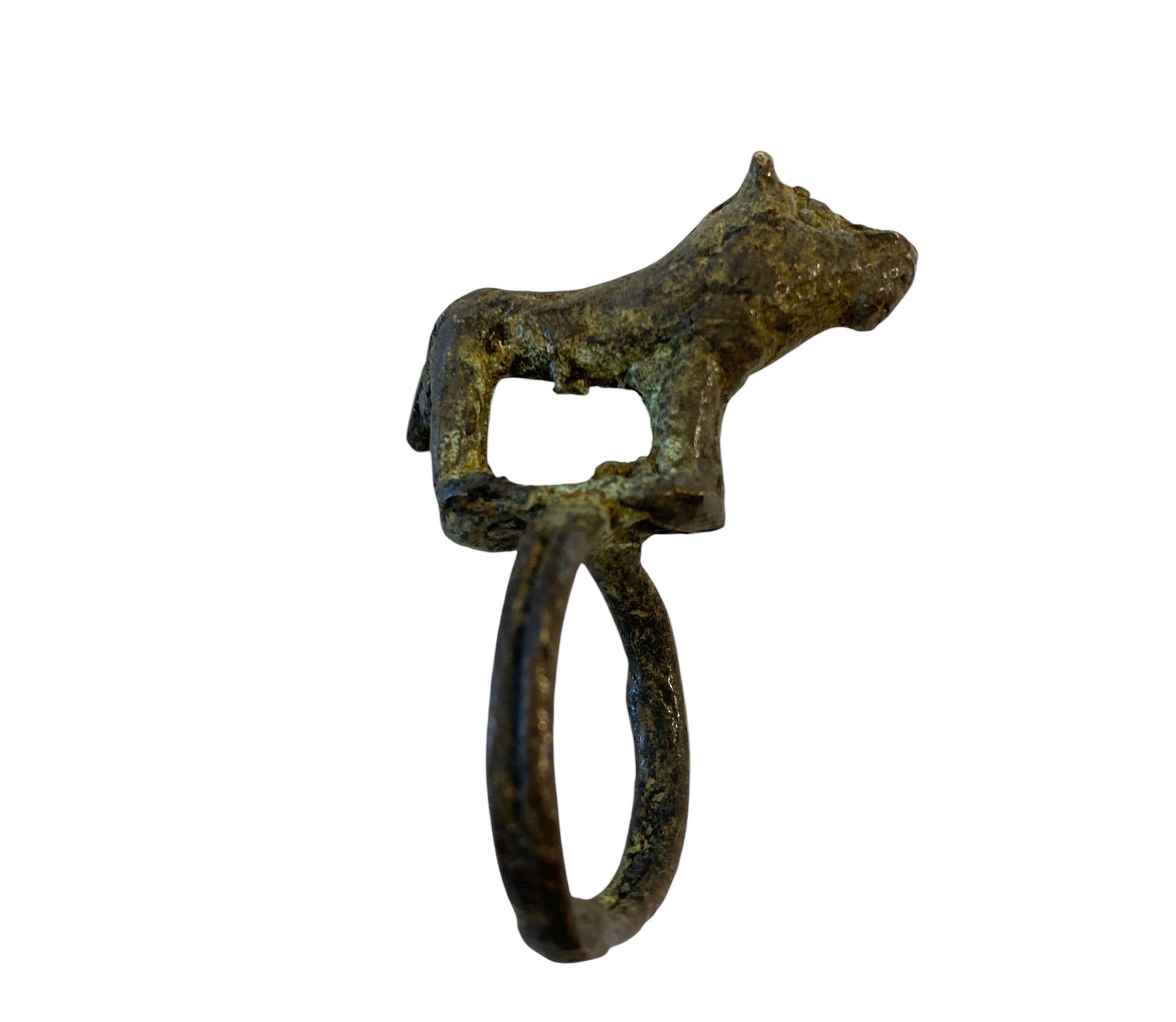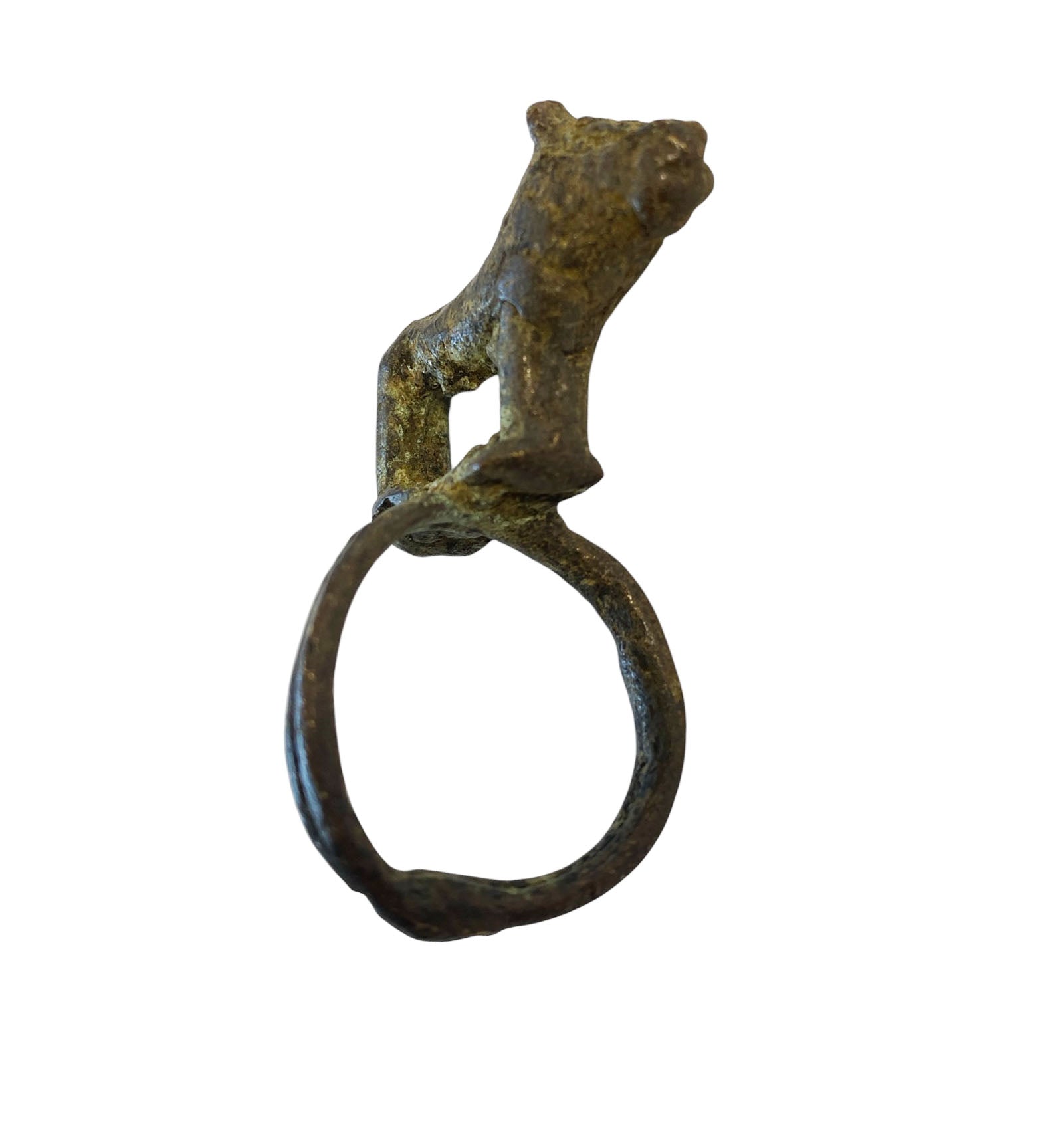 SUPERB African Gan Burkina Faso bronze Ring with Hyena. measures approx 1.25" w by 2" h 1" d