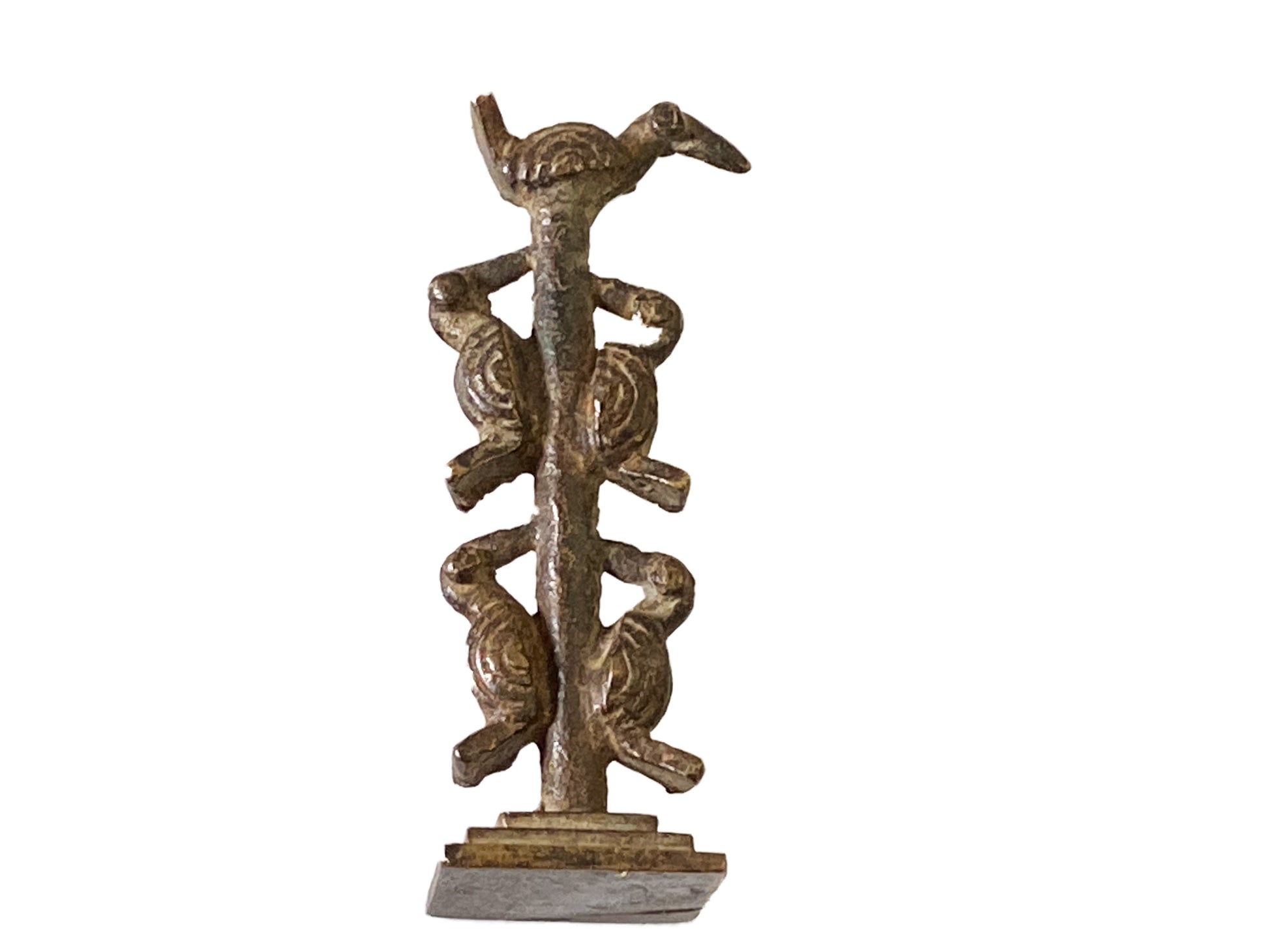 Superb Old Gan Bronze Gold weight Ornate with five birds Burkina Faso