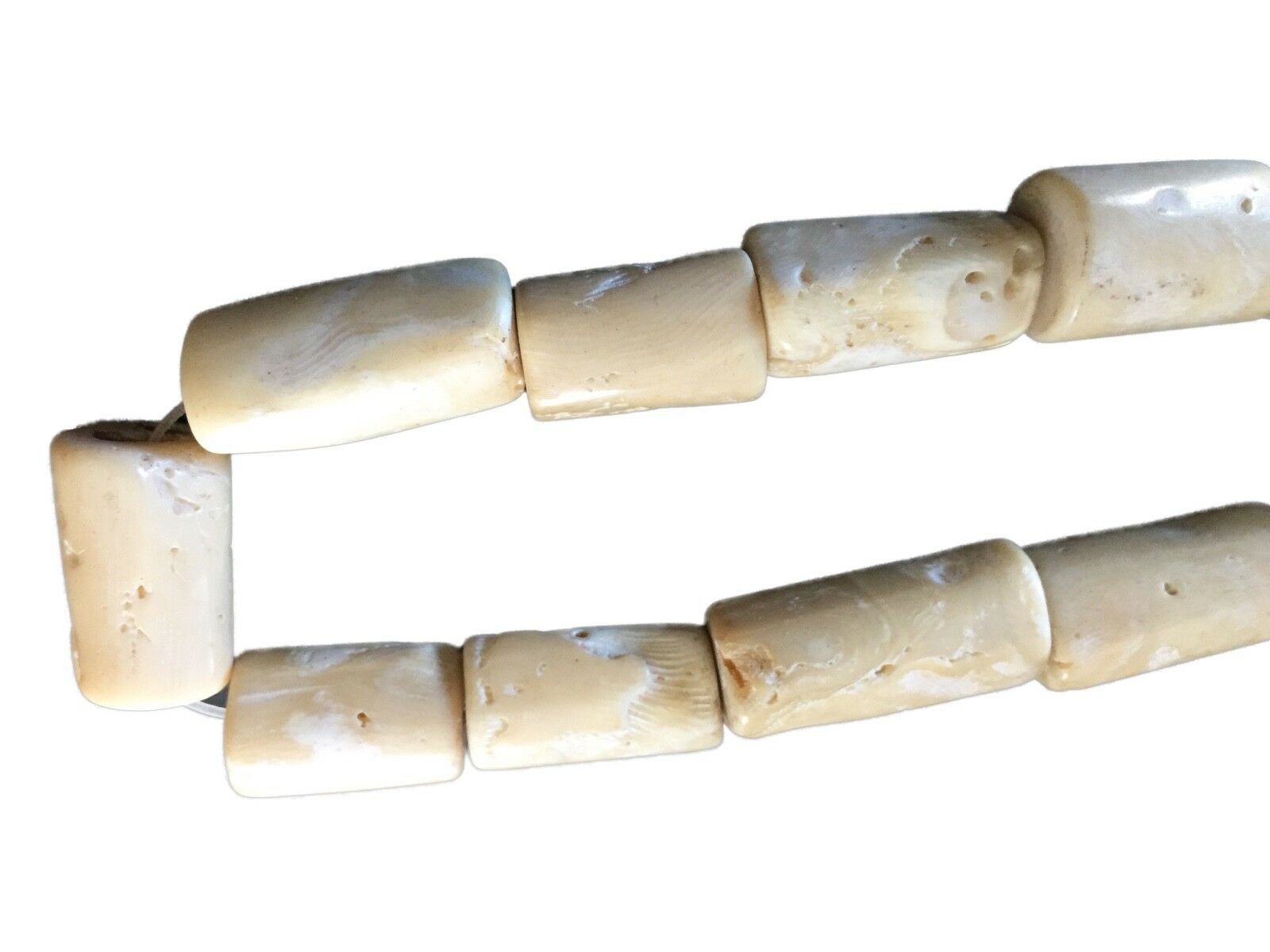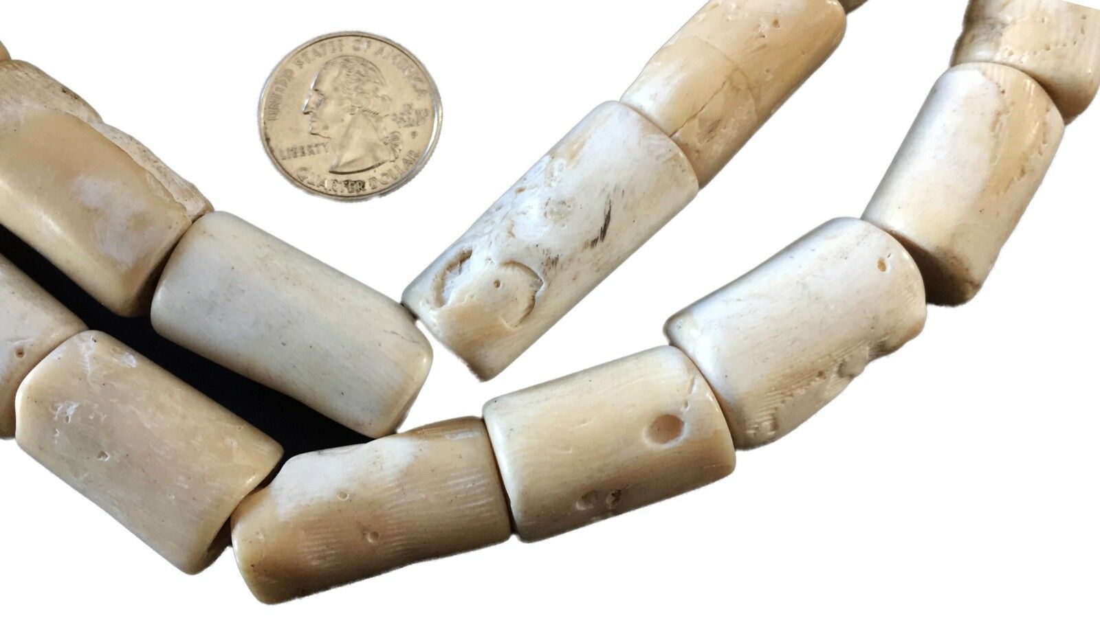 Natural African trade beads currency white Coral Gemstone Beads total of 35 pieces used as Currency . amazing to use in jewelry or just to hang it on the wall beads size varies from 1" h to 1.5 "
