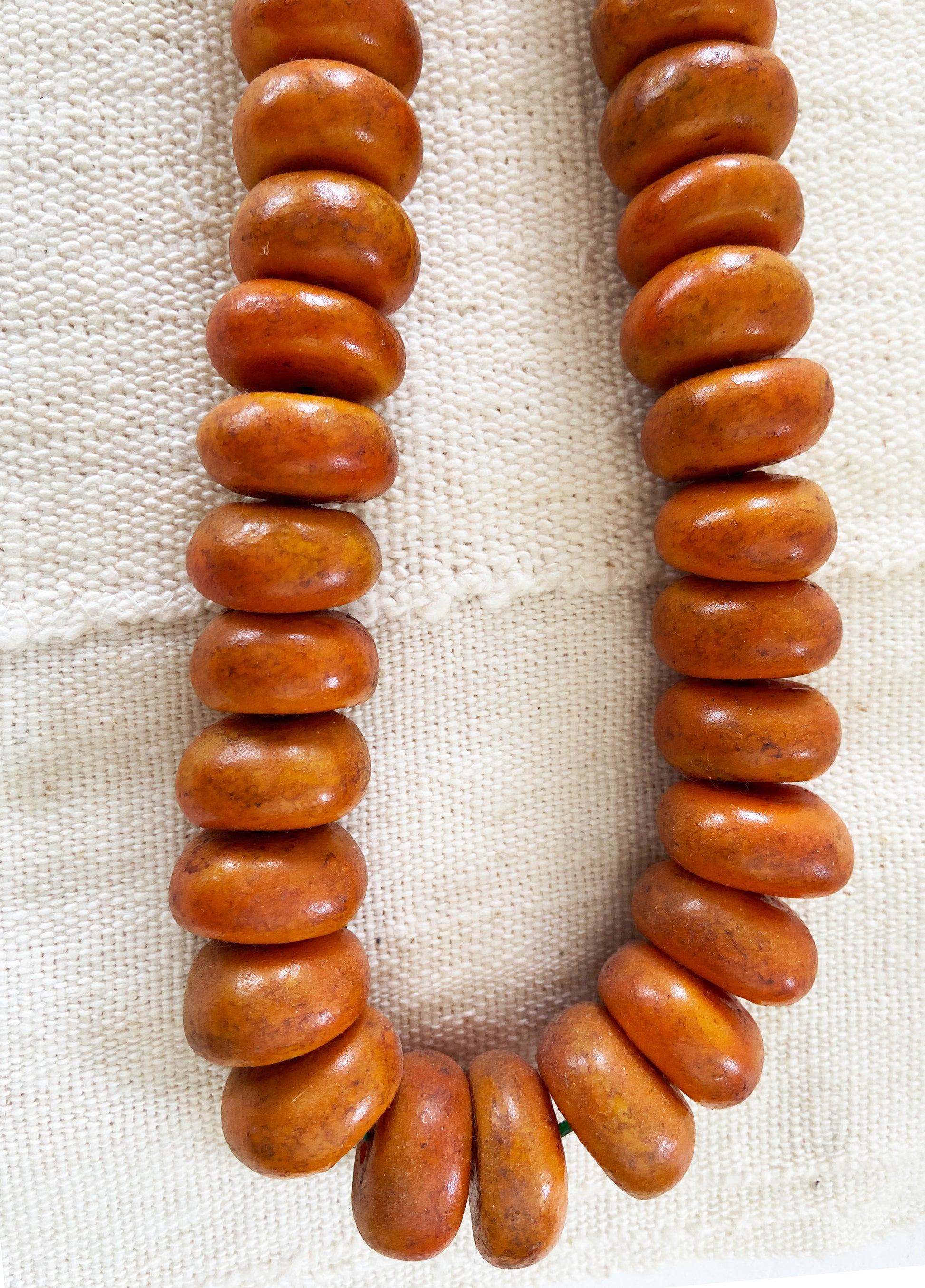 Superb Vintage African Simulated Amber Necklace w/50 trade beads